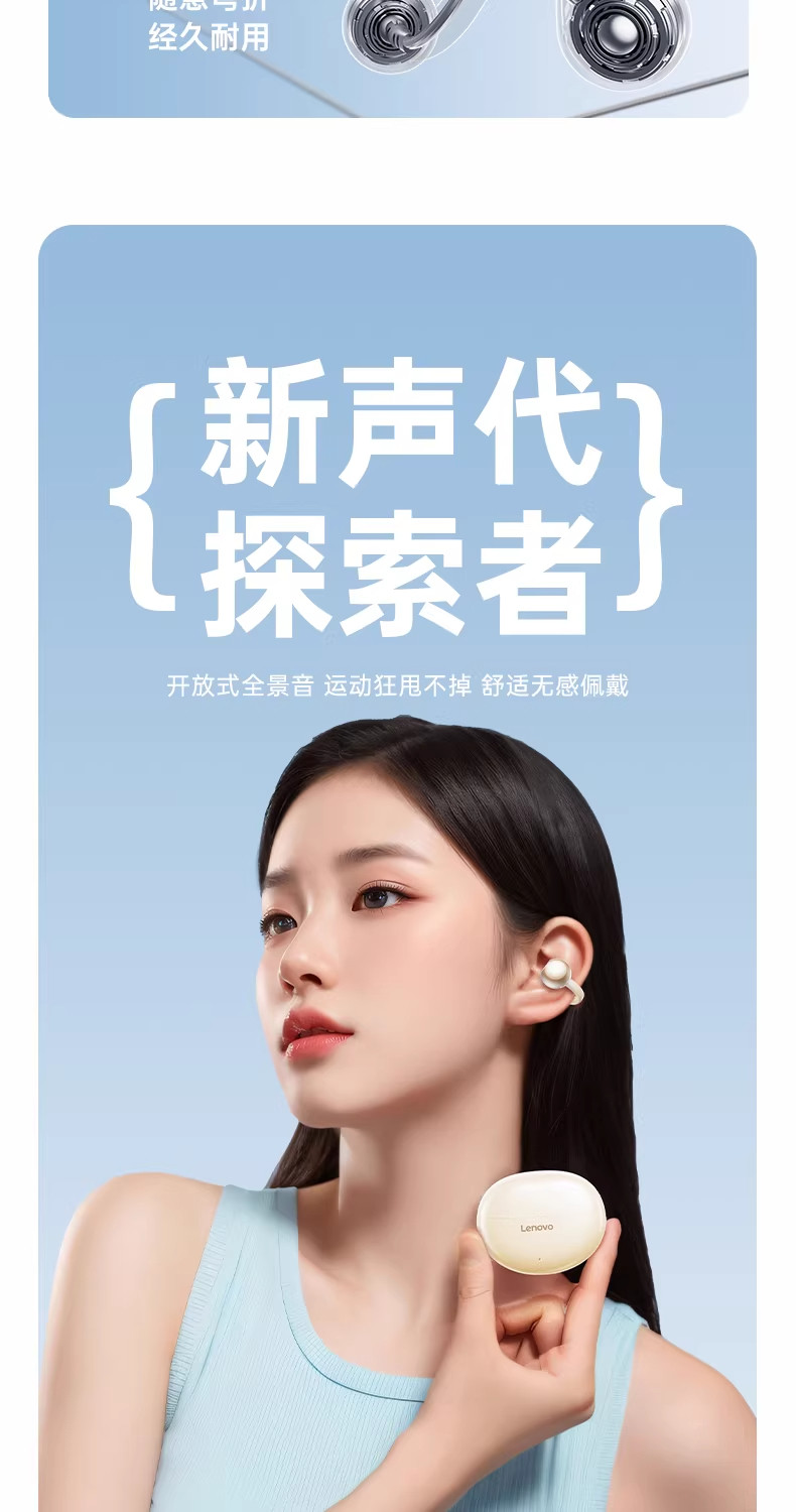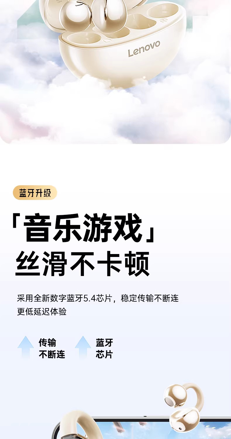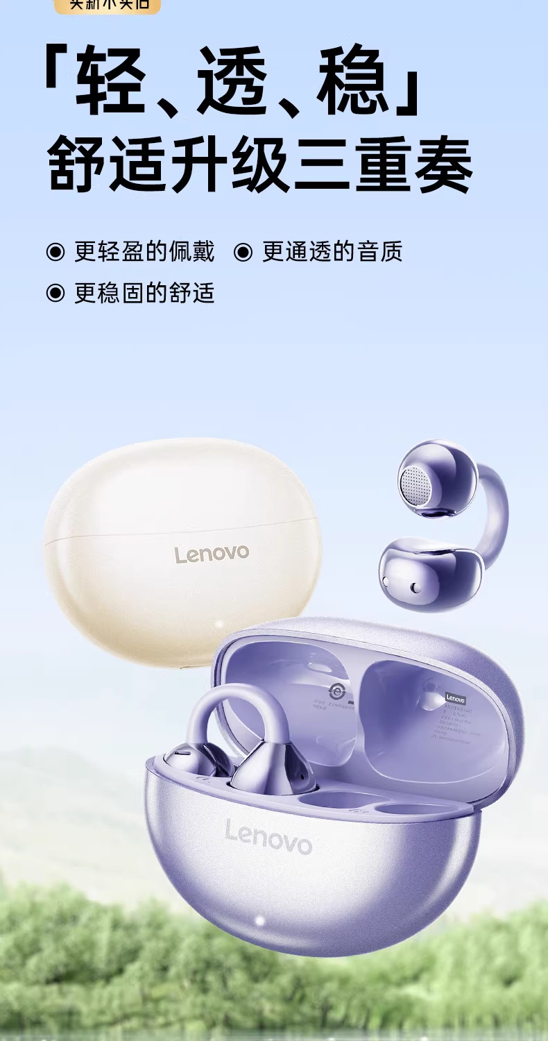 Lenovo Bluetooth Earphones Ear Clip-On Type 2026 New Model Wireless Bone Conduction Sports Non-In-Ear Official Genuine Product