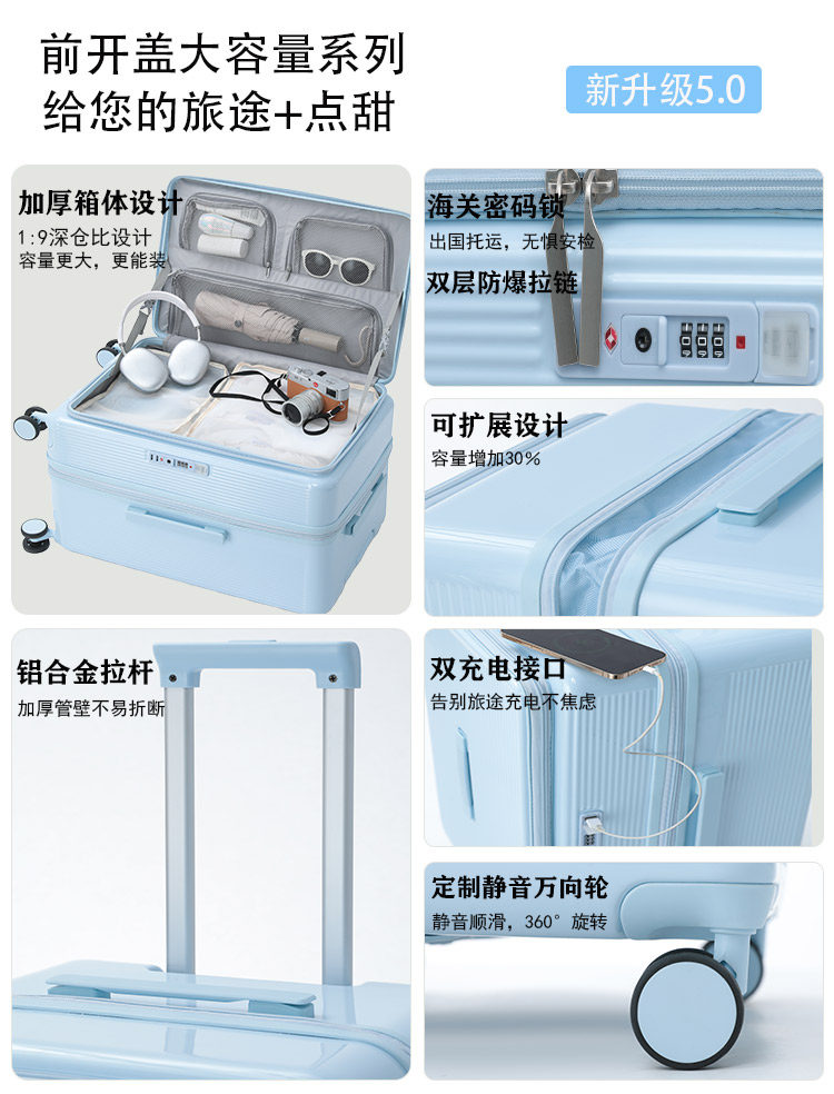 Large Capacity Side-Opening Suitcase for Women, 2026 New Model, Expandable Multifunctional Trolley Case, 20inch Carry-On Suitcase for Men
