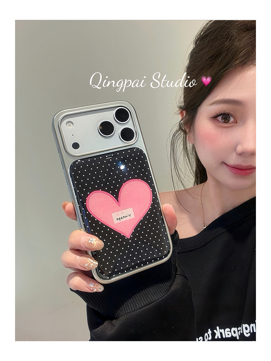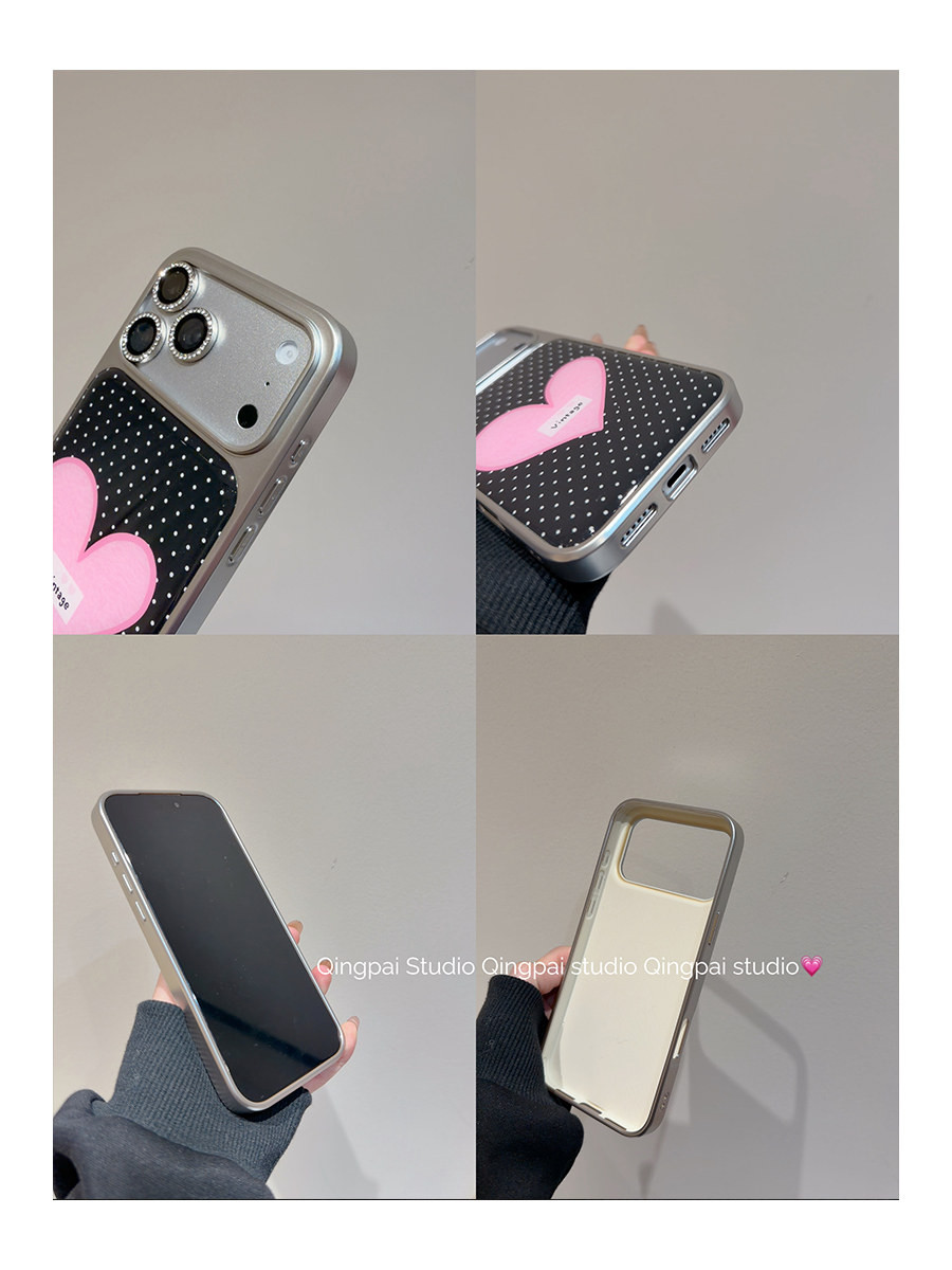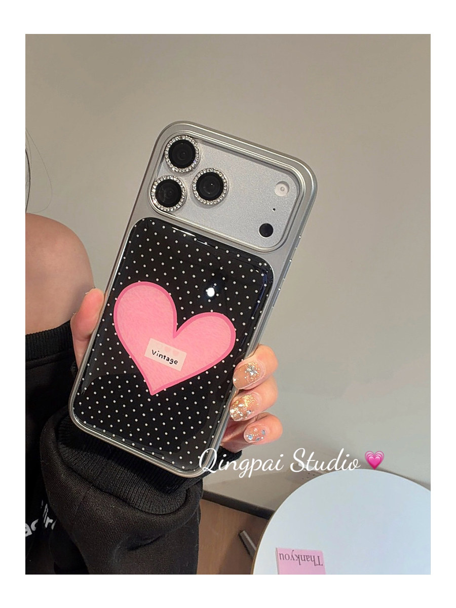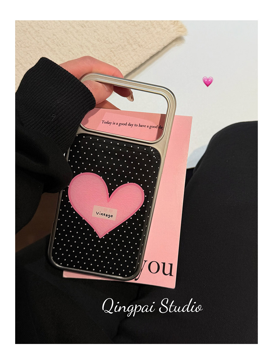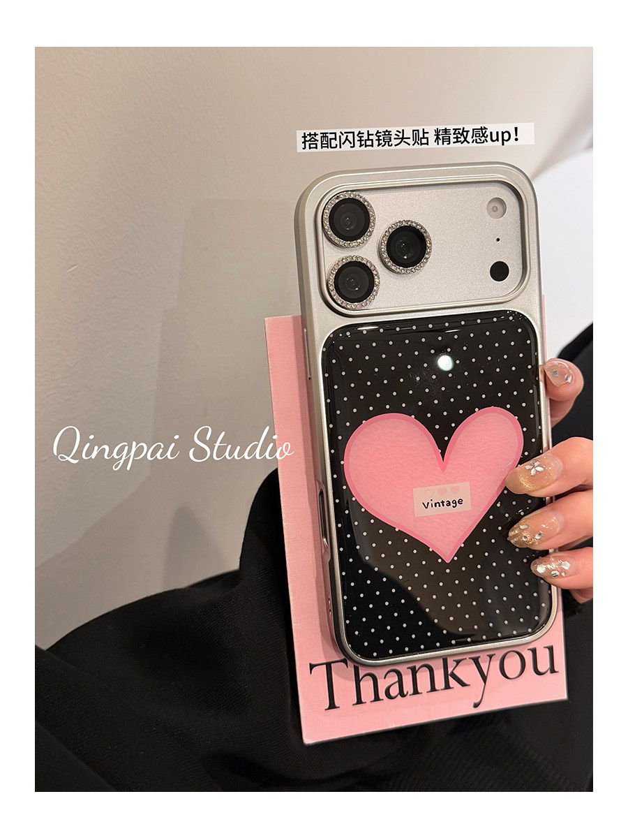 Lightweight ins Korean-Style Polka Dot Pink Heart Phone Case Suitable for Apple 17 Pro Max, iPhone 16 Pro New Model, 15 Women's Model, 14 Silver Frame, 13 Simple Niche High-Value Full-Cover Hard Case