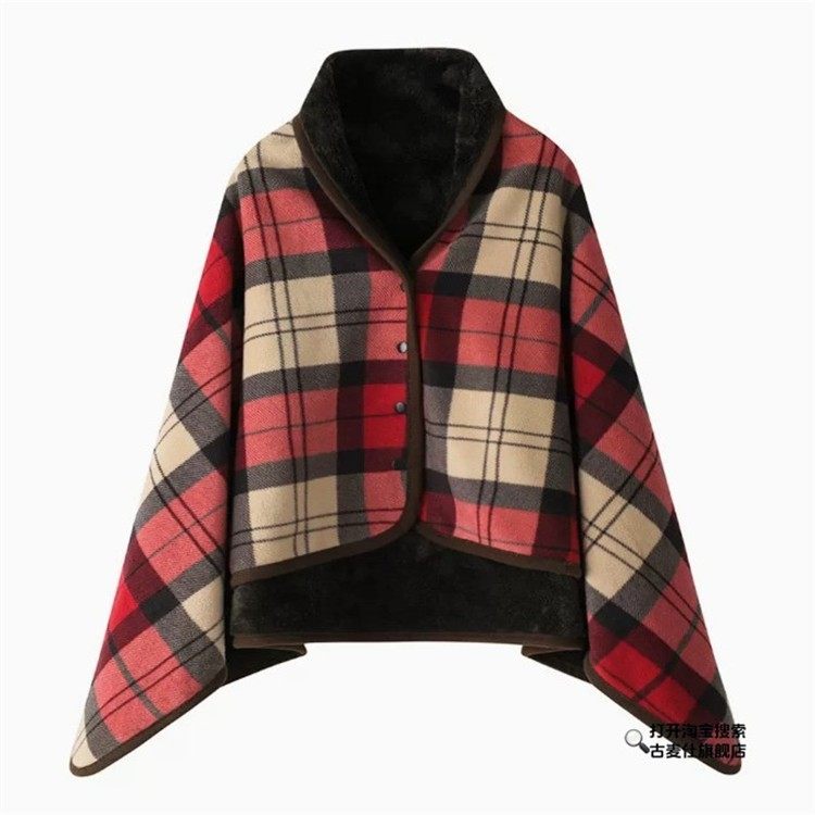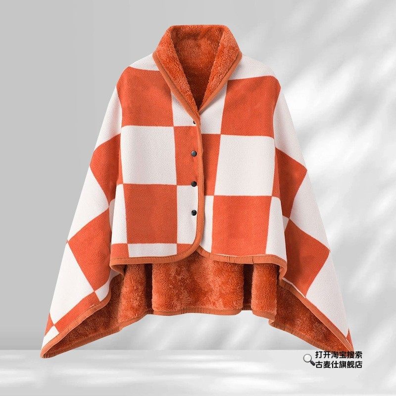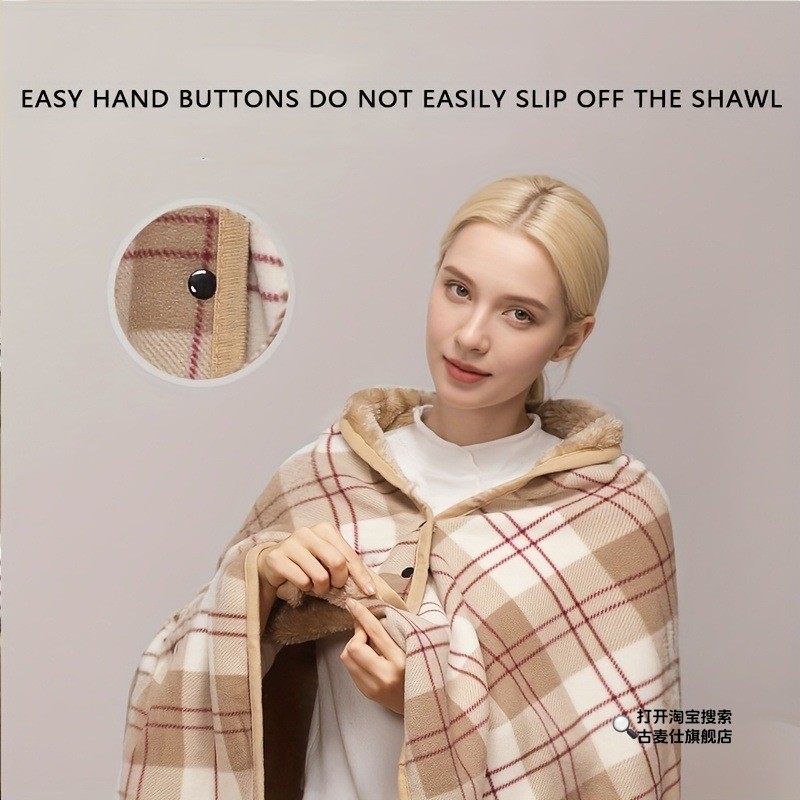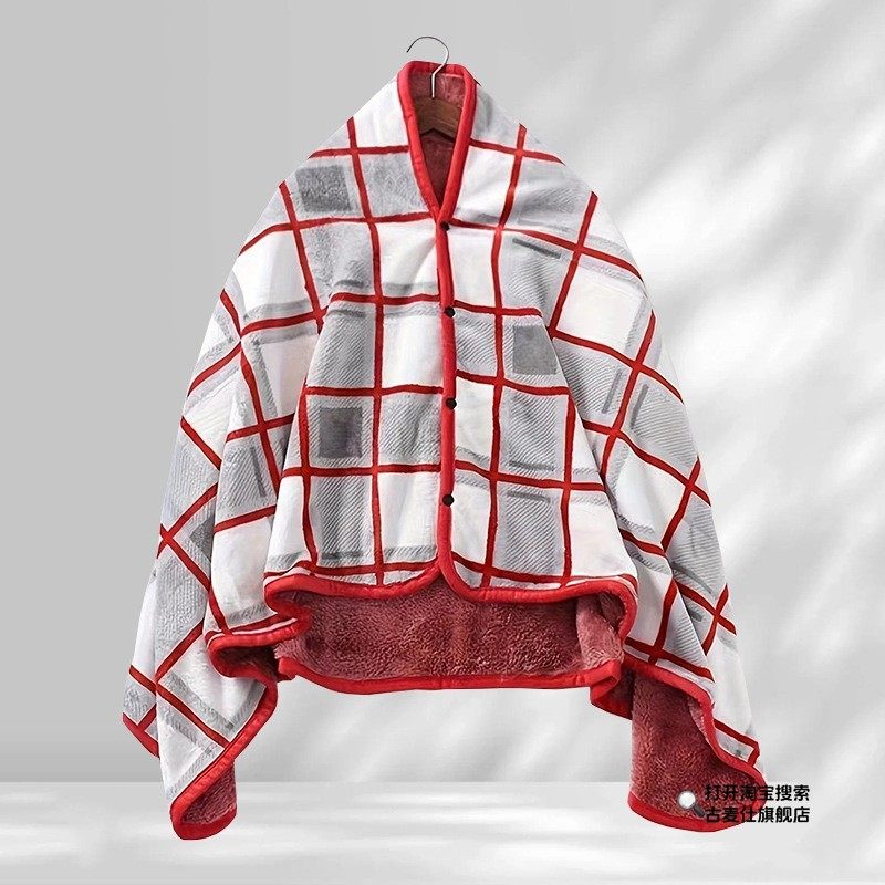 Red Shawl for Women, Dual-Purpose Nap Shawl, Wearable with Buttons, for Office Workstations, Warm Cover for Cold Protection