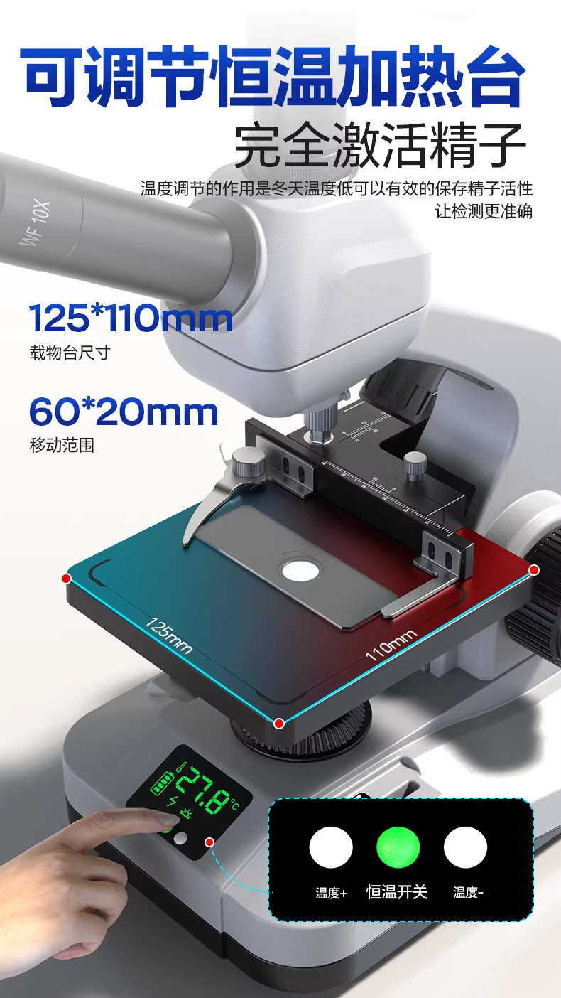 High-Power Microscope with Constant Temperature Heating Can View Sperm and Mites, Professional-Grade Testing for Aquatic and Livestock Breeding, Specifically for Ovulation