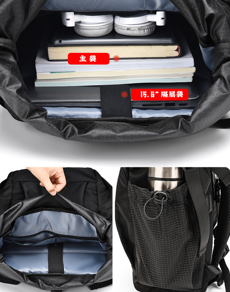 | Internal Structure | Mesh Bag,Patch Pocket,Mobile Phone Bag,Main Bag,Laminated Zipper Bag,Computer Pocket,Change Slot |