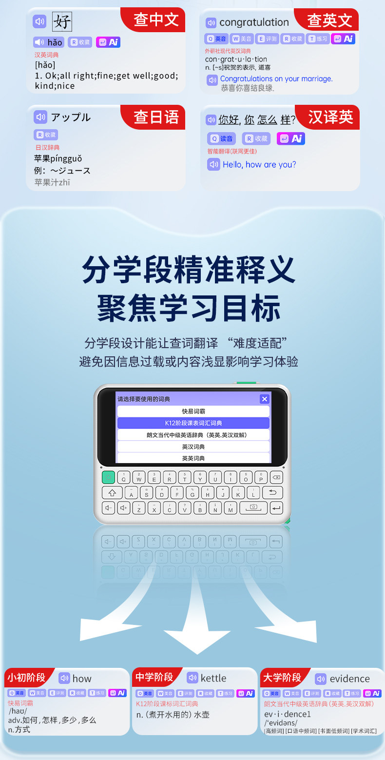 | Additional Features | Real Pronunciation,Camera Function |