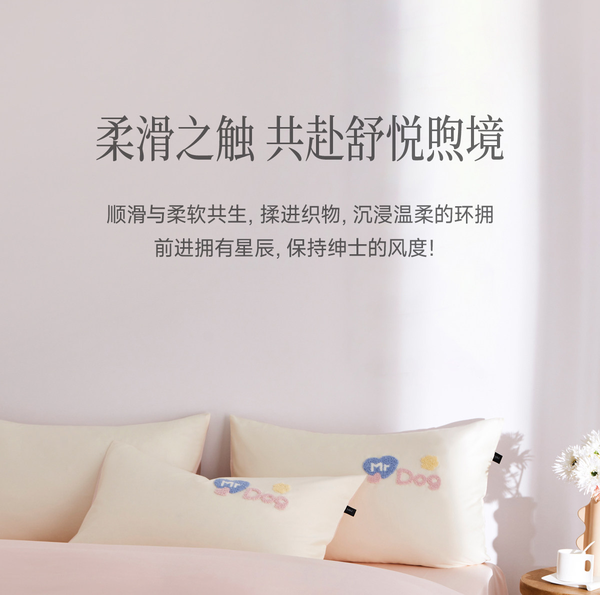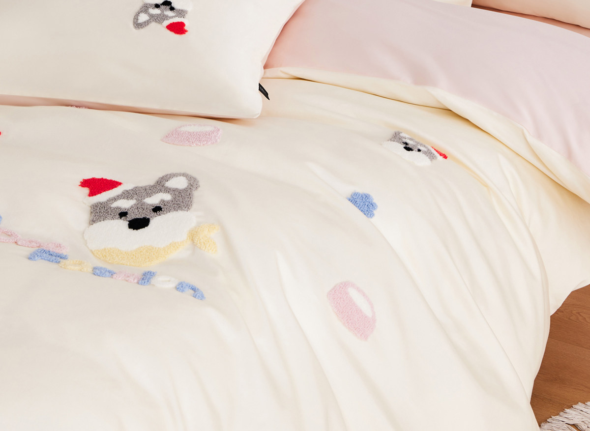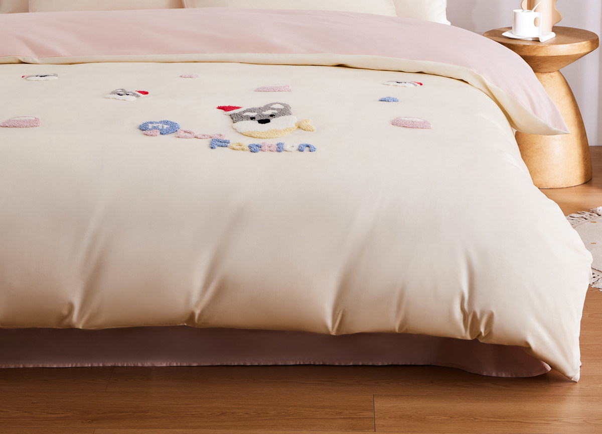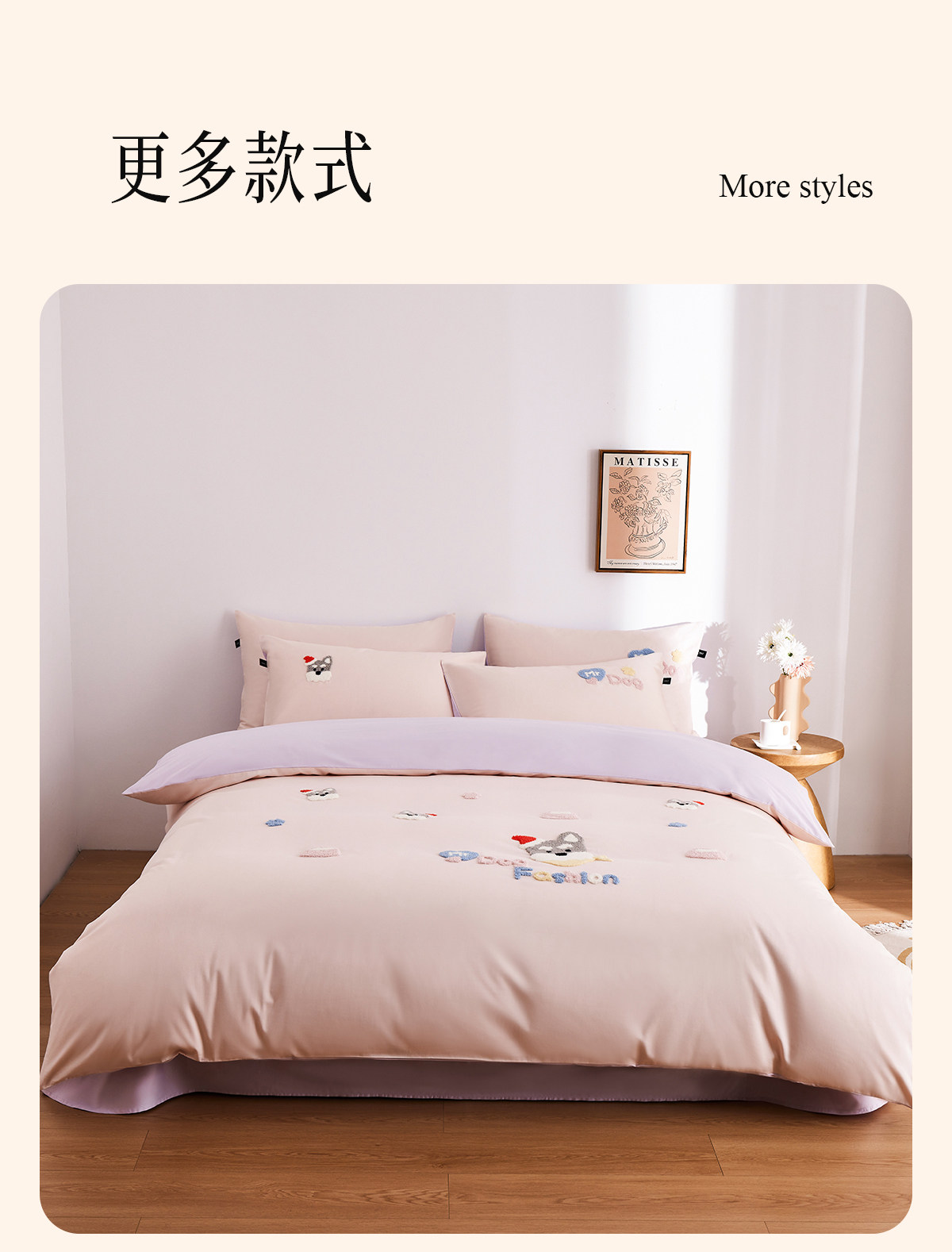 Cute Schnauzer Cartoon Towel Embroidery Four-Piece Bedding Set Pure Cotton 100Pro Satin Duvet Cover Bed Sheet Bedding
