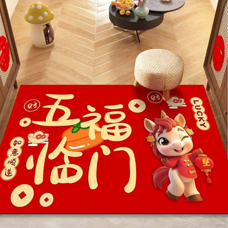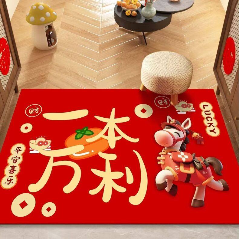 Year of the Horse Floor Mat, Congratulations on Getting Rich, 2026 Red Entrance Mat, Bedroom Festive Door Mat, Non-Slip Foot Mat for Home Indoor Use