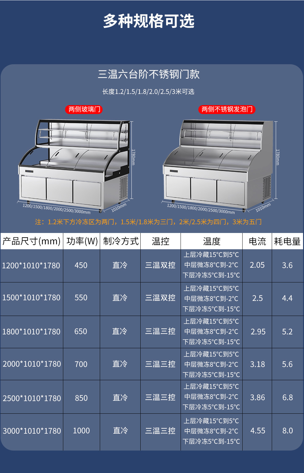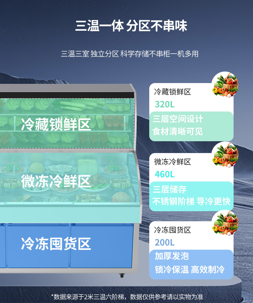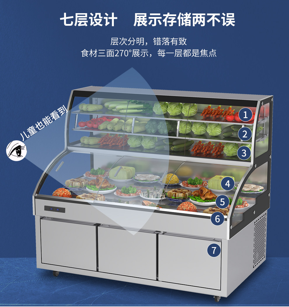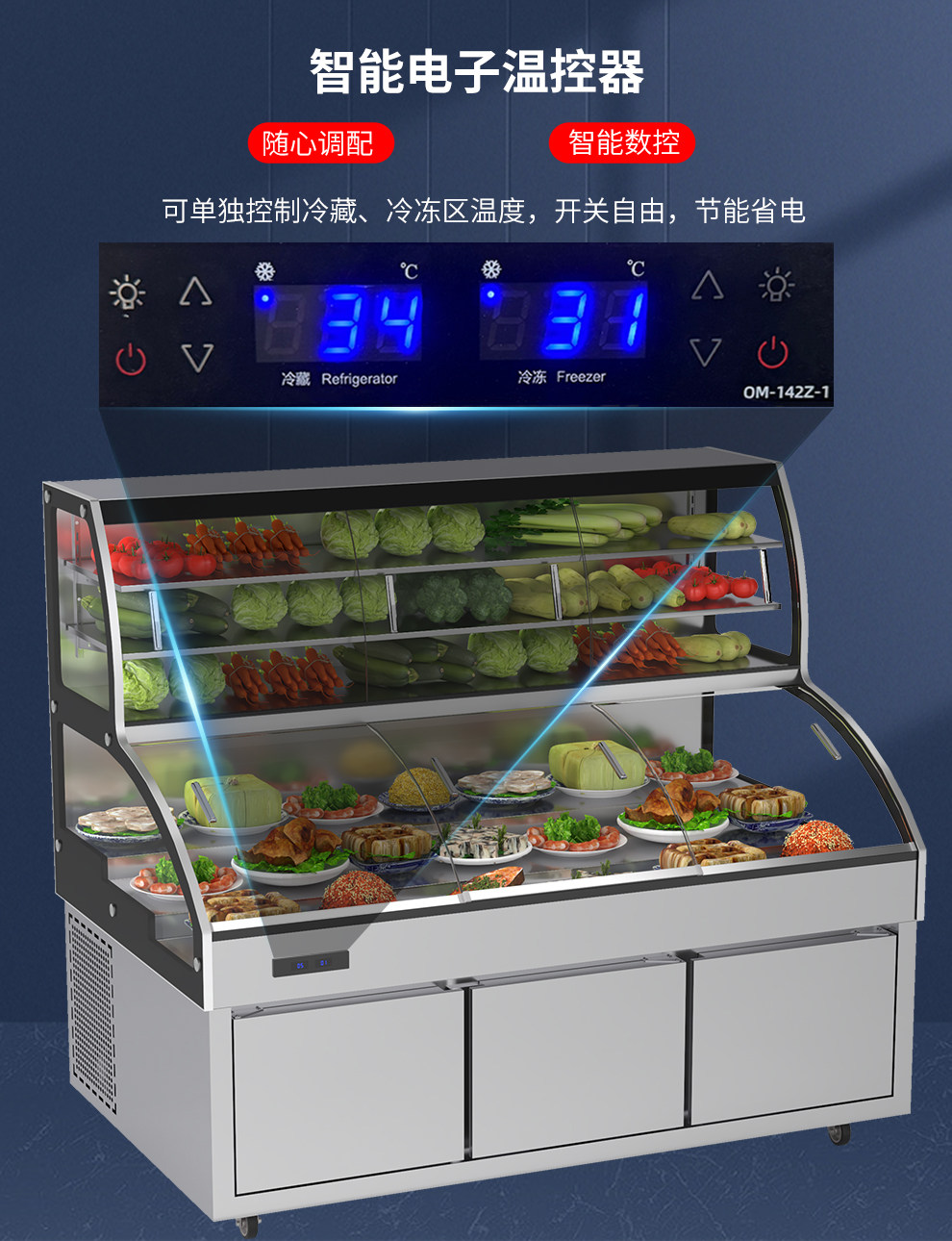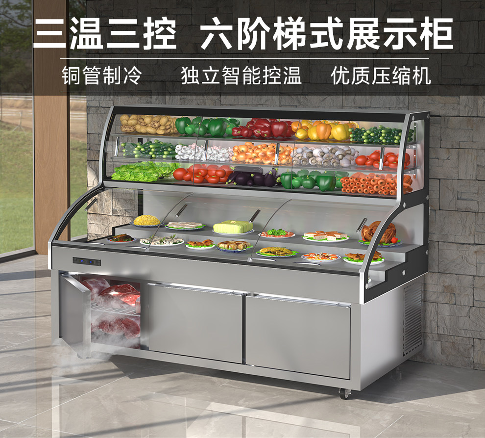 Three-Temperature Five-Level Ordering Display Cabinet, Commercial Barbecue Refrigerator Display Cabinet, Refrigerated and Frozen Open-Display Food Display Cabinet