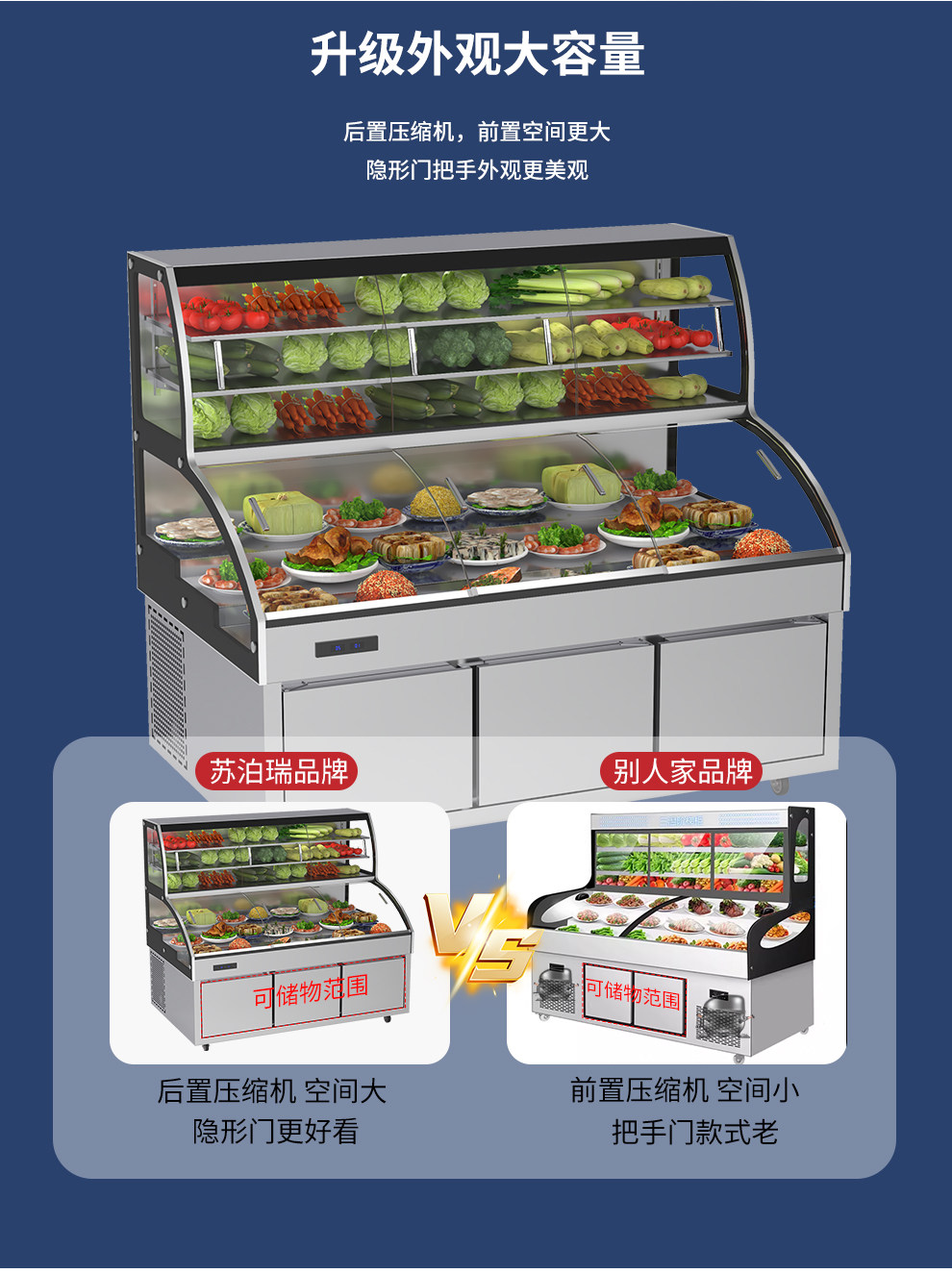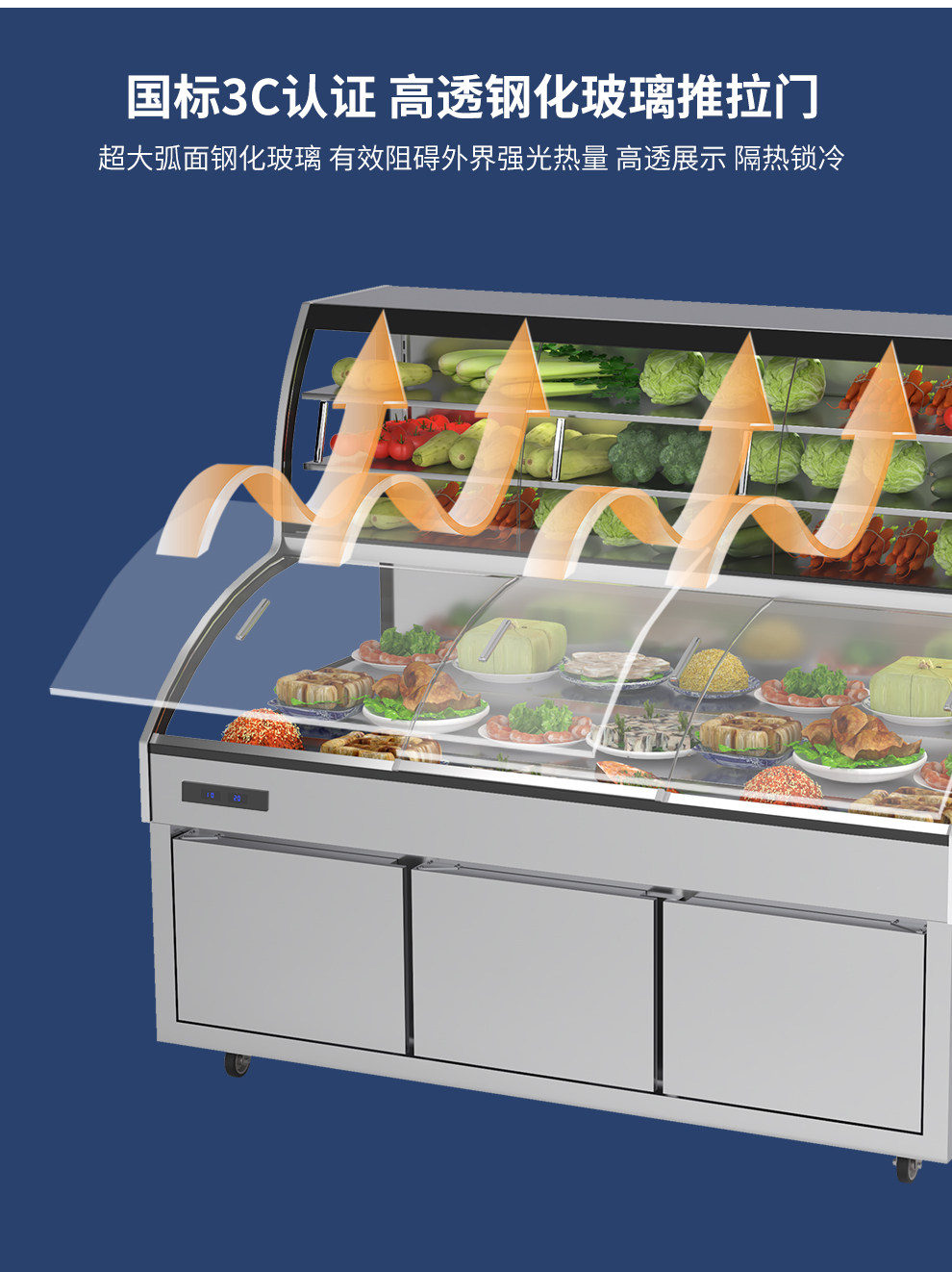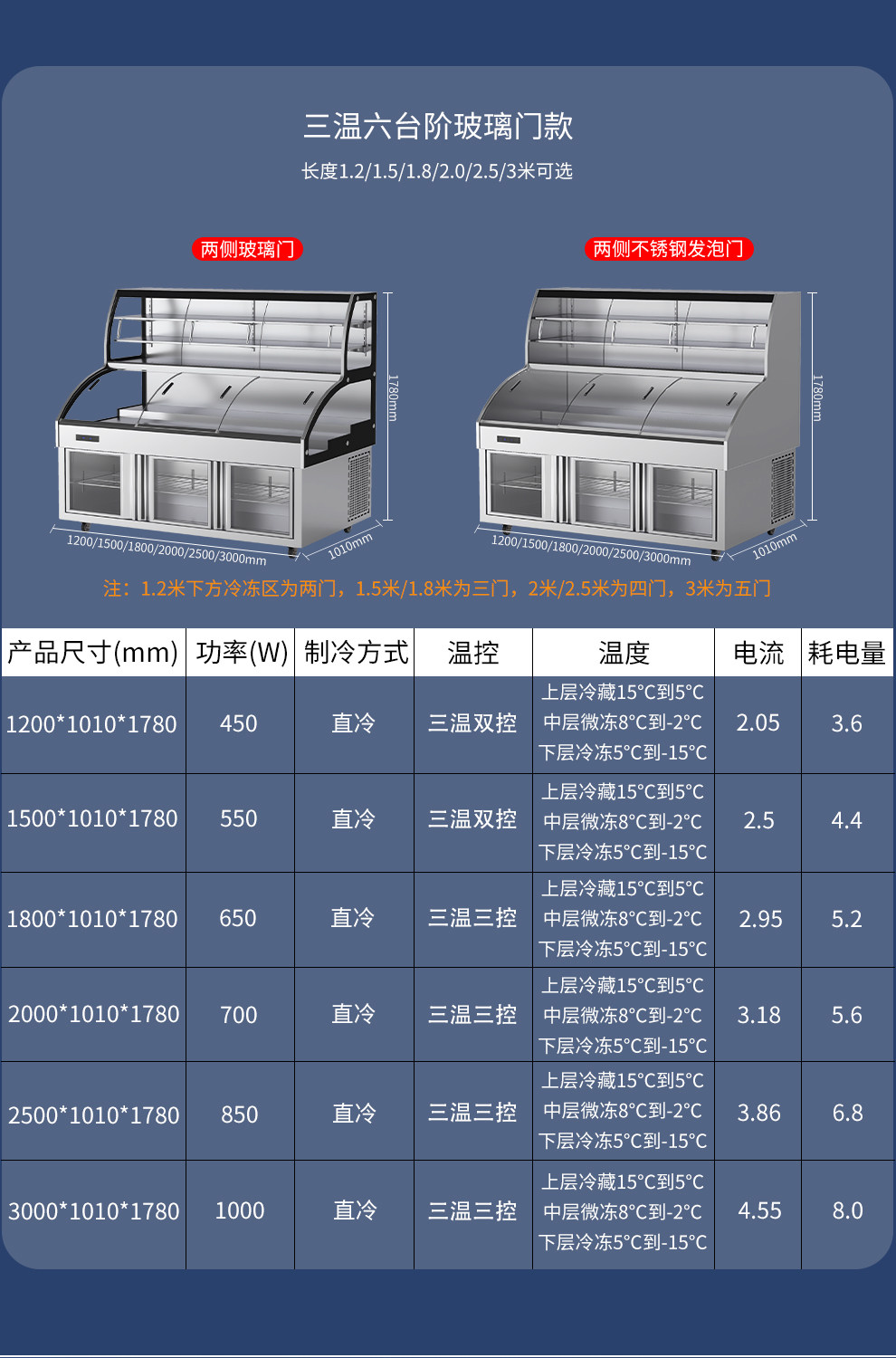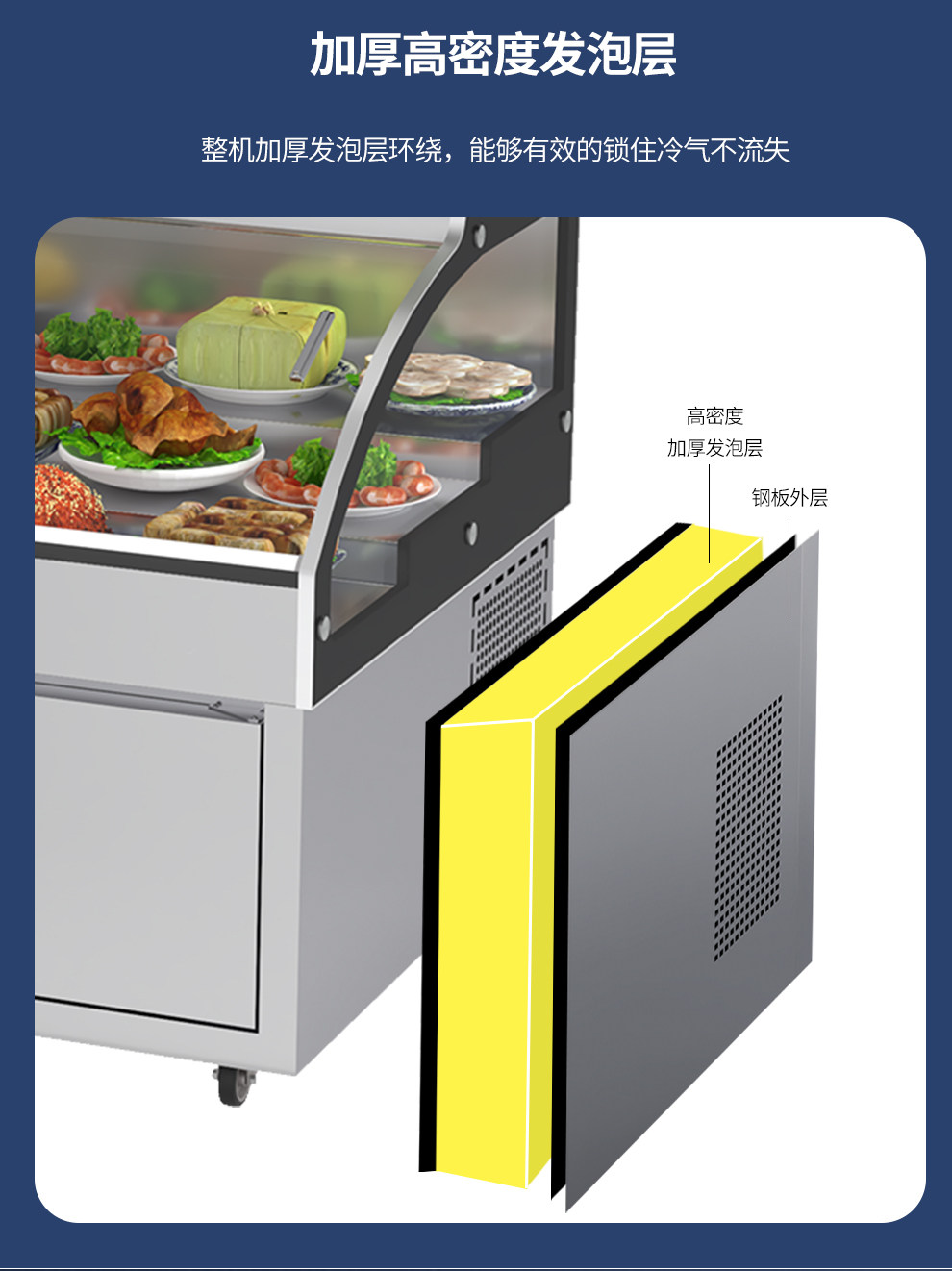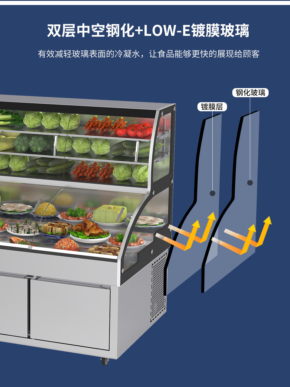 Three-Temperature Five-Level Ordering Display Cabinet, Commercial Barbecue Refrigerator Display Cabinet, Refrigerated and Frozen Open-Display Food Display Cabinet