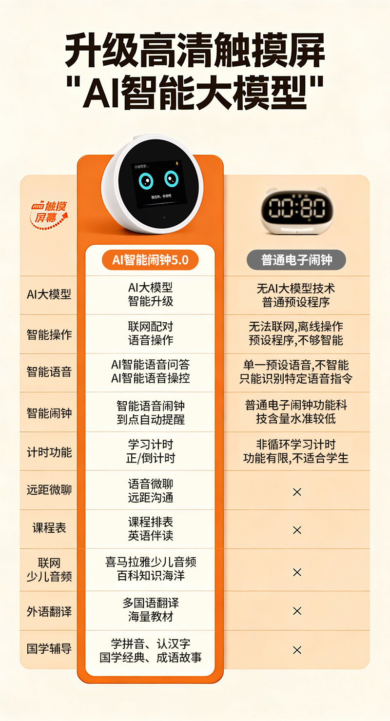 Lezhi Write Ai Time Treasure Robot Children's Smart Alarm Clock Toy Voice Answering Touch Screen English Learning Machine