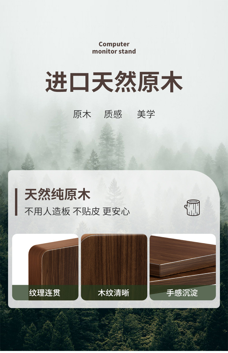 Solid Wood Desktop Computer Riser Office Desk Monitor Stand Desktop Screen Tv Riser Base Bracket