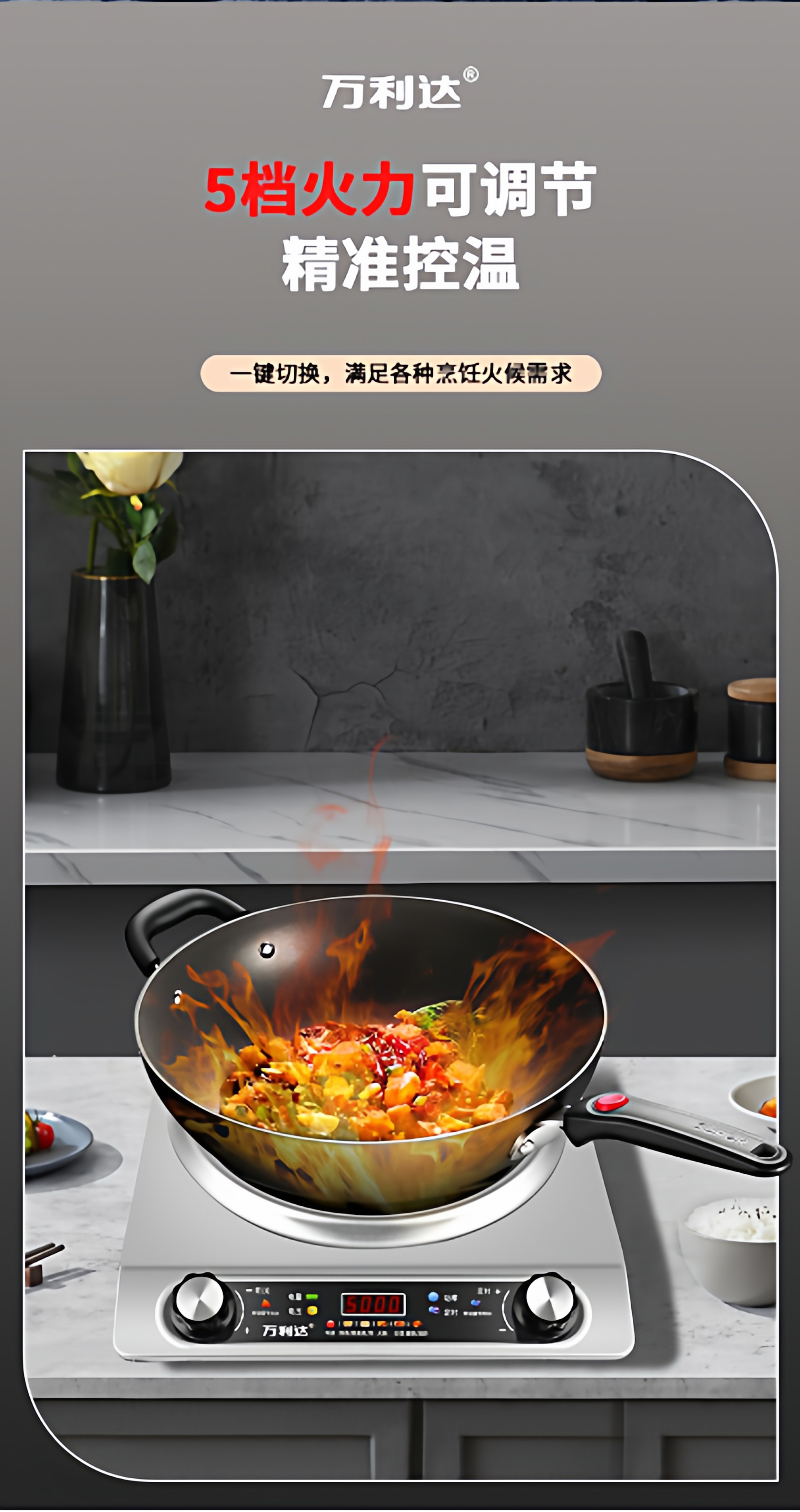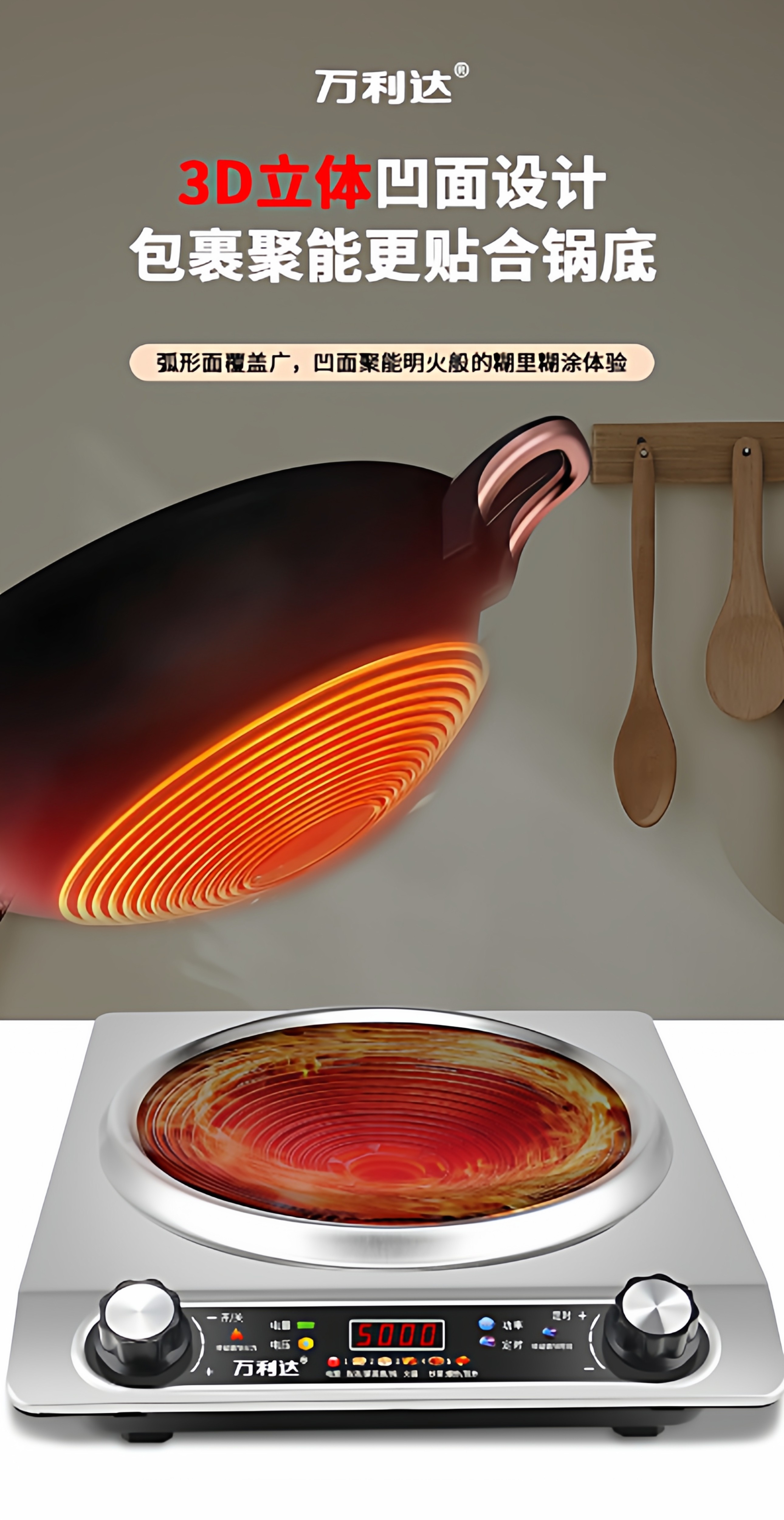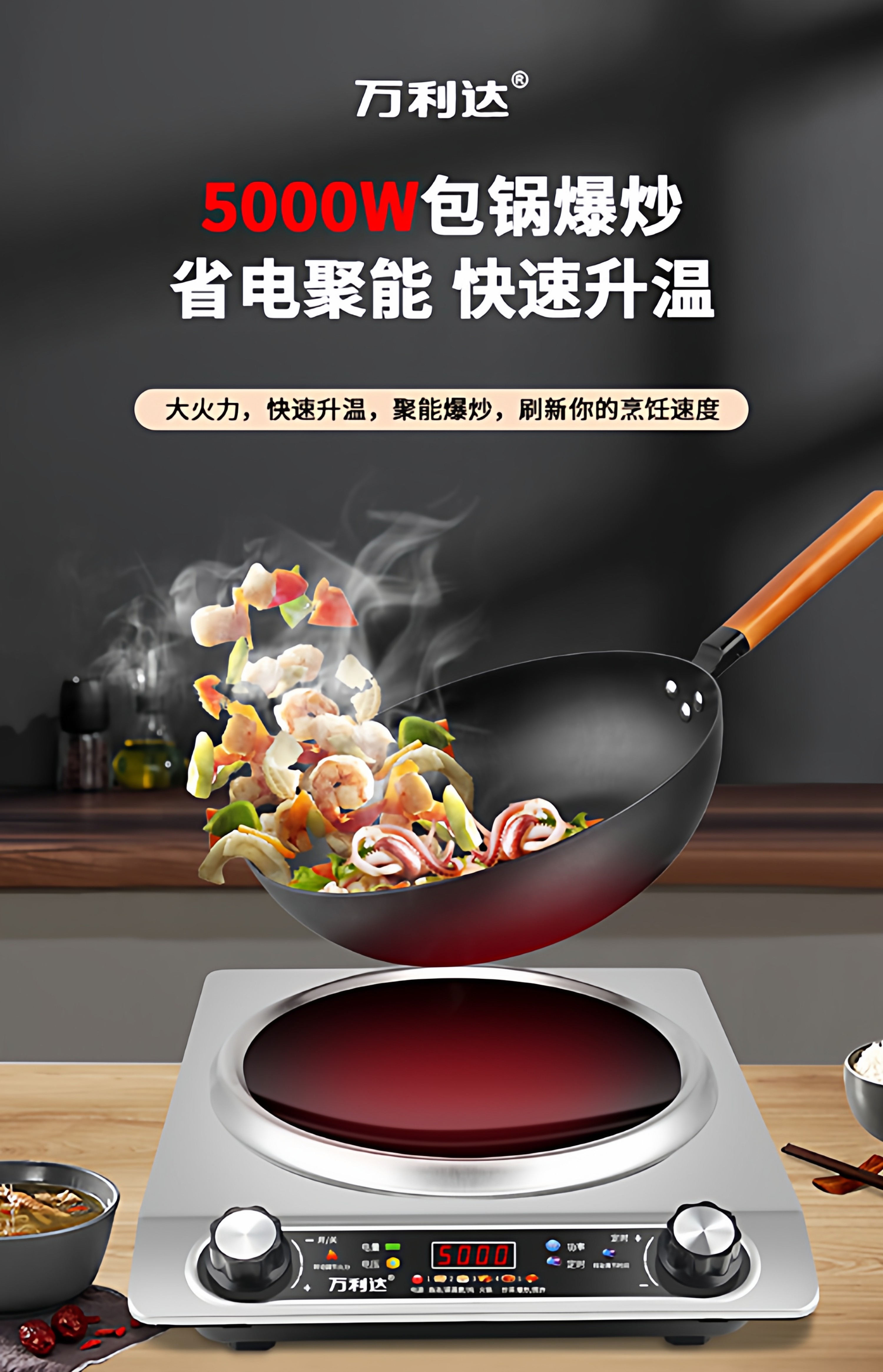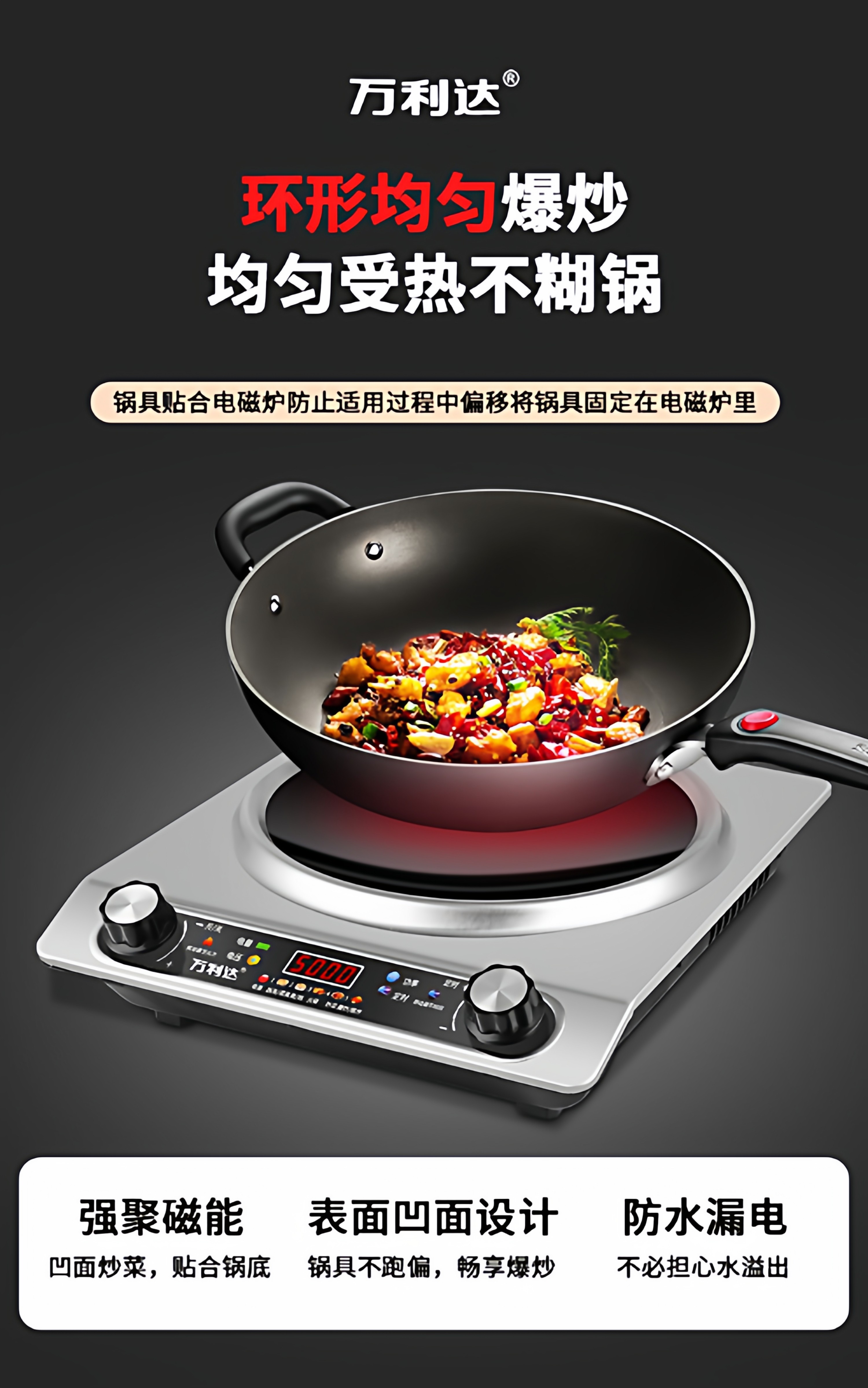 Wanlida Induction Cooker for Home Use, 5000W, Concave Surface, High Power, Strong Heat for Stir-Frying, Waterproof, Timer, Multi-Functional Hot Pot