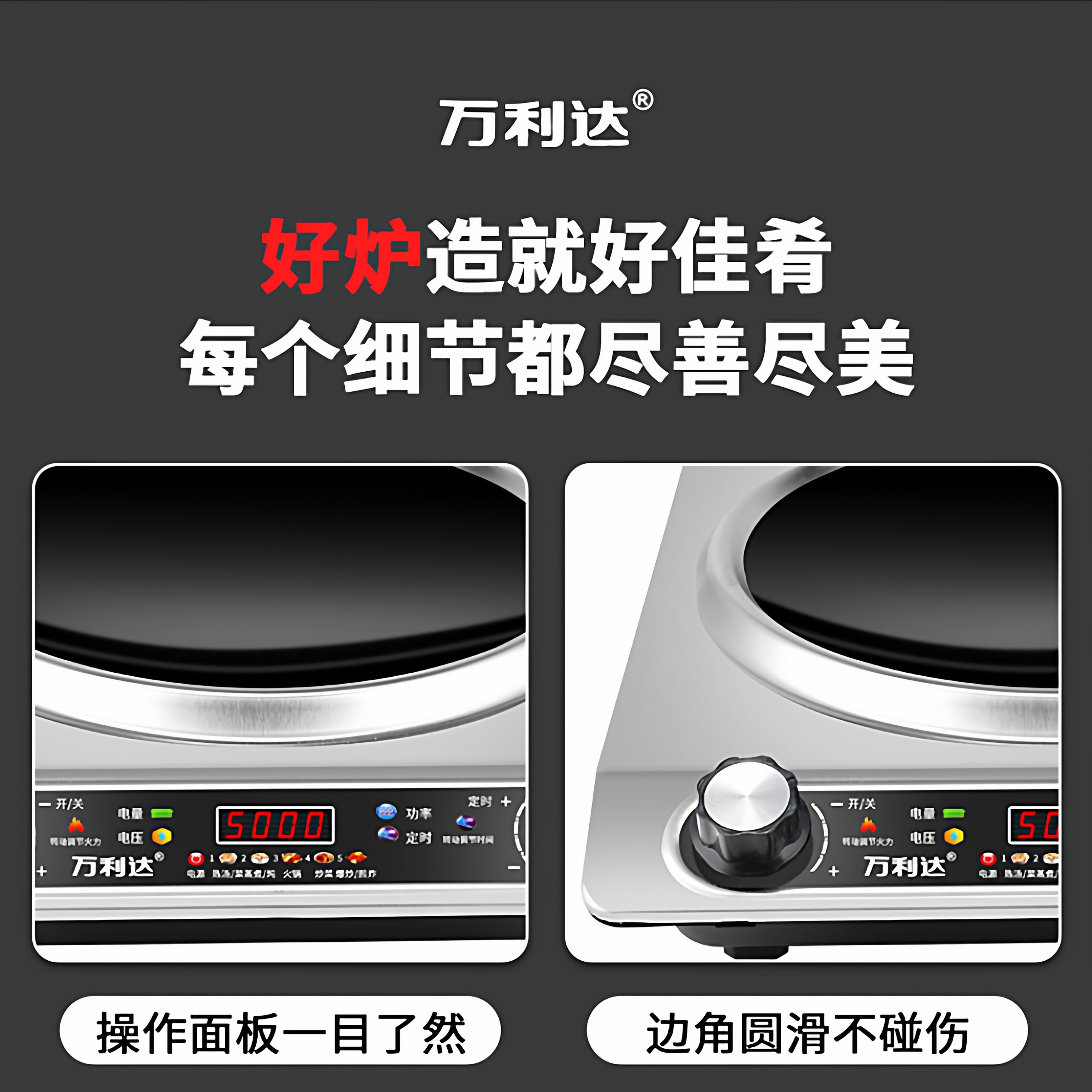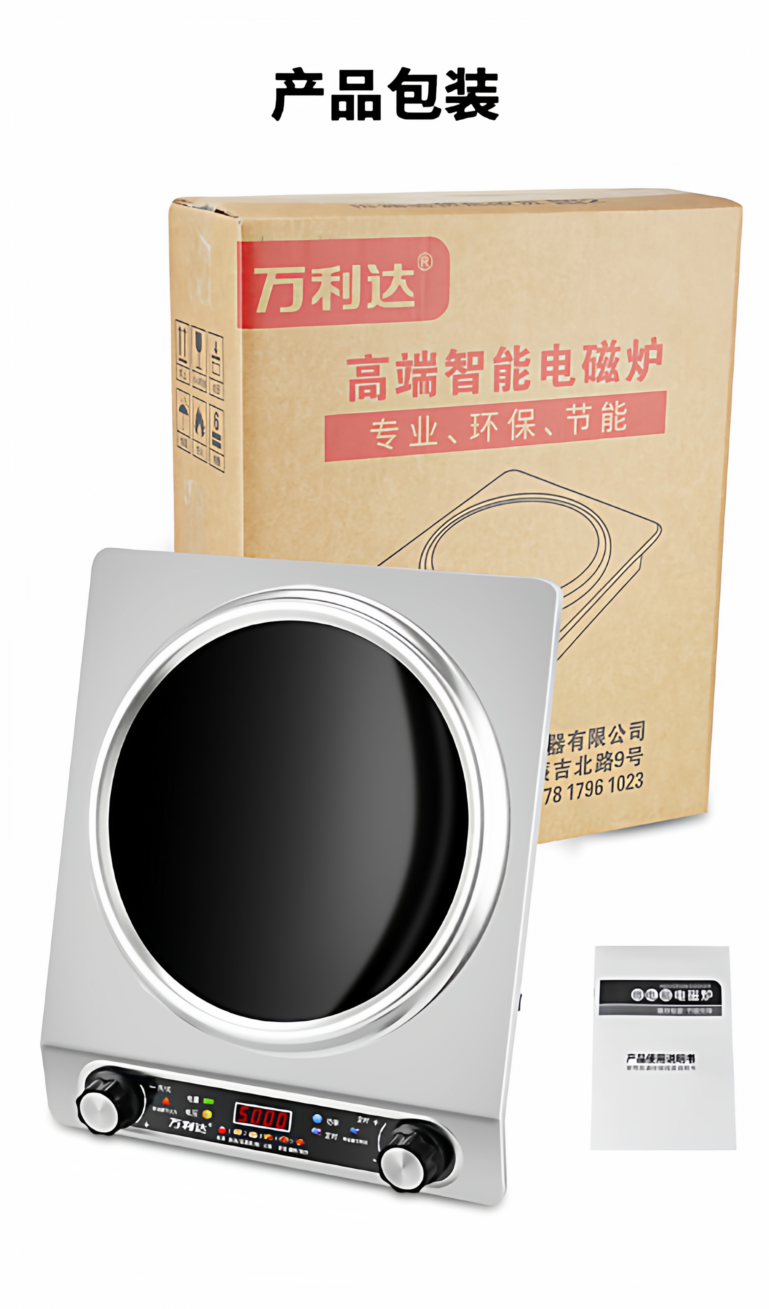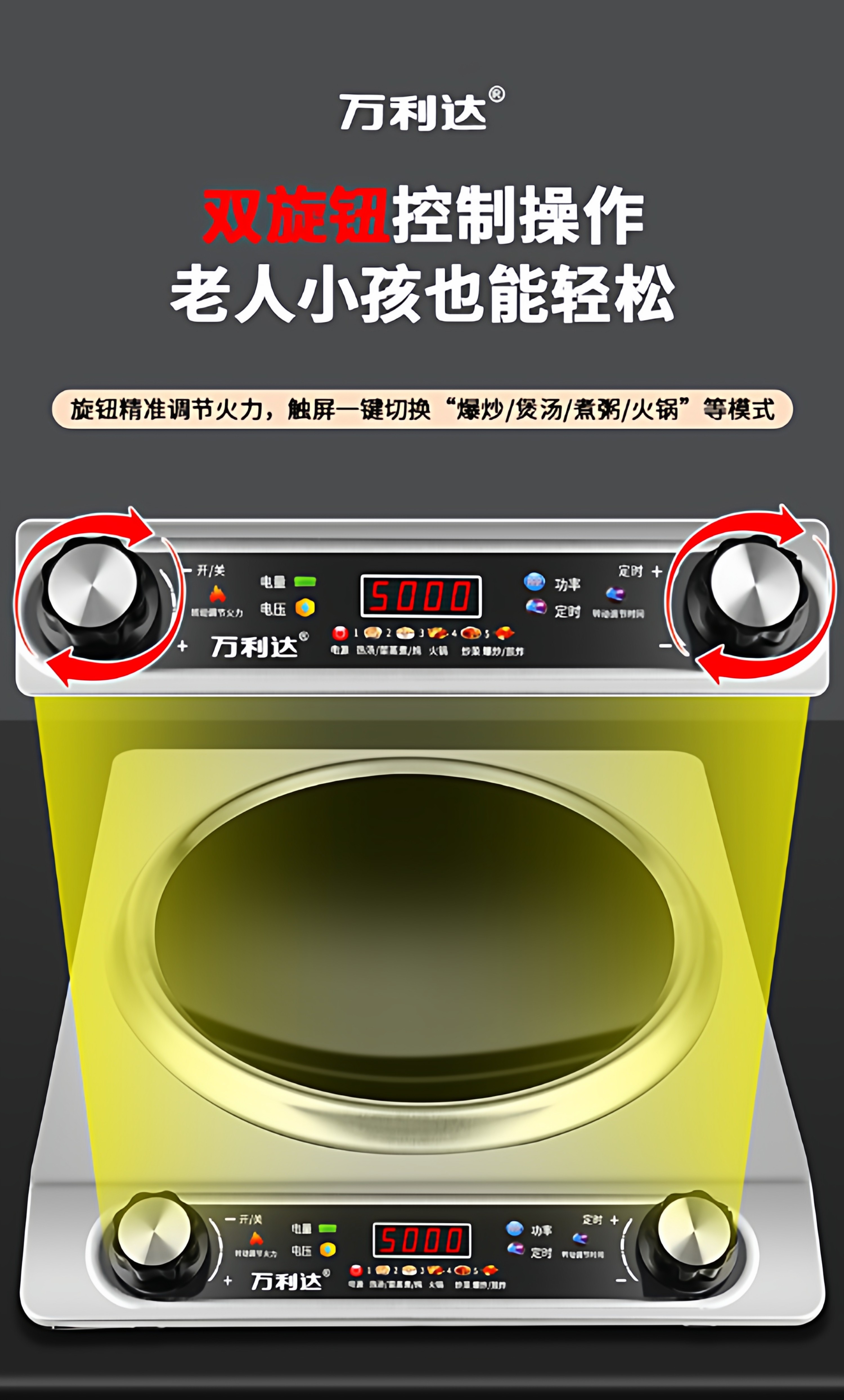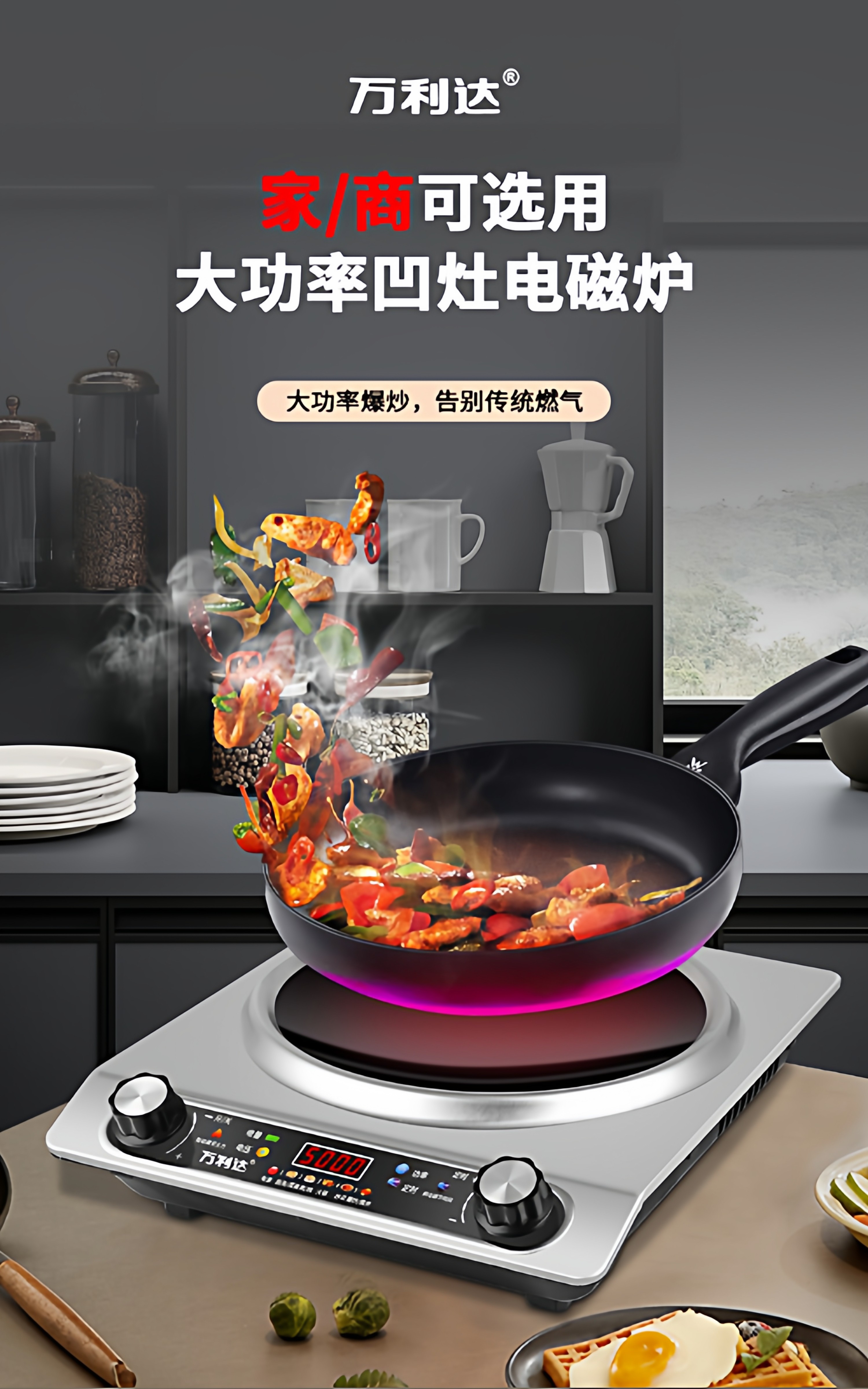 Wanlida Induction Cooker for Home Use, 5000W, Concave Surface, High Power, Strong Heat for Stir-Frying, Waterproof, Timer, Multi-Functional Hot Pot