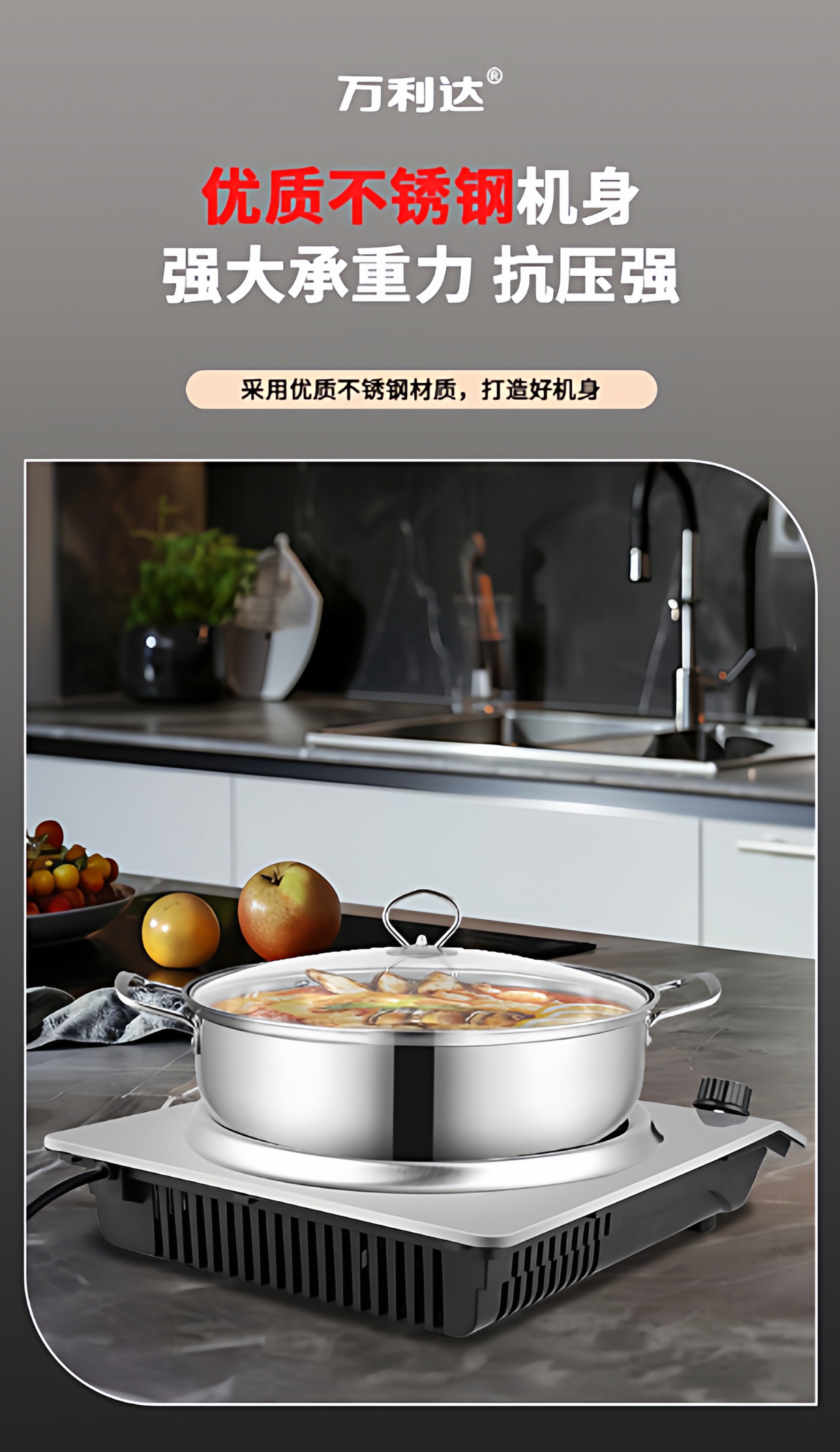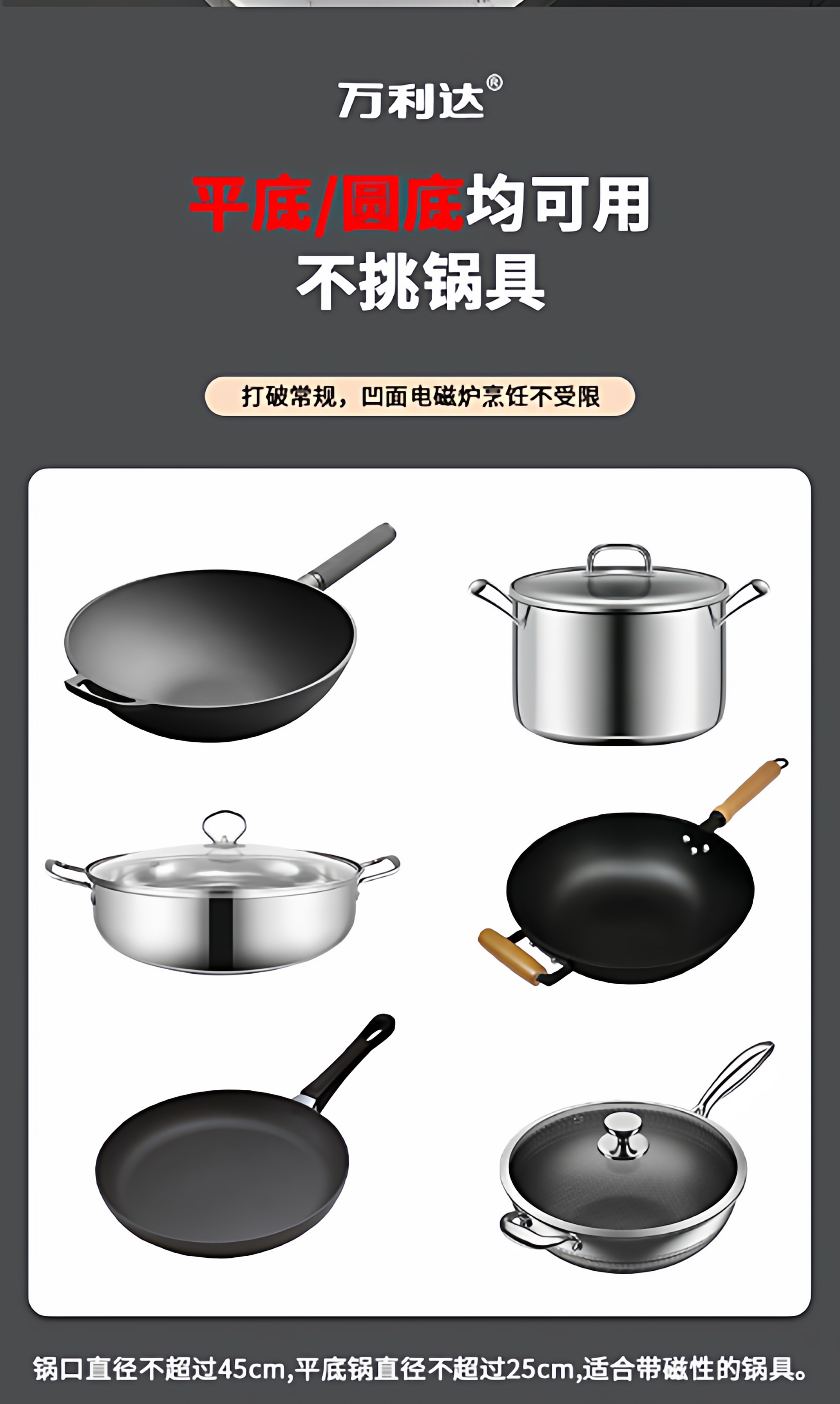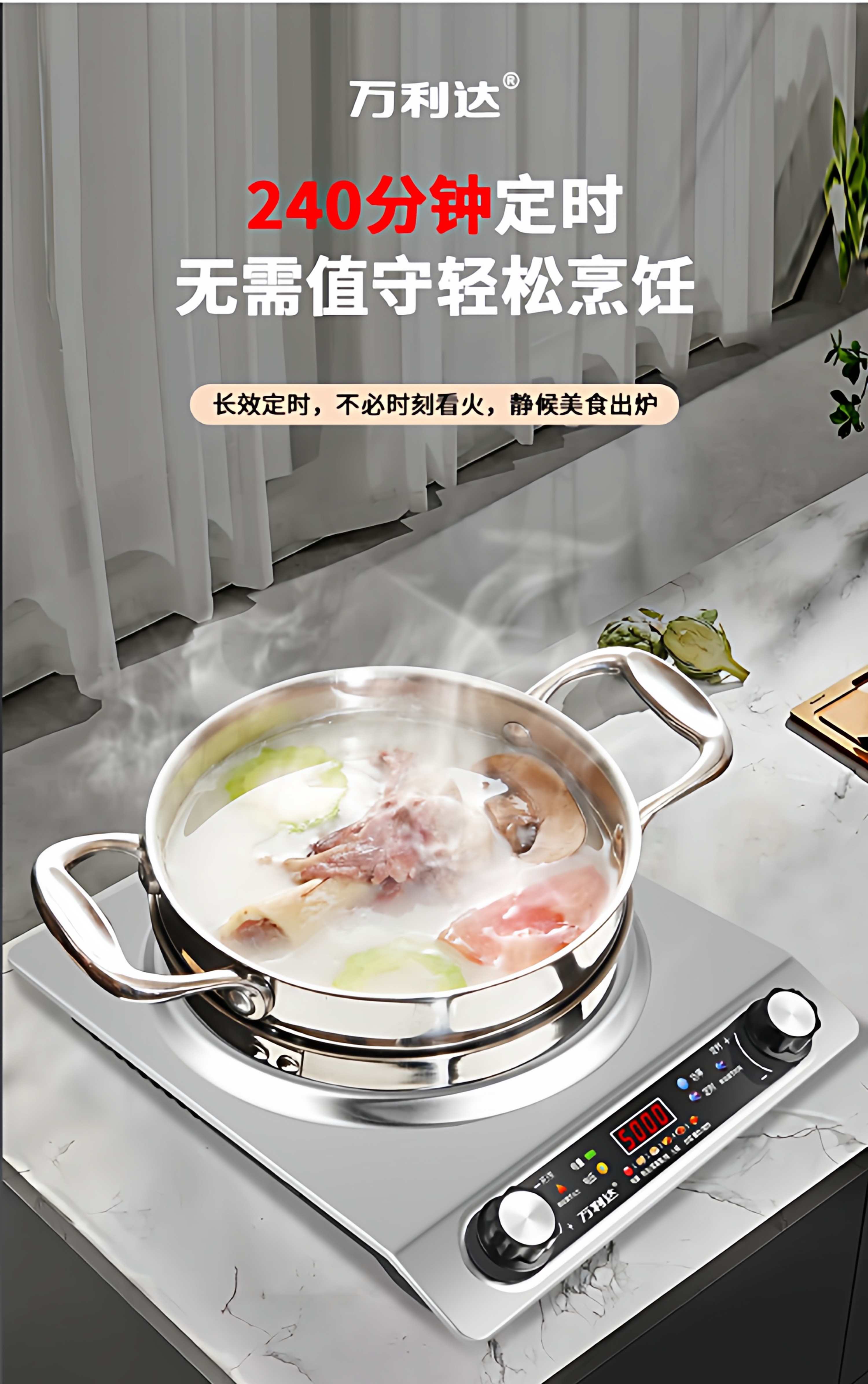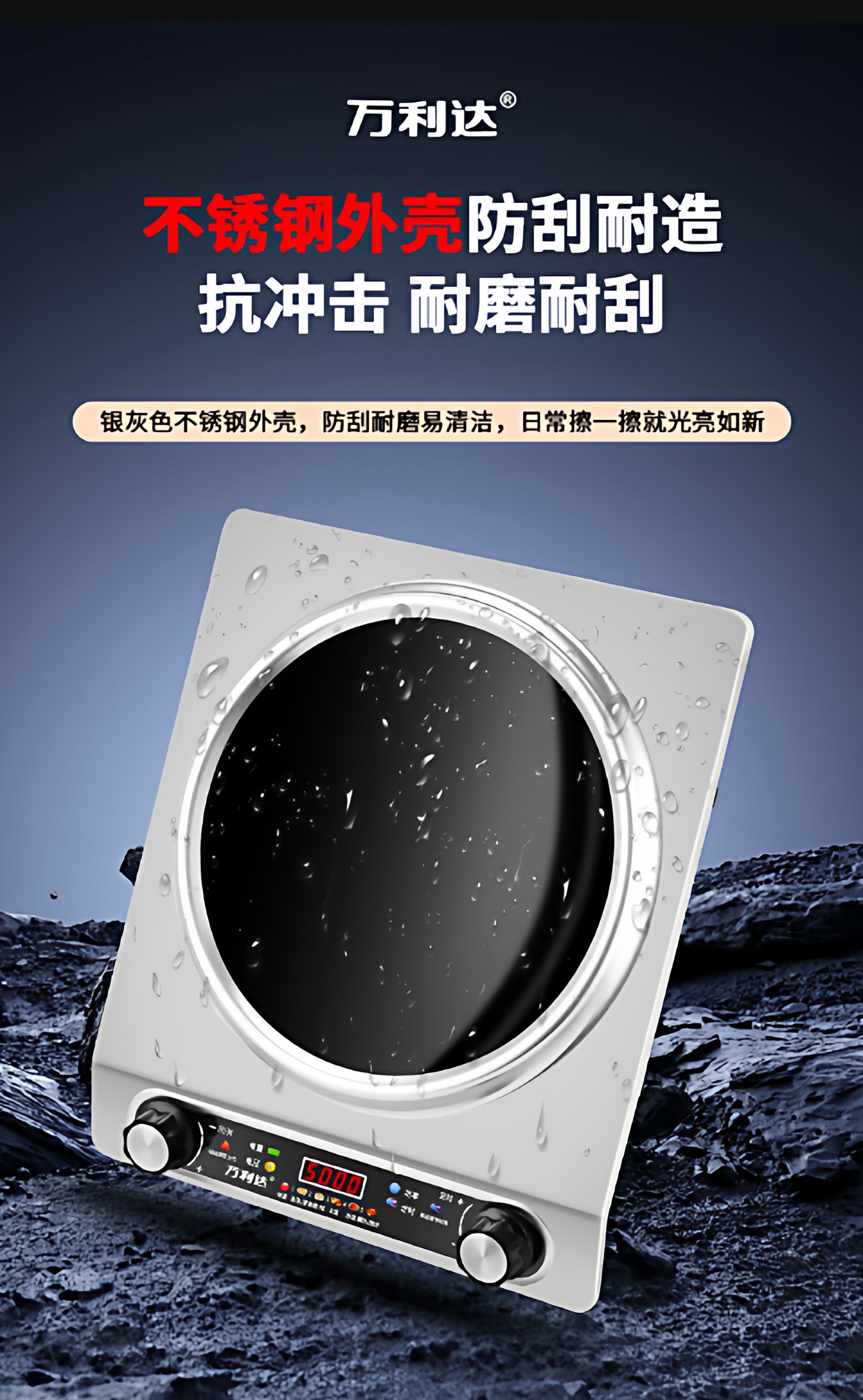 Wanlida Induction Cooker for Home Use, 5000W, Concave Surface, High Power, Strong Heat for Stir-Frying, Waterproof, Timer, Multi-Functional Hot Pot