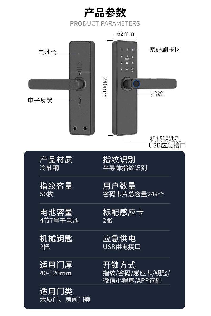 Indoor Wooden Door Fingerprint Lock Office Password Lock Home Door Lock Bedroom Door Guesthouse Electronic Lock Smart Lock