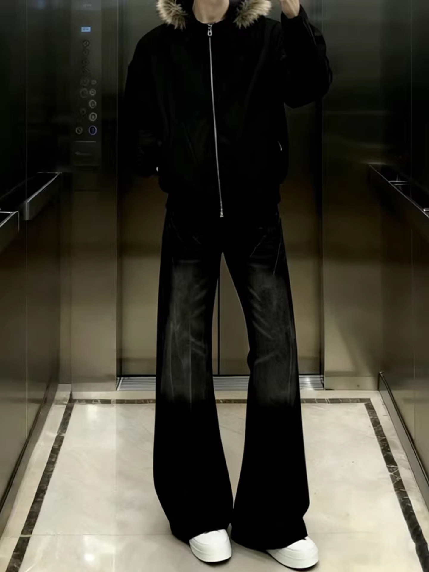 Cleanfit Washed Black Flared Jeans for Men, American Retro Vibe Scimitar Pants, Slimming Wide-Leg Pants