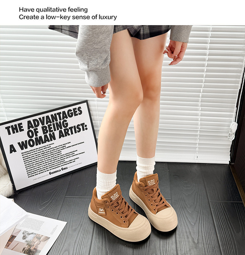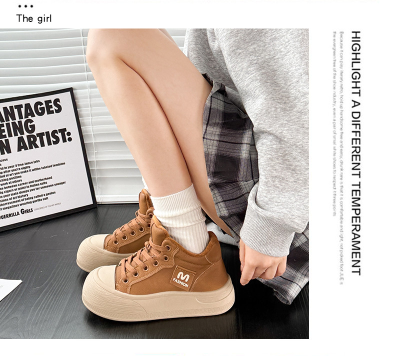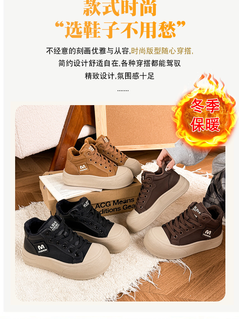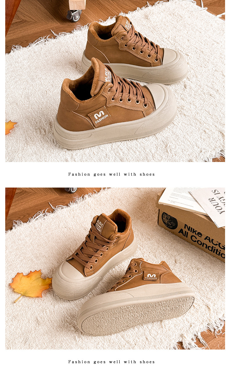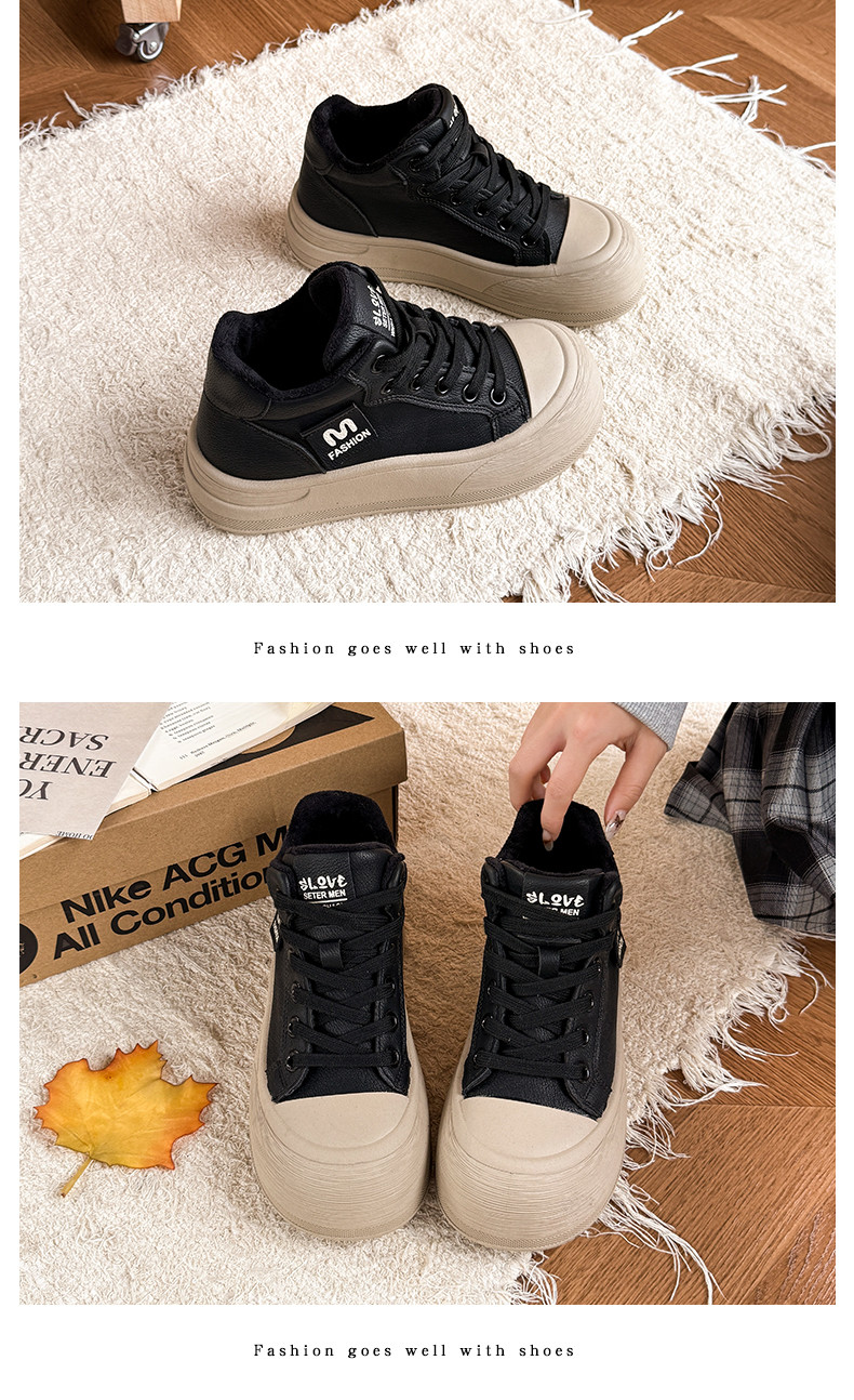 Fleece-Lined Warm Snow Boots for Women 2025 Winter Versatile Thick-Soled Non-Slip High-Top Lace-Up Loafers Travel Chunky Shoes