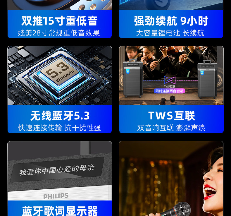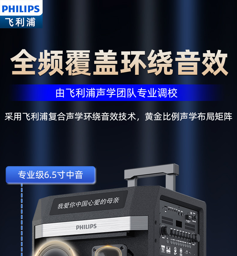 Philips 190t Series Bluetooth Speaker Outdoor Karaoke Square Dance High Volume High Power Trolley Instrument Speaker