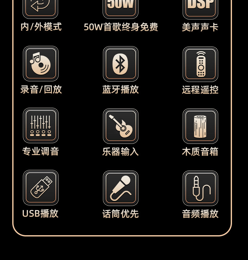 | Color Classification | [Series Version] 12 Bass + [50W Free Karaoke System for Life] + Anti-Howling Microphone*2,[Series Version] 15 Bass + [50W Free Karaoke System for Life] + Anti-Howling Microphone*2 |