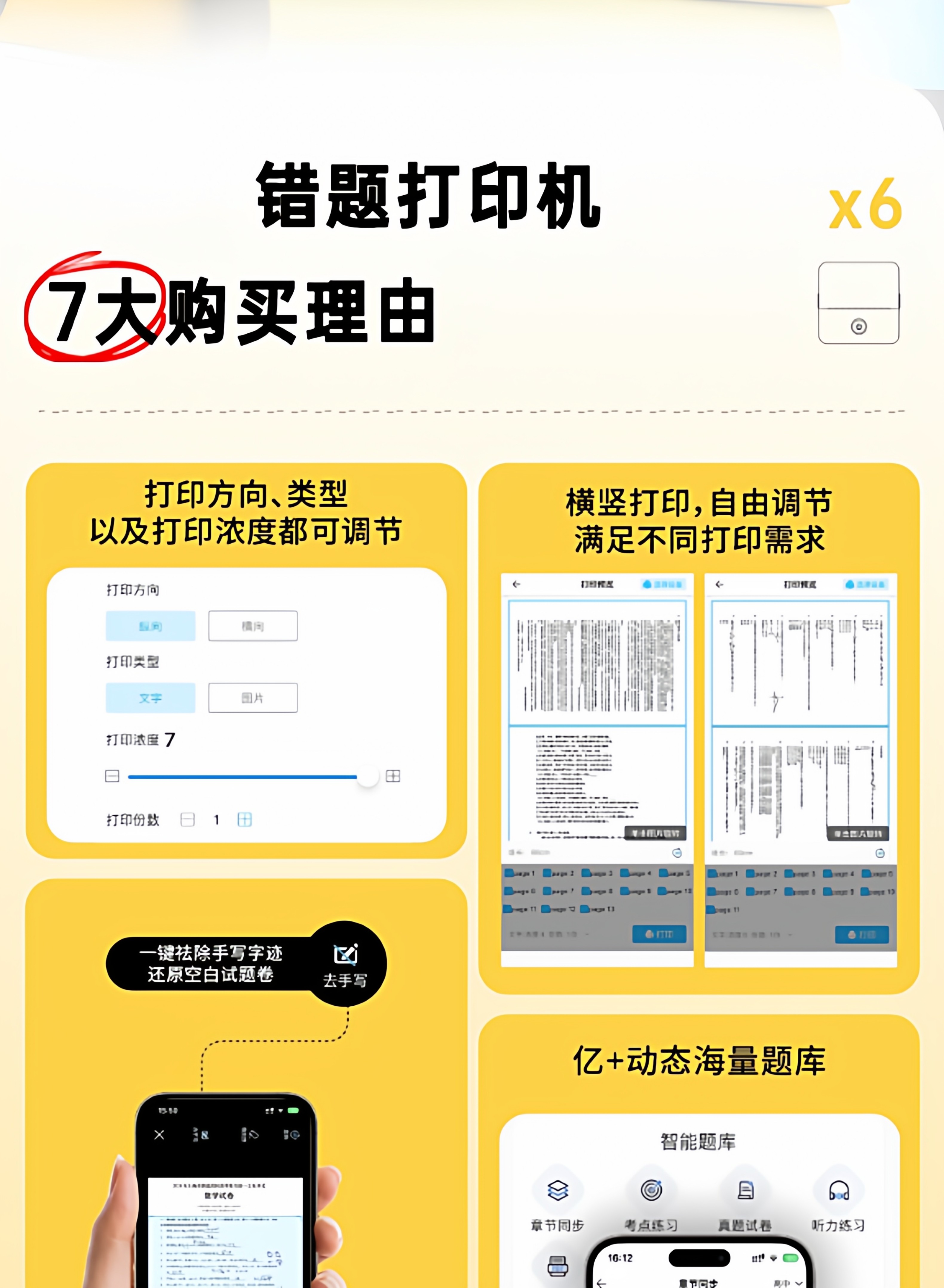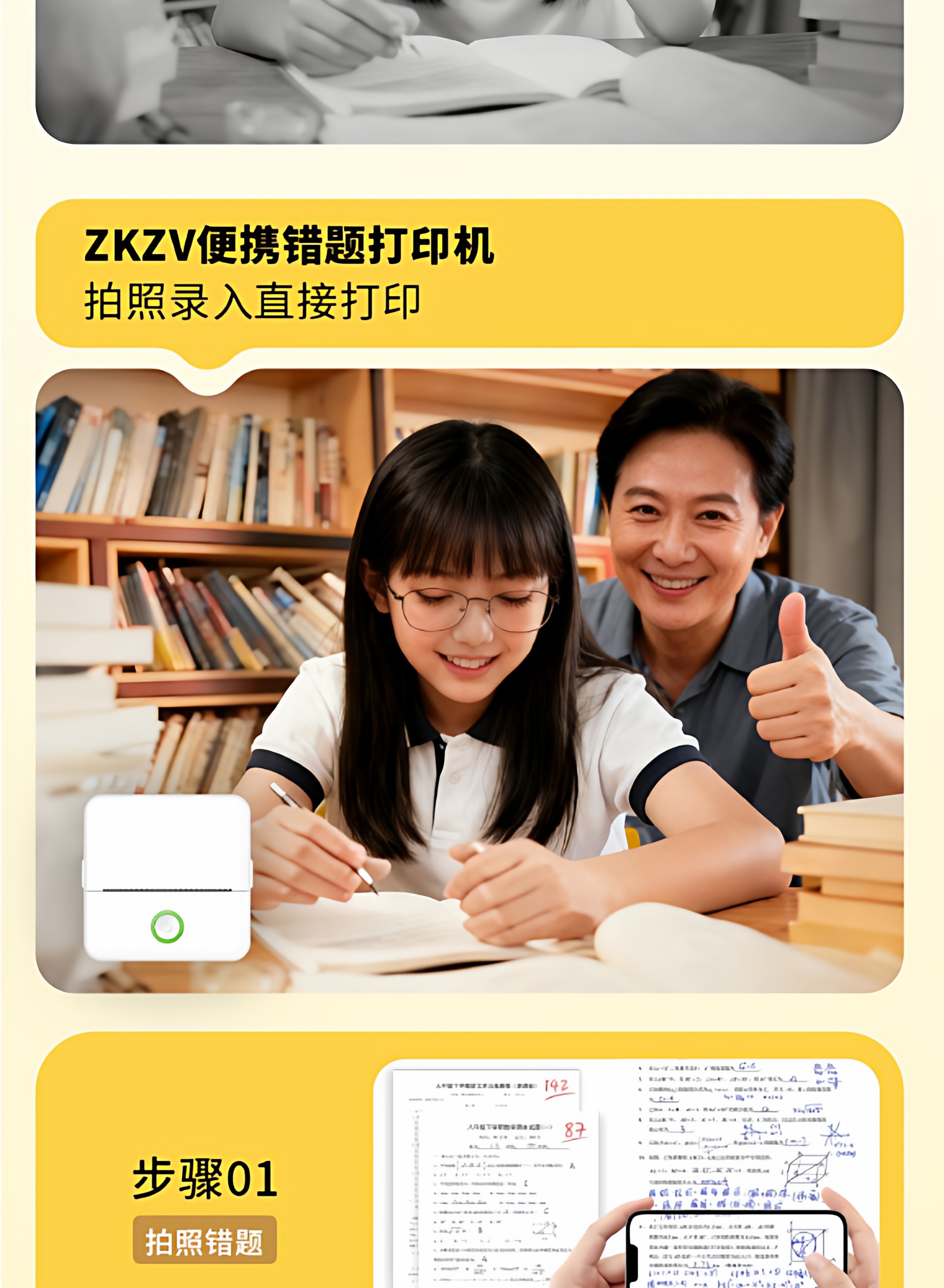 Student Error Correction Printer Portable Mini Small Portable Home-Use High-Definition Error Correction for Middle and High School Assignments