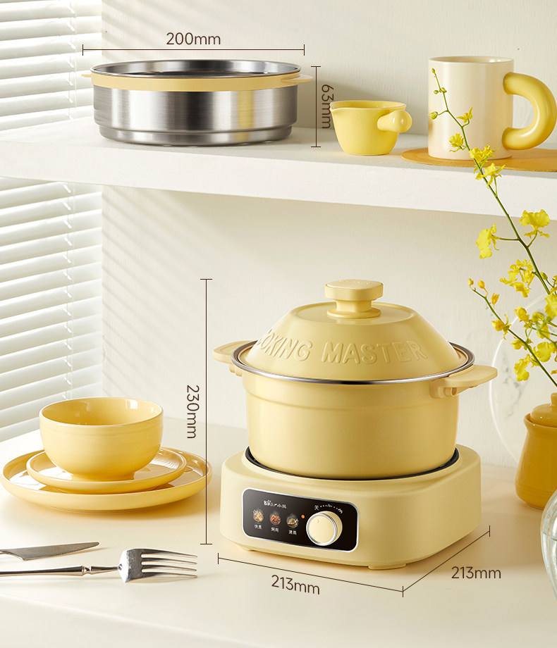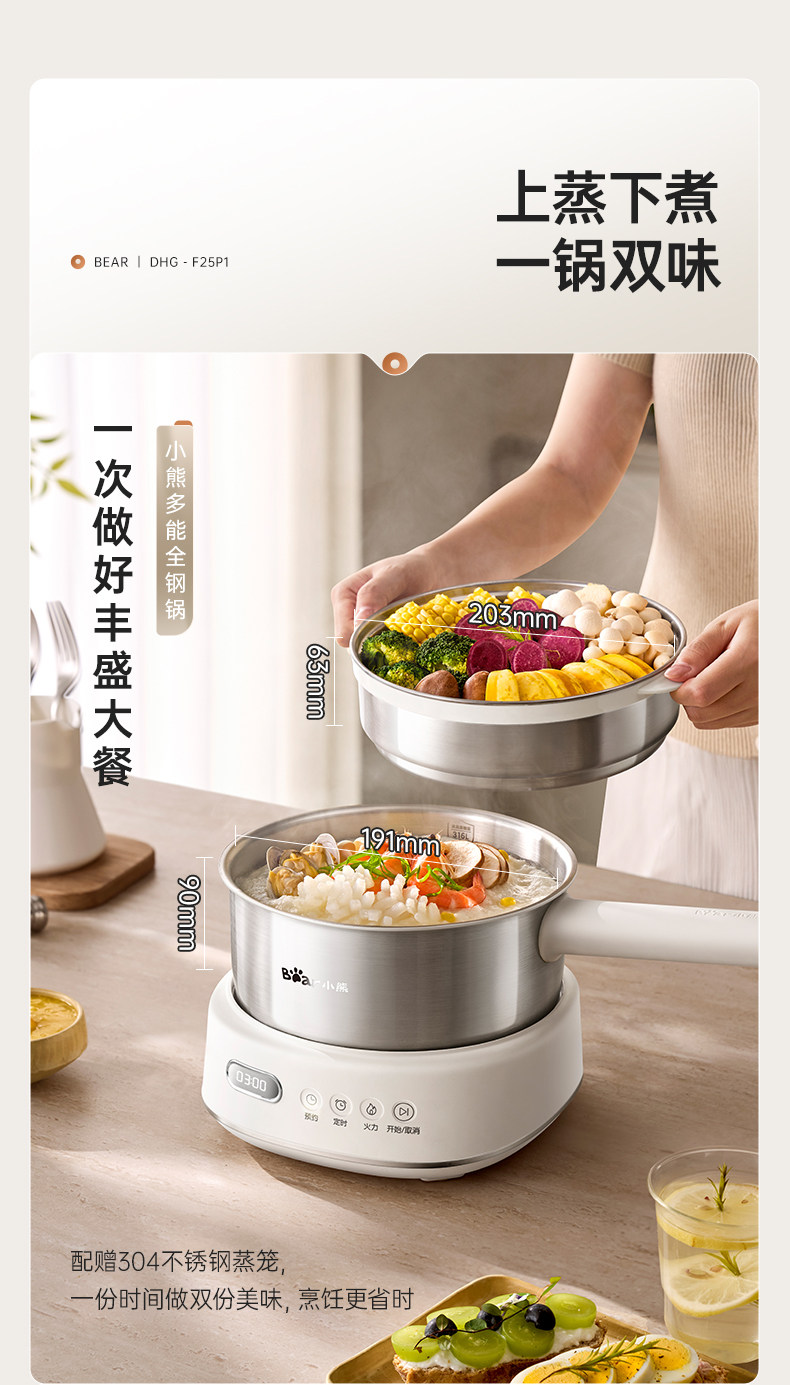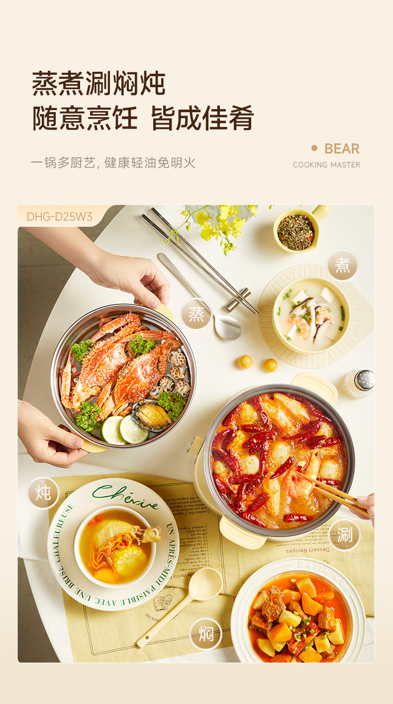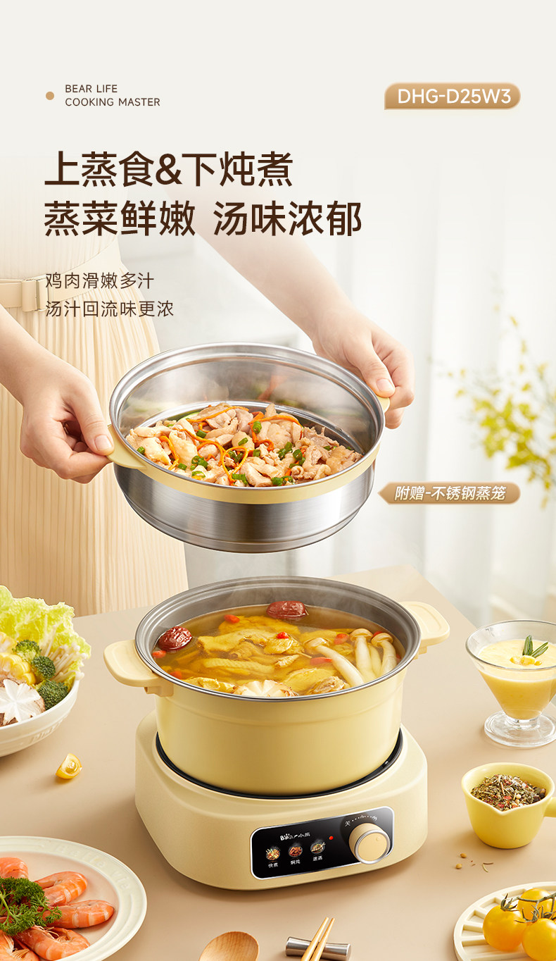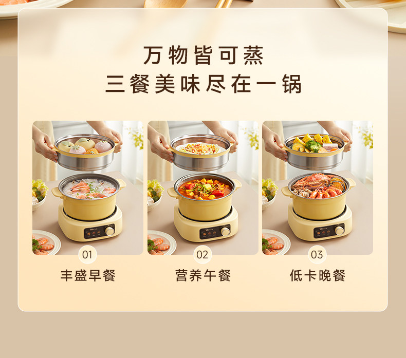 Bear Electric Steamer, Electric Cooking Pot, Multifunctional Household Steam Pot, Electric Hot Pot, Stainless Steel, Non-Coating, Breakfast Machine, Electric Pot