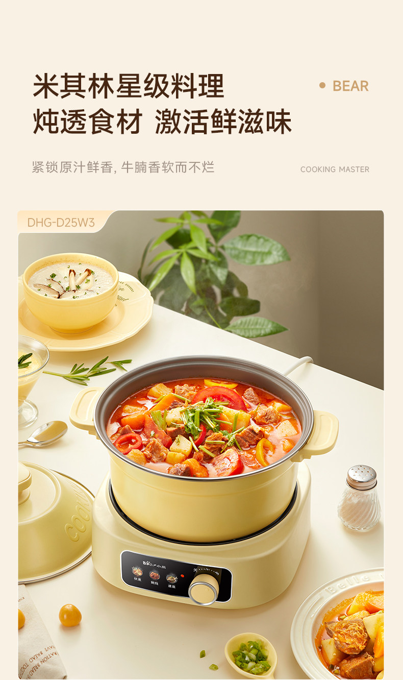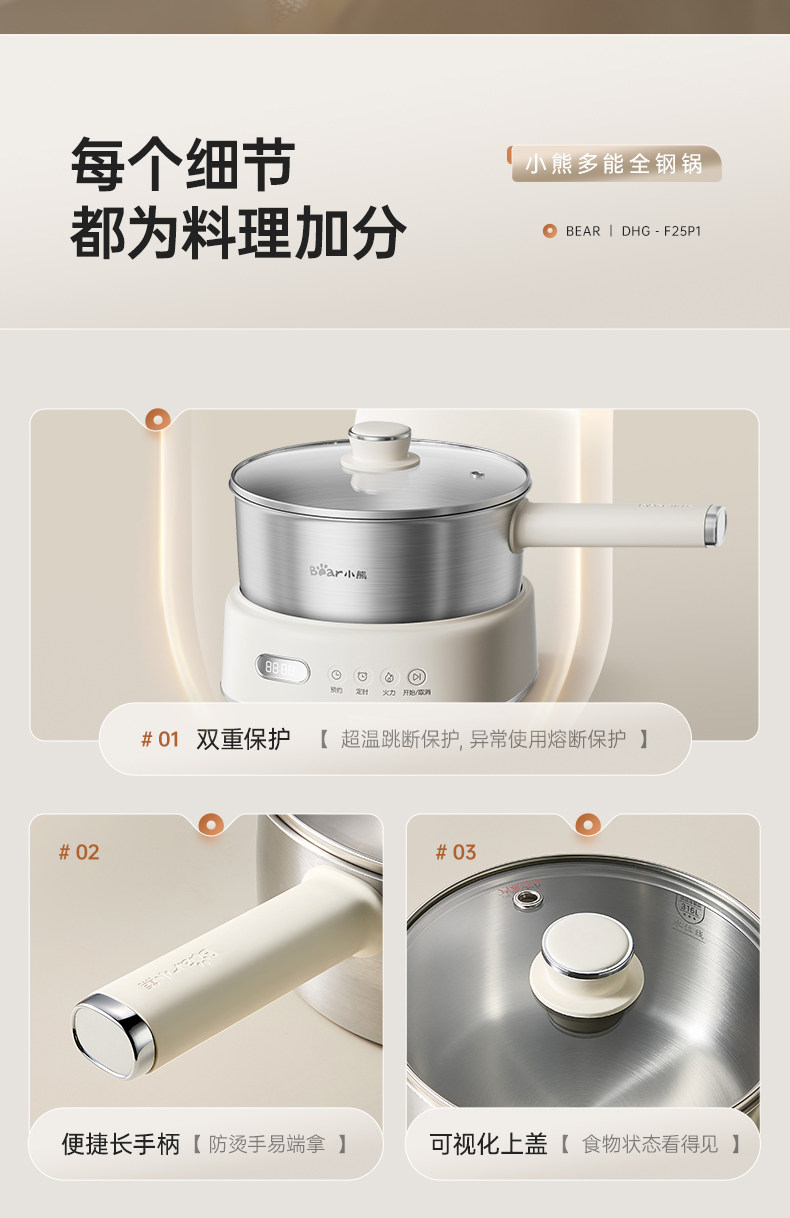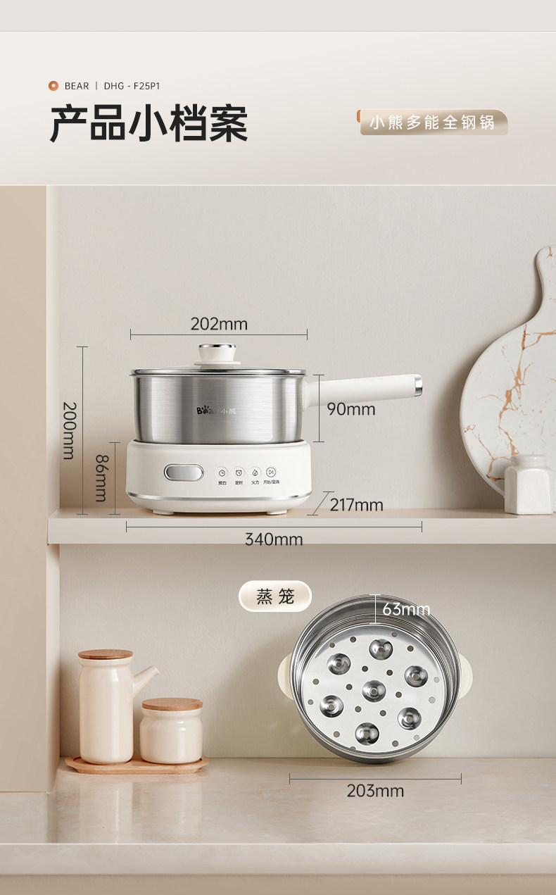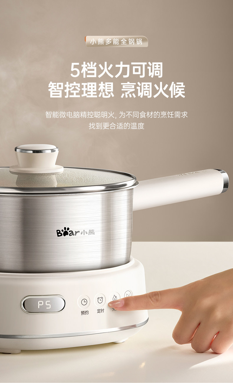 Bear Electric Steamer, Electric Cooking Pot, Multifunctional Household Steam Pot, Electric Hot Pot, Stainless Steel, Non-Coating, Breakfast Machine, Electric Pot