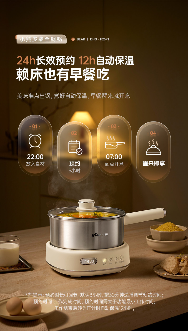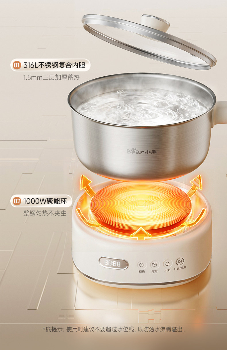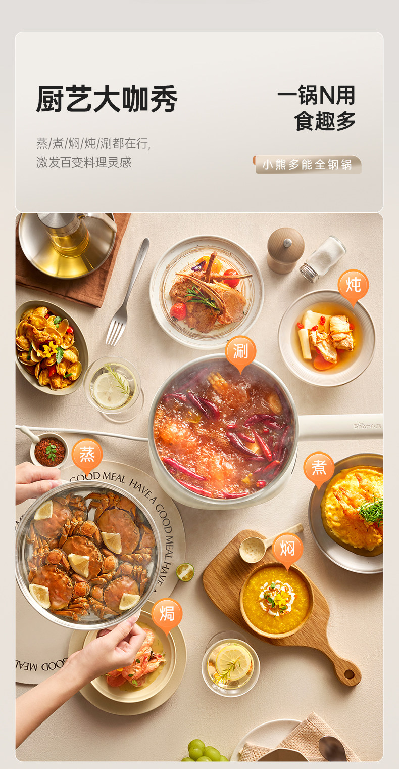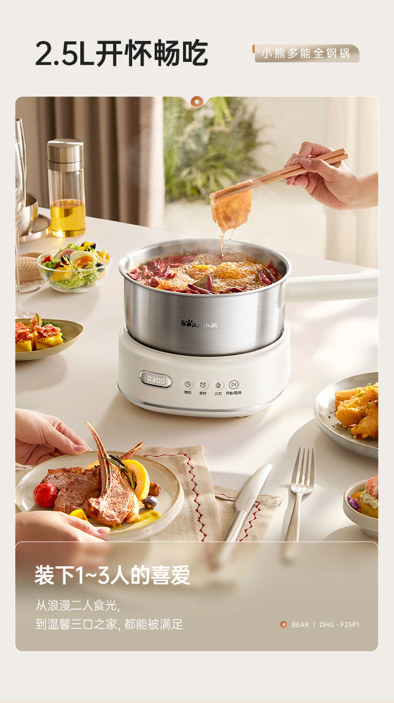 Bear Electric Steamer, Electric Cooking Pot, Multifunctional Household Steam Pot, Electric Hot Pot, Stainless Steel, Non-Coating, Breakfast Machine, Electric Pot