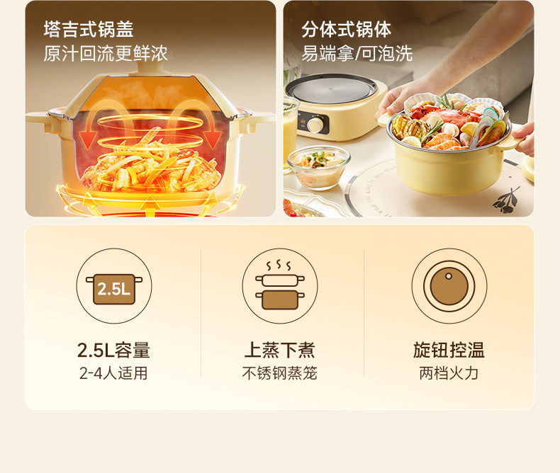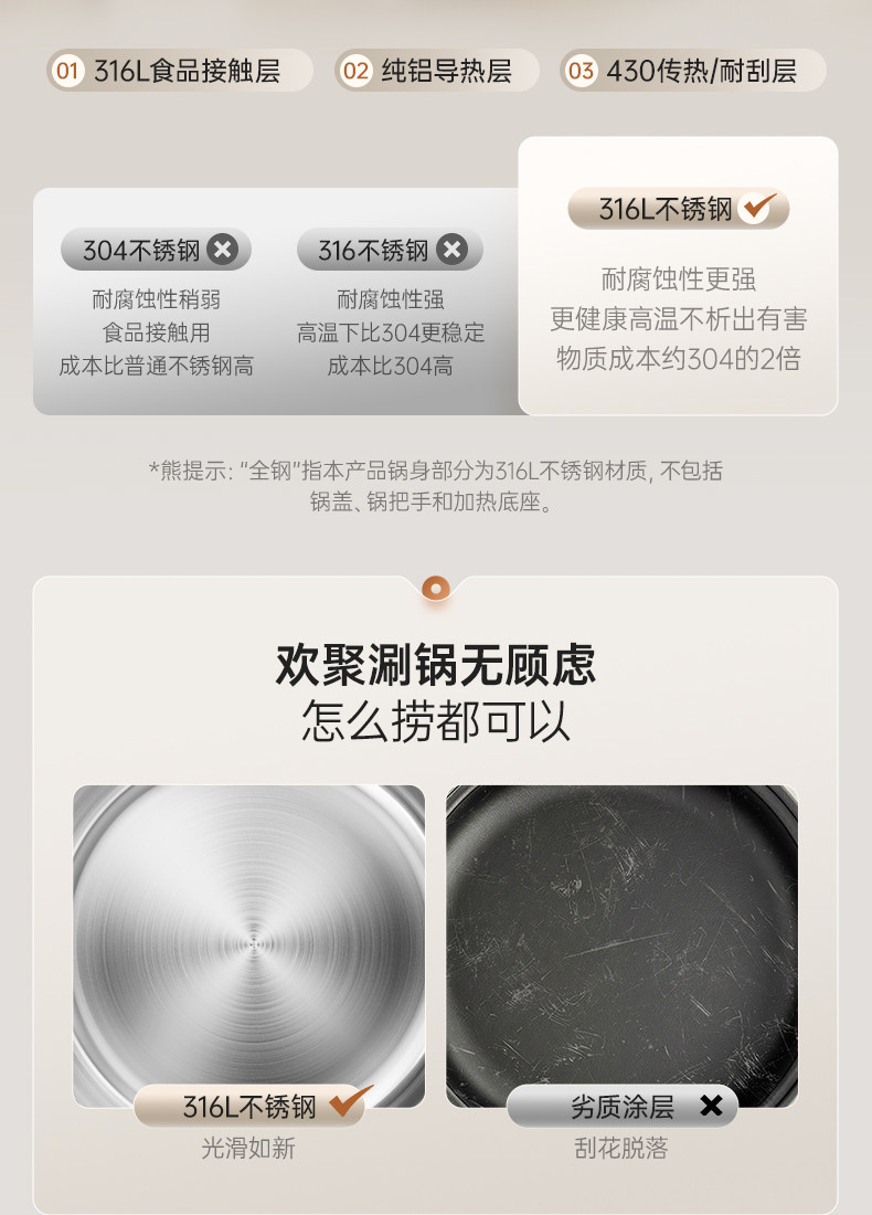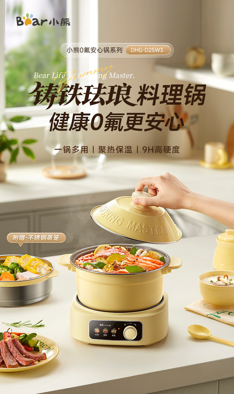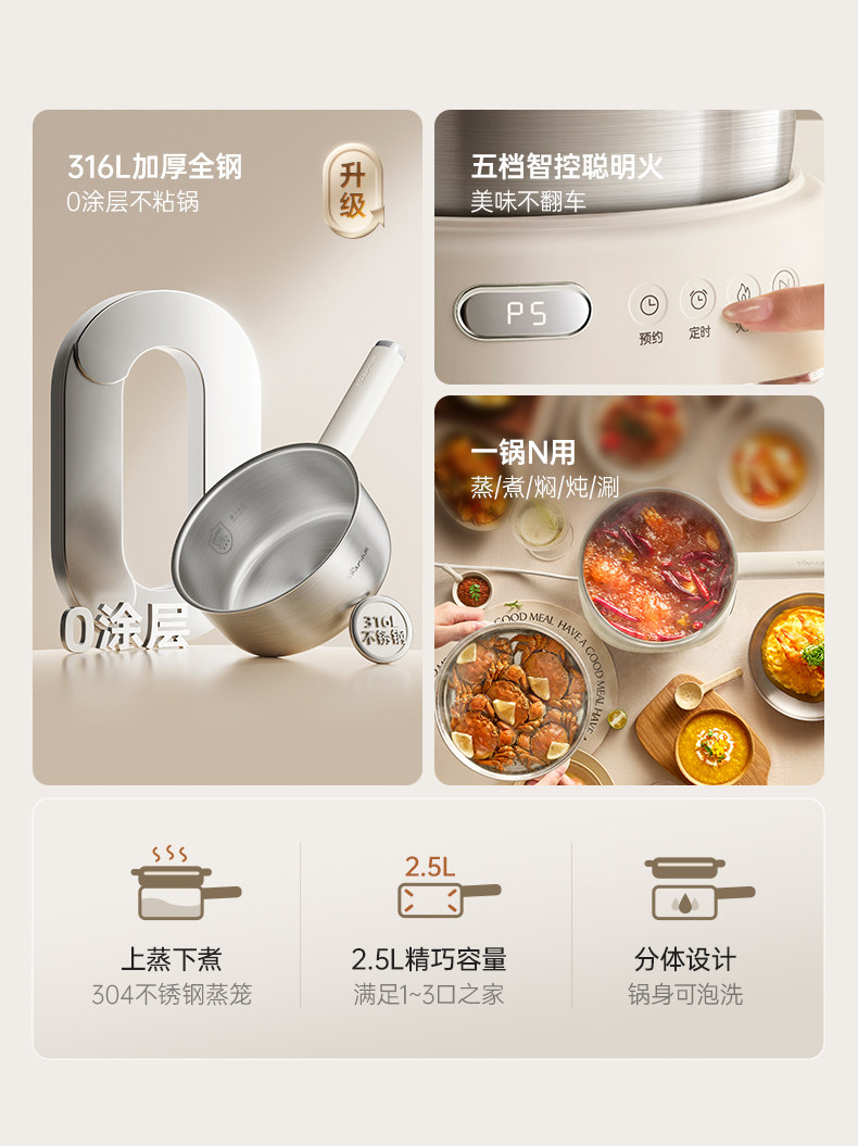 | Color Classification | 2.5L Upgraded 316L Stainless Steel Liner + 2.3L Stainless Steel Steamer,2.5L Enamel Liner + 2L Stainless Steel Steamer |