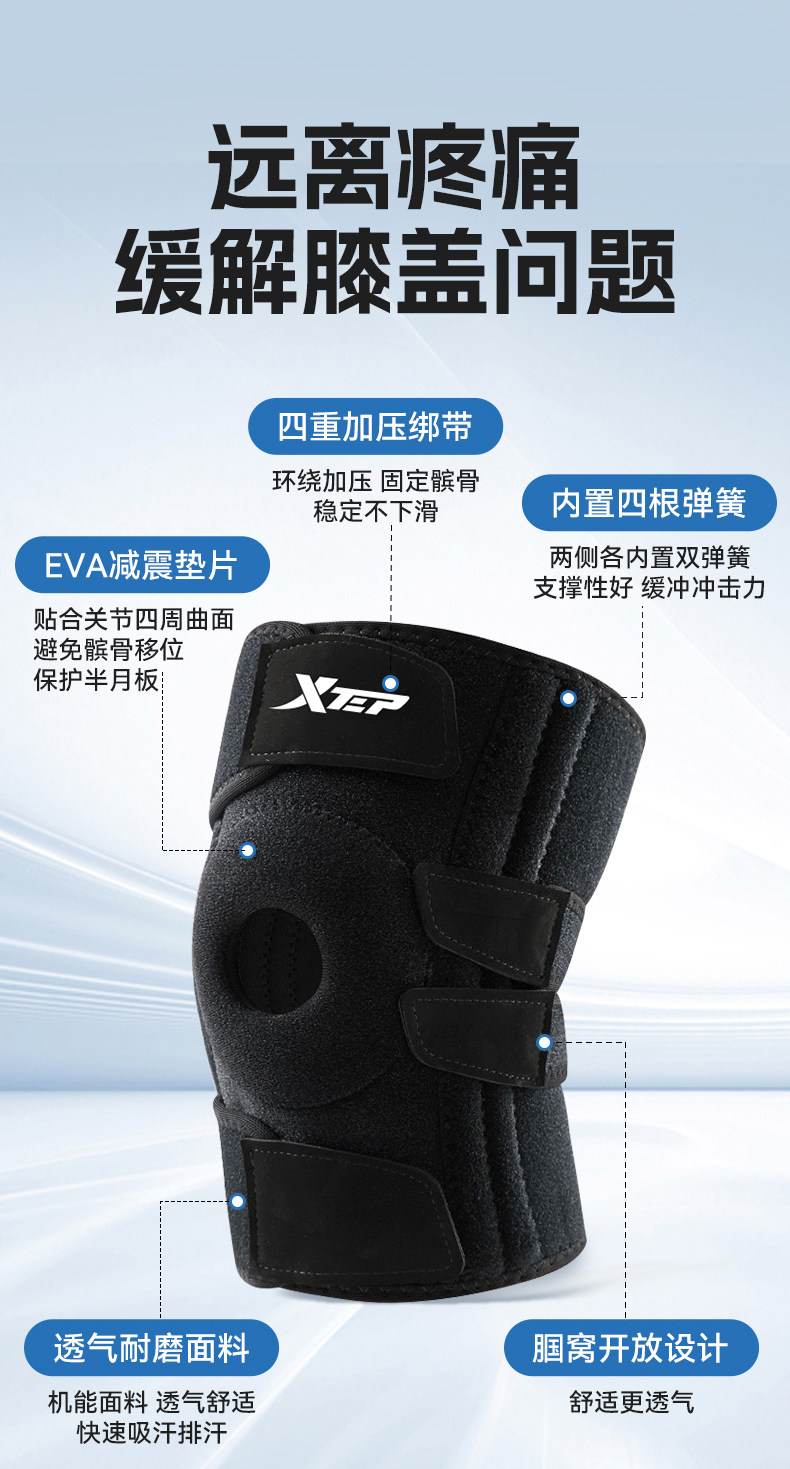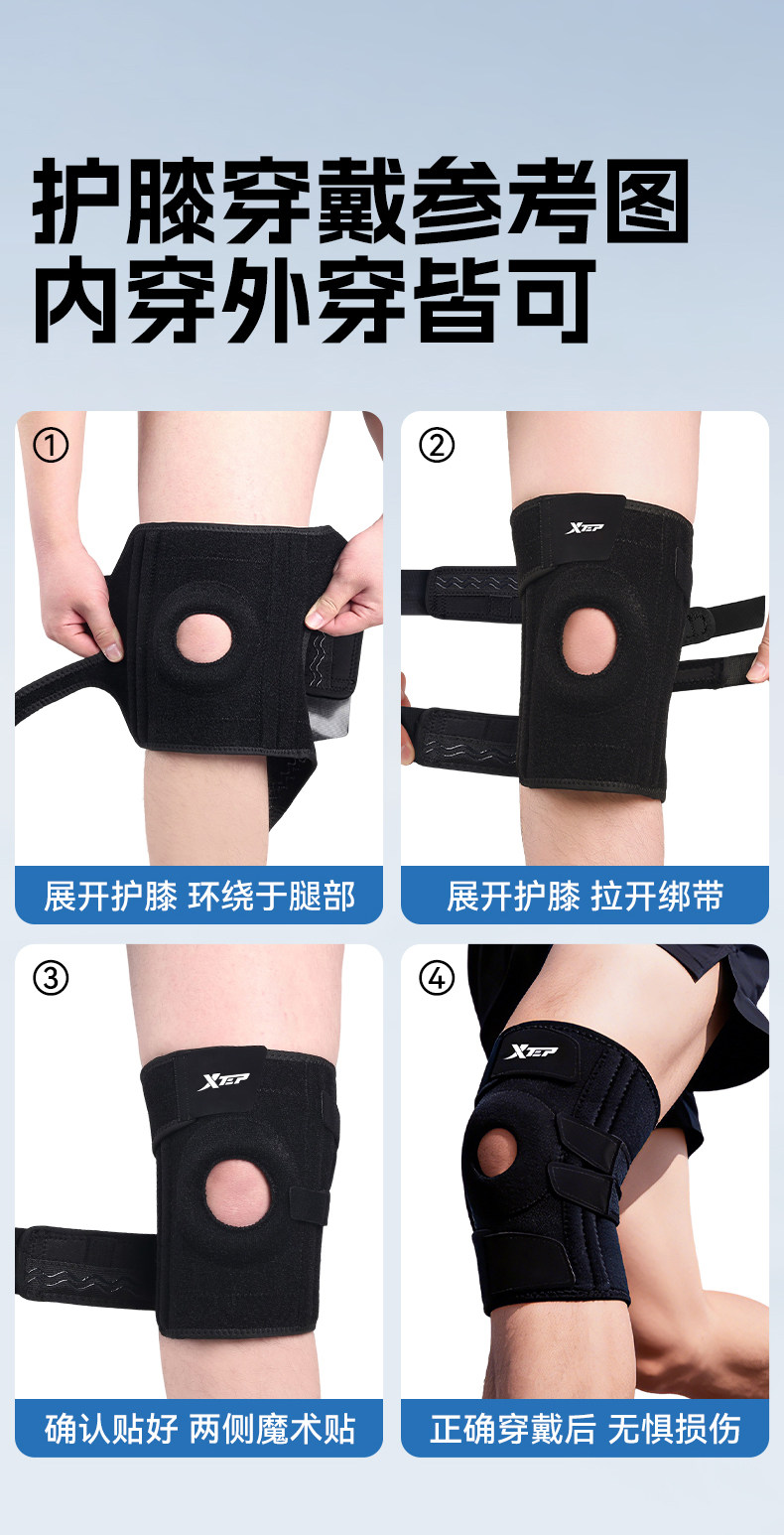 Xtep Knee Brace Patella Sports Mountaineering Meniscus Injury Basketball Running Unisex Knee Joint Protection Gear