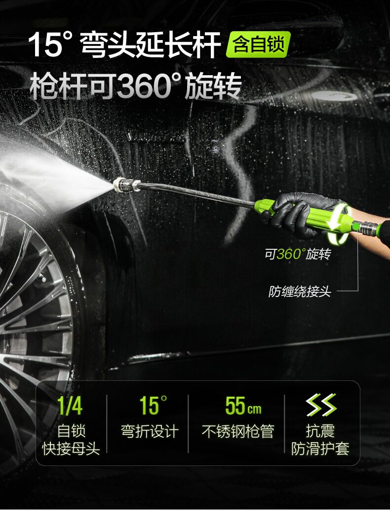 Greenfield 15-Degree Self-Locking Quick-Connect Extension Rod High-Pressure Tool Cleaning Car Machine Stainless Steel Universal Rotating Accessory