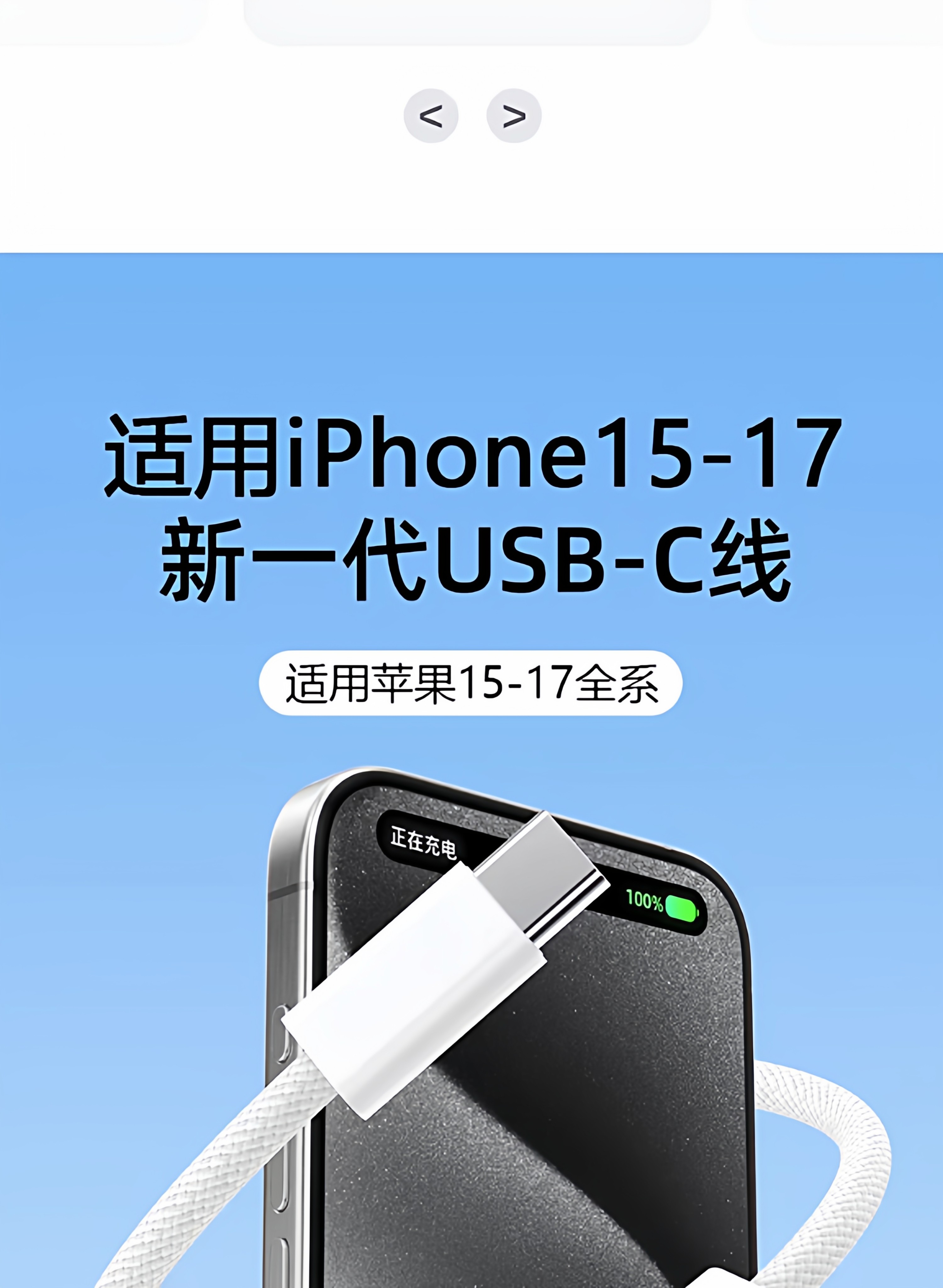 [Sf Express] Suitable for Official Dual-C Fast Charging Apple Braided Data Cable iPhone 17 Pro Max Charging Cable Apple 16 Original Cable 15 Dual Type-C Genuine Air Car-Mounted iPad Set Cable