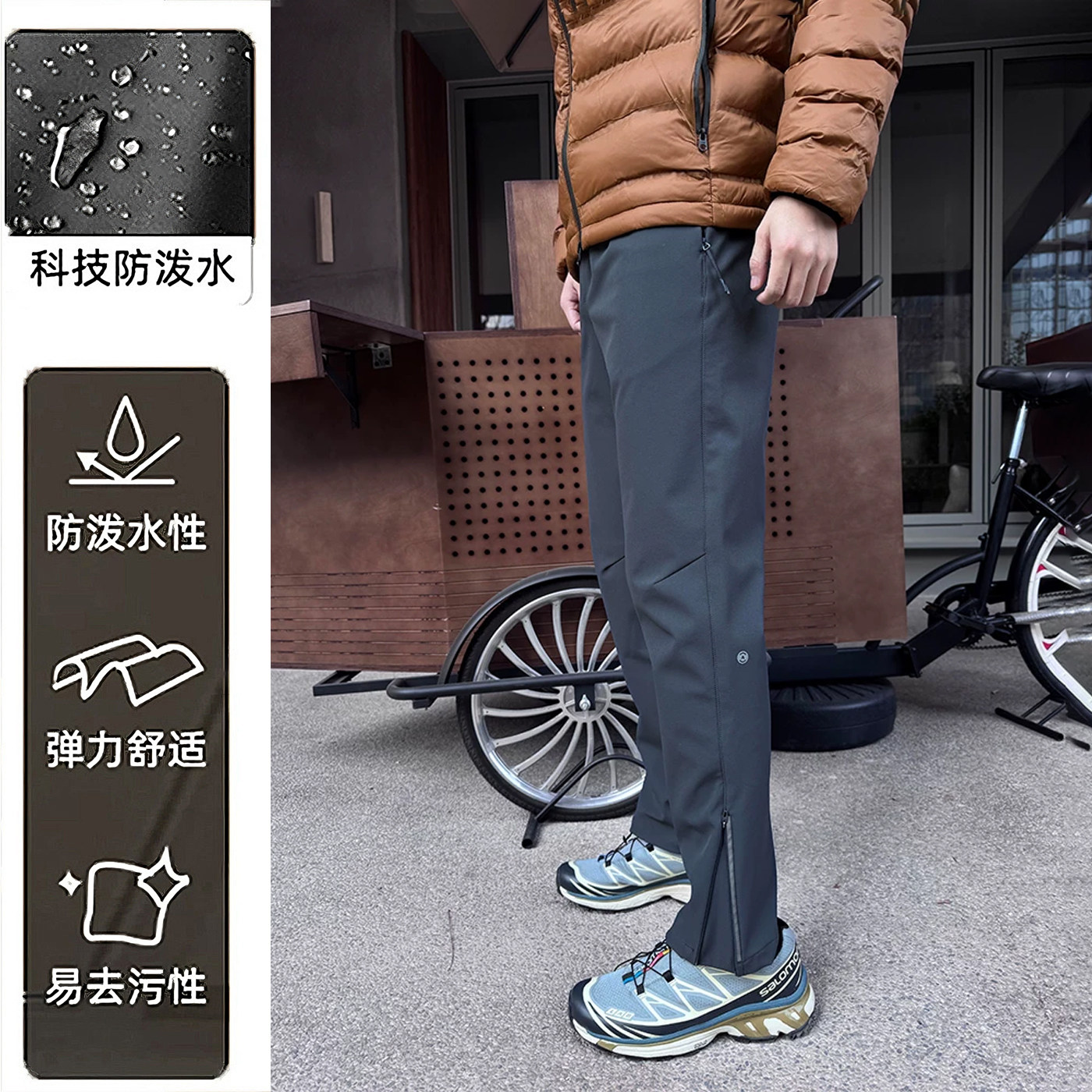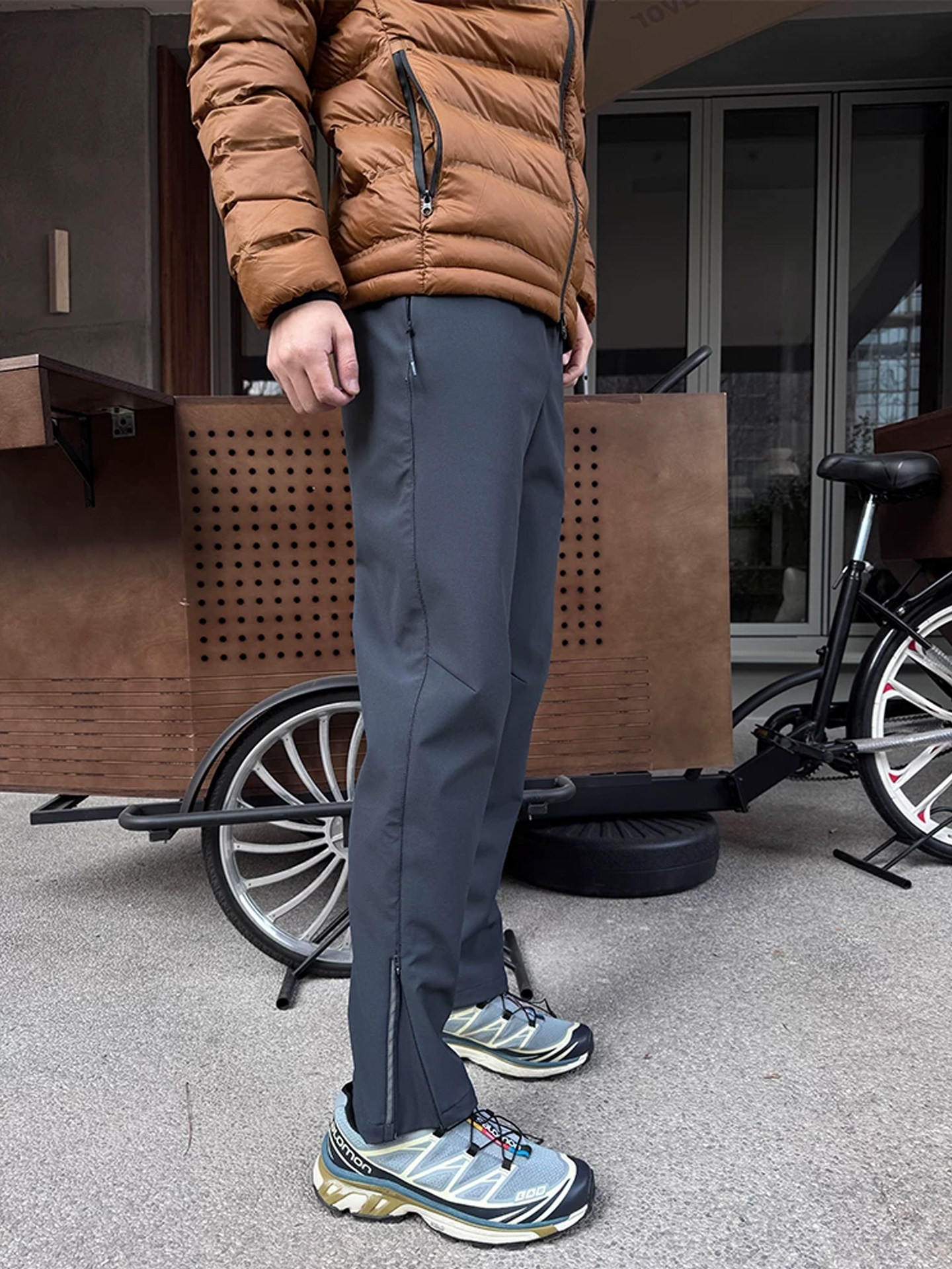 Side Zipper American-Style Softshell Pants for Men and Women, Autumn and Winter Fleece-Lined Stretch Work Pants, Outdoor Sports Hiking Pants