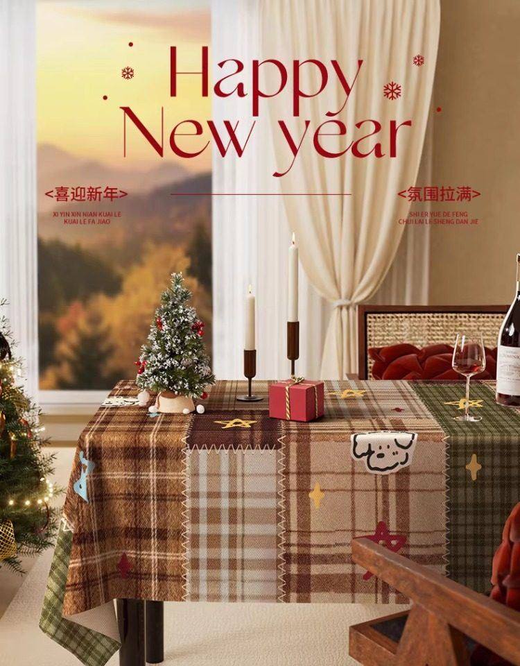 2026 New Year Atmosphere Linen-Like Tablecloth, No-Wash, Waterproof, Oil-Proof, Heat-Resistant, Holiday Decoration Tablecloth, Coffee Table Cloth