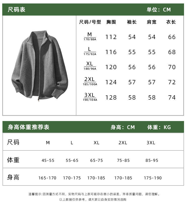 Gray Turtleneck Cardigan Sweater for Men and Women, Autumn and Winter Base Layer, Double Zipper Knitwear, Lazy and High-End Couple's Coat