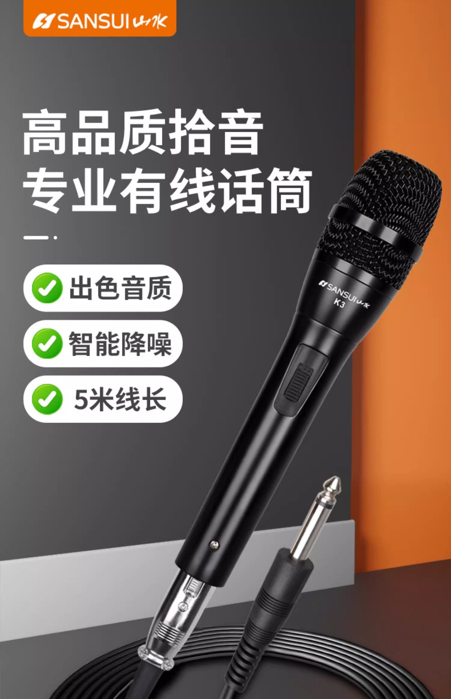 Shanshui Metal Wired Dynamic Microphone Professional Home Ktv Singing Stage Dedicated Microphone with Audio Connection