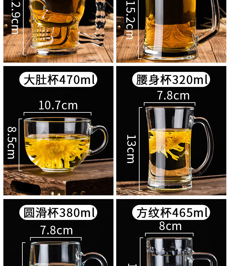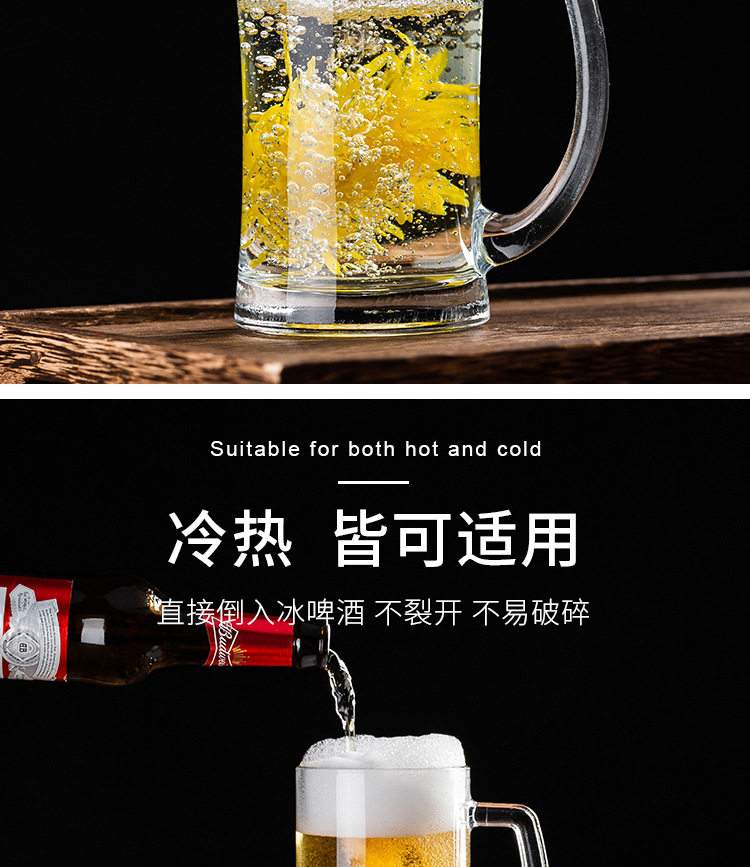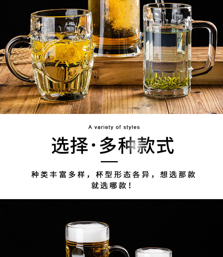 Craft Beer Mug for Home Use, Large Capacity Draft Beer Cup, 500ml Glass Large Hero Mug, Tea Cup with Handle