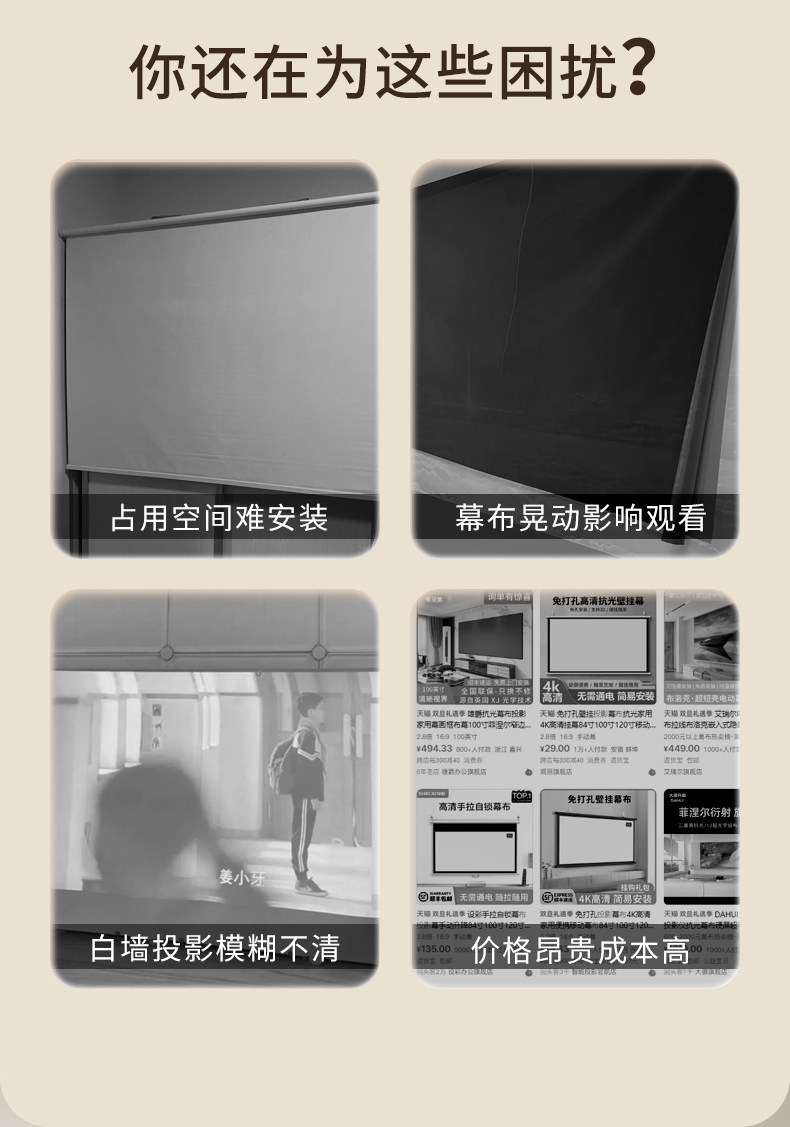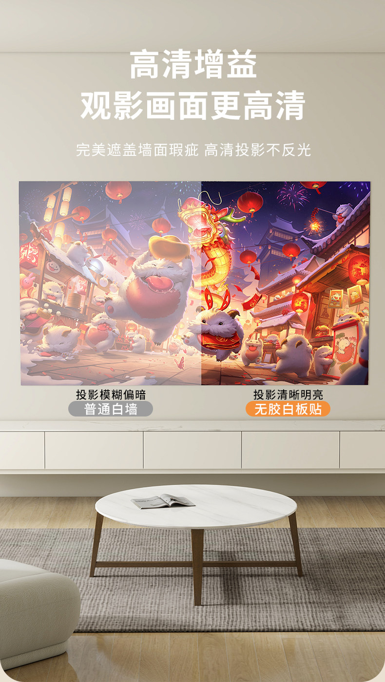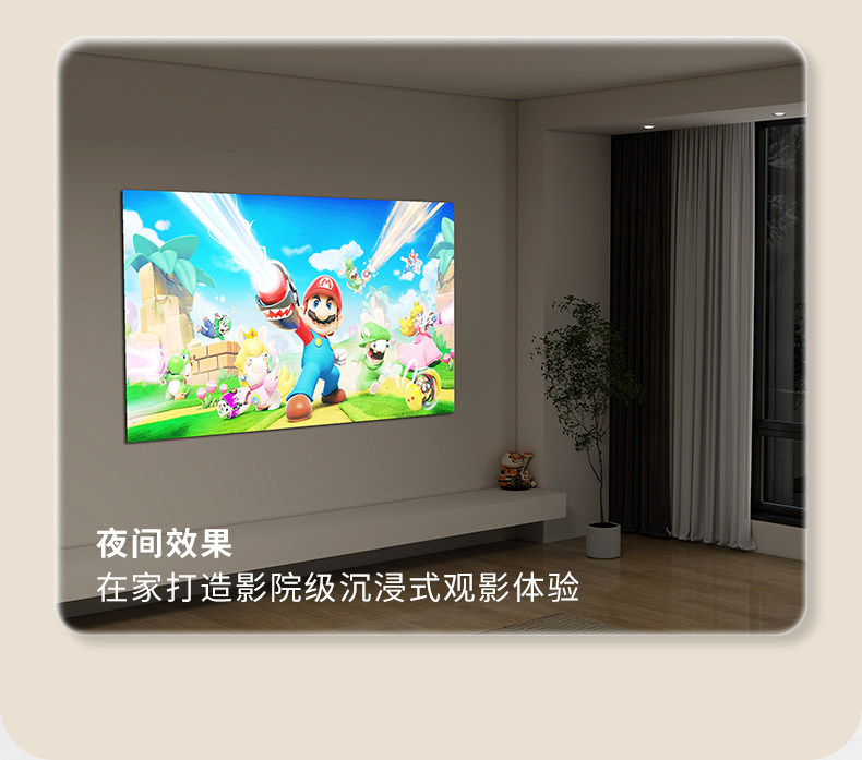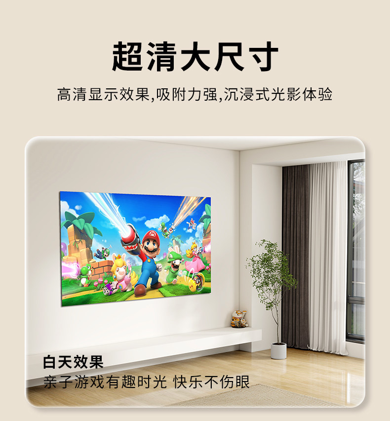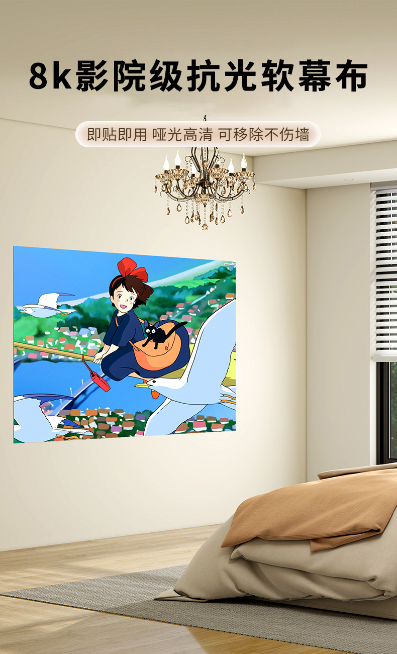 8K Anti-Light Movie Screen for Bedroom Tv, Daytime Direct Projection, Ultra-High Definition Home Projector, No Drilling Required