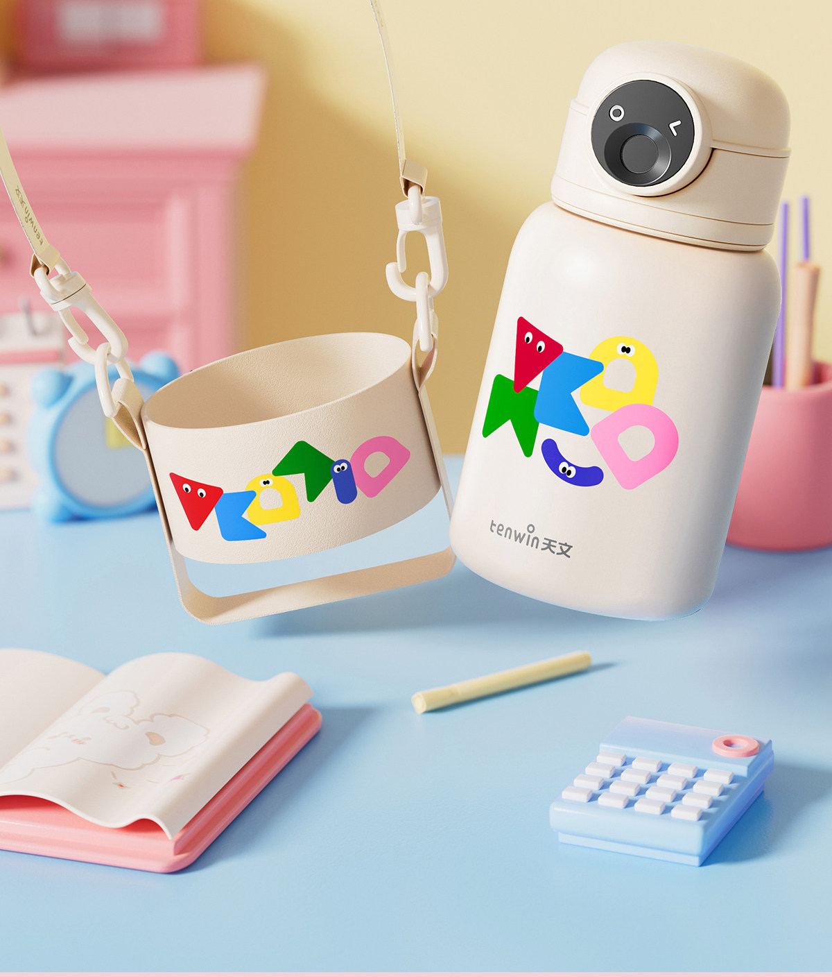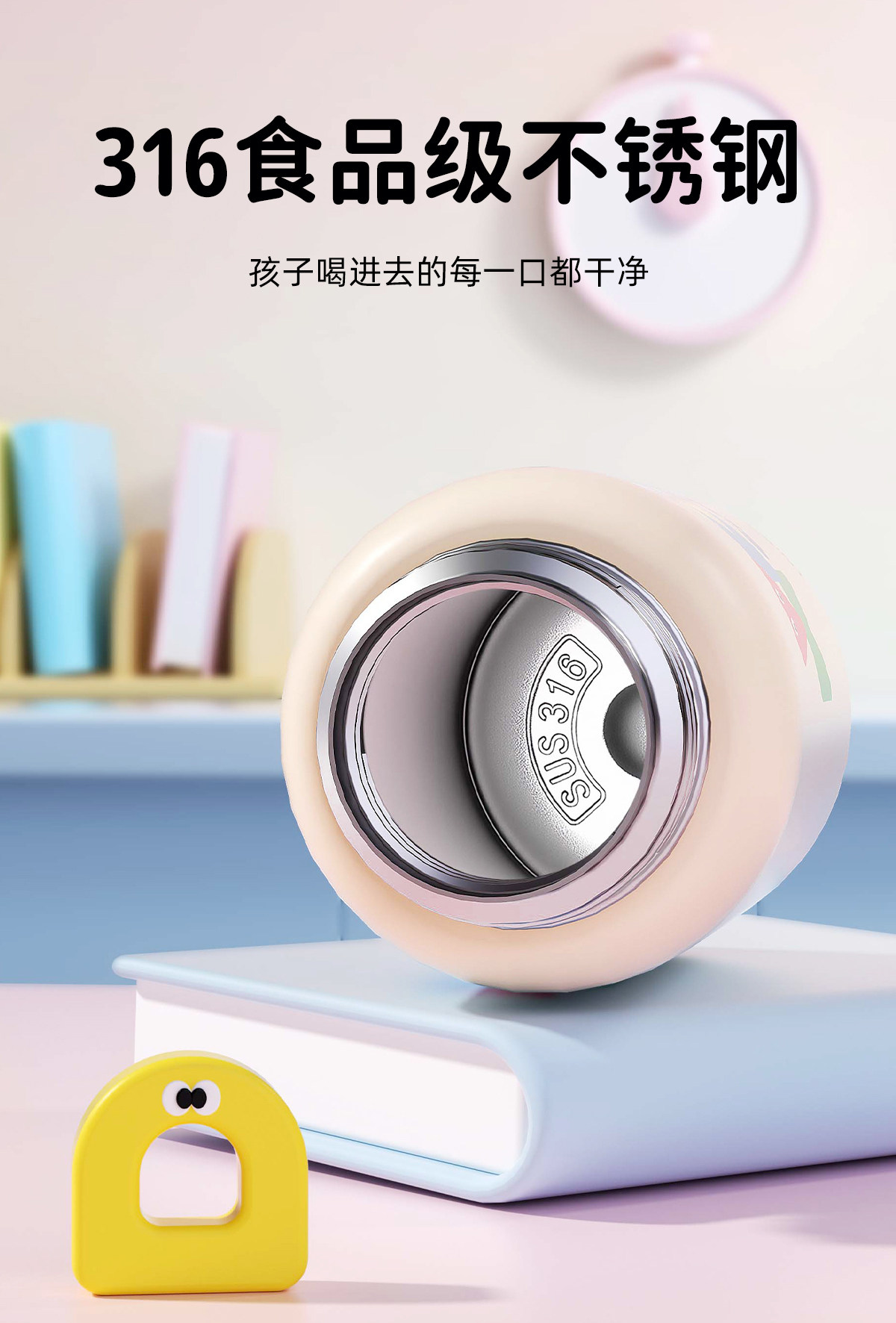 Astronomy-Themed Children's Fingerprint Insulated Cup, Student Straw Cup, Stainless Steel Strap, Suitable for School and Kindergarten, Large Capacity