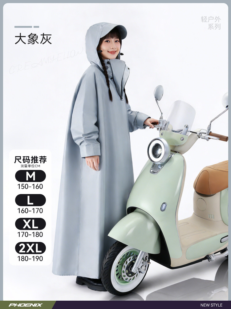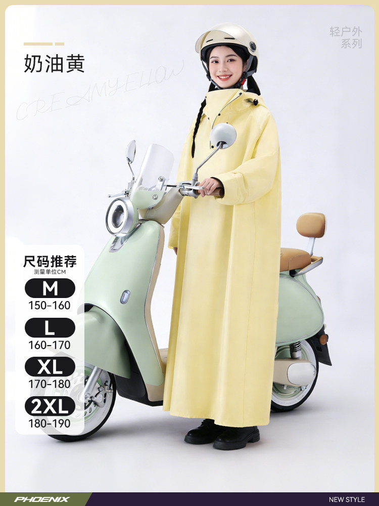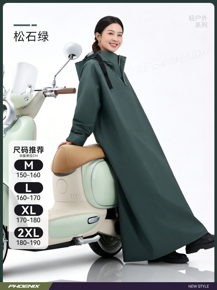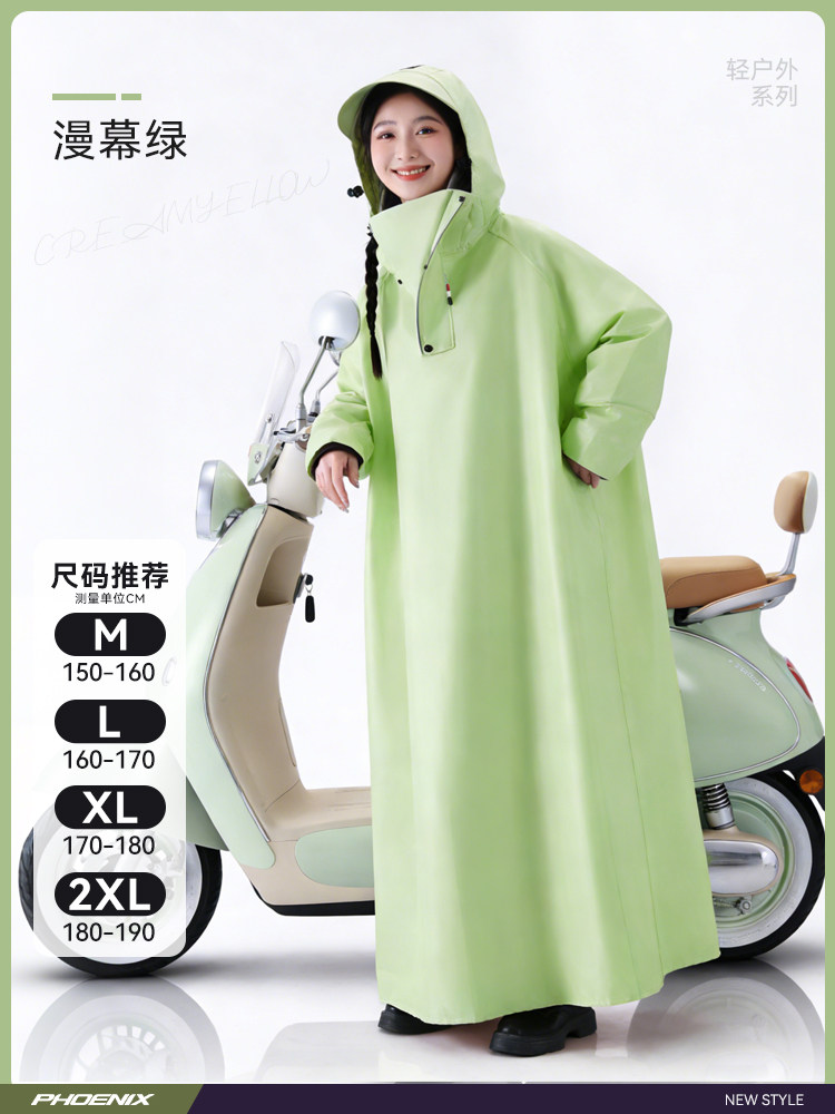 Phoenix Raincoat for Electric Scooters, Extra Large and Thick, Long Style, Full-Body Rain Protection, Single or Double Rider, Women's Cycling Rain Poncho