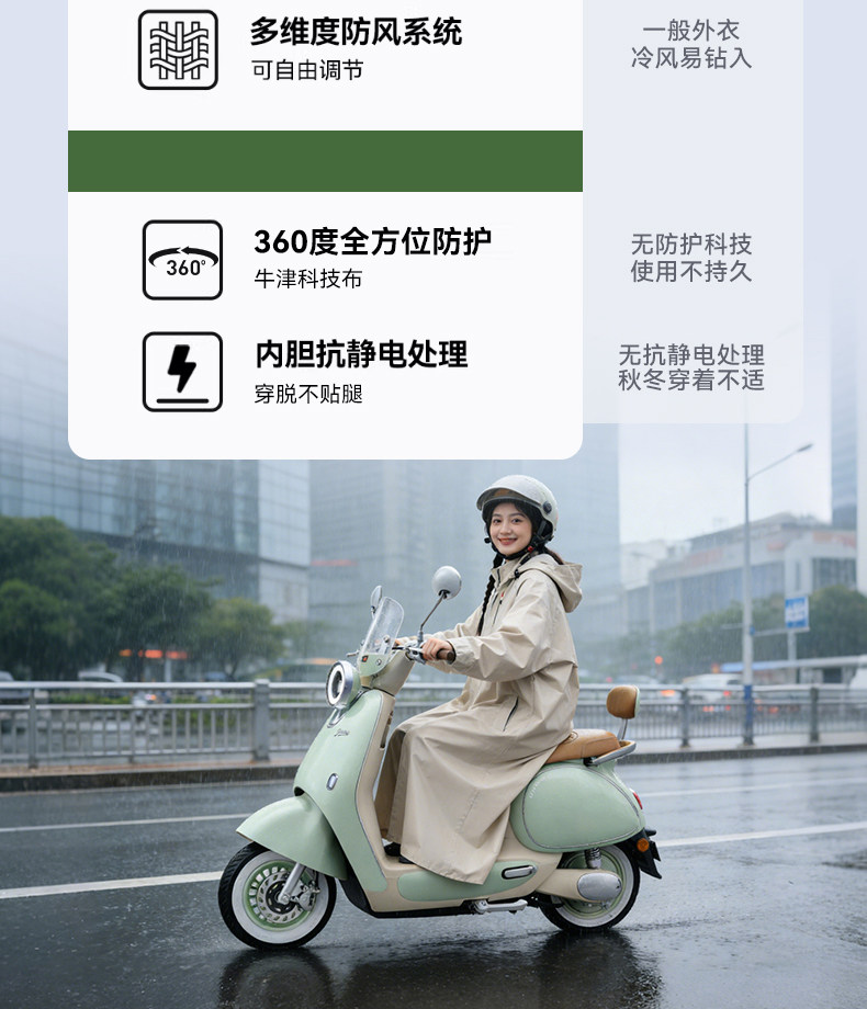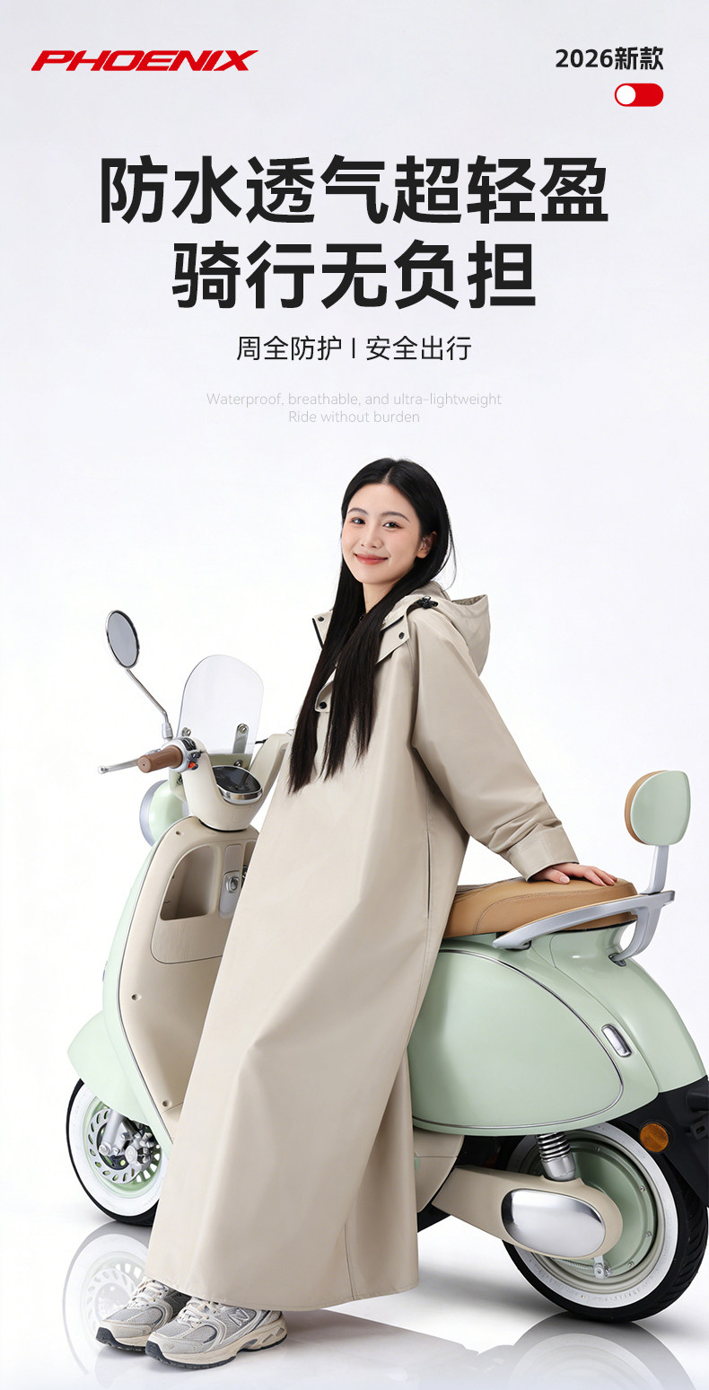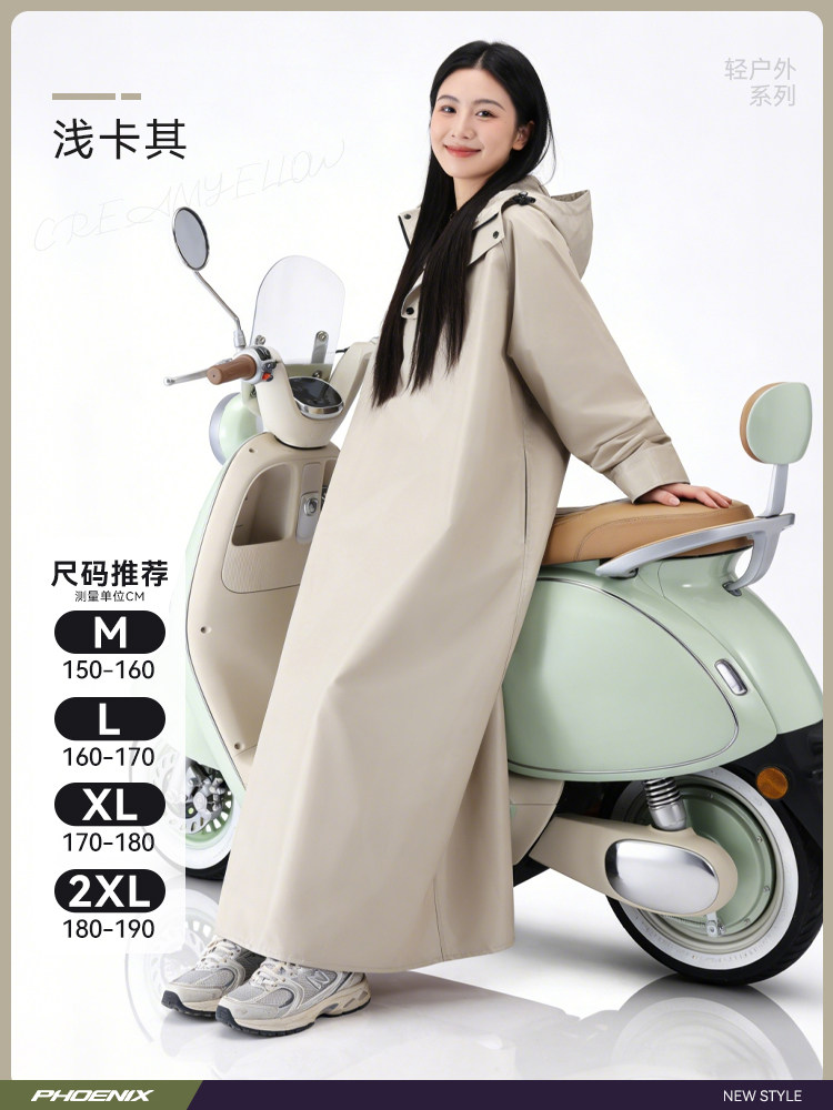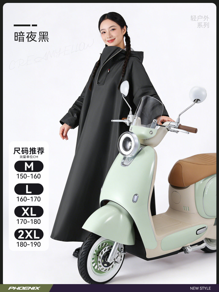 Phoenix Raincoat for Electric Scooters, Extra Large and Thick, Long Style, Full-Body Rain Protection, Single or Double Rider, Women's Cycling Rain Poncho
