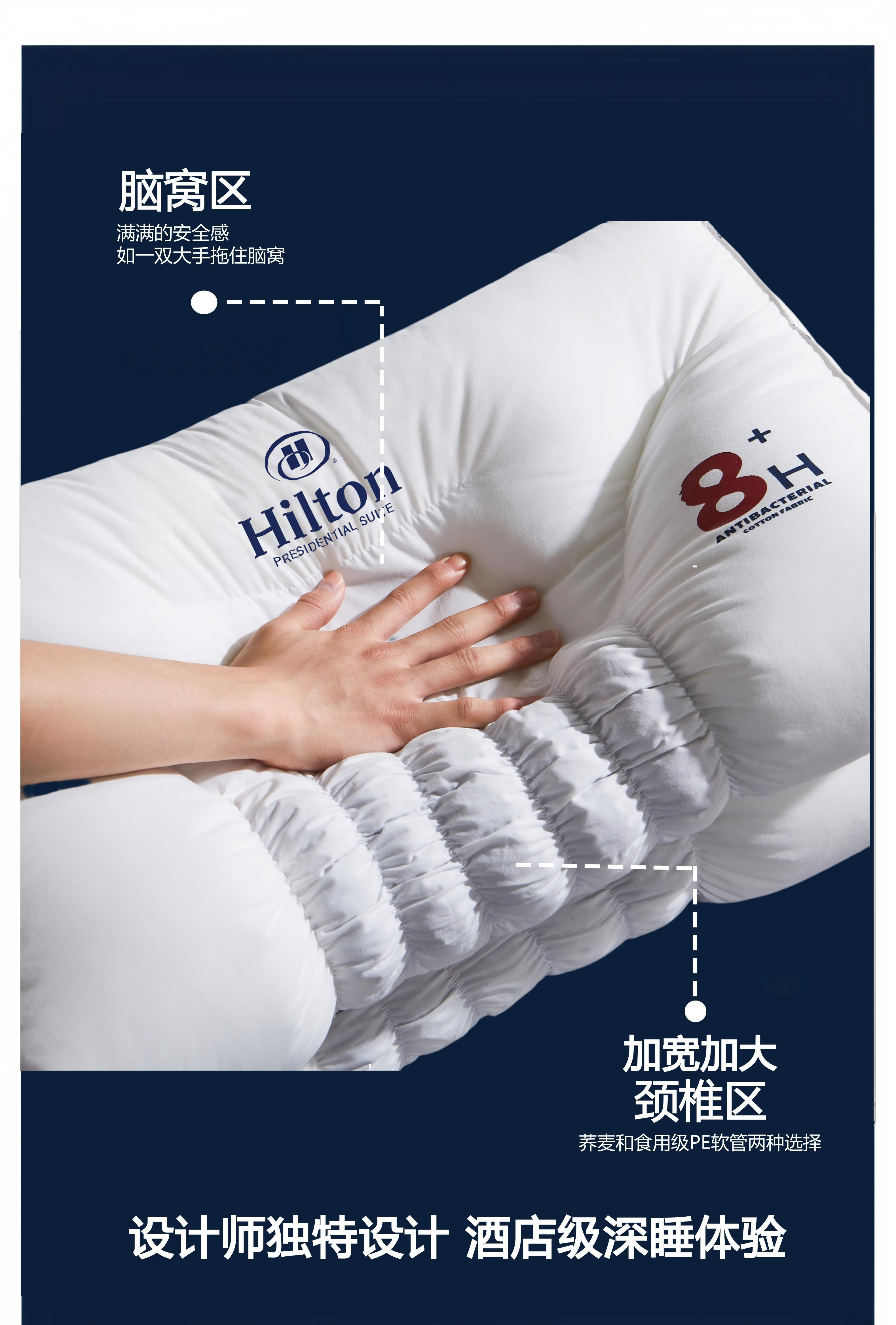 Hilton Pillow for Cervical Spine Protection and Sleep Aid, Five-Star Hotel Exclusive Memory Foam Buckwheat Pillow Core, a Pair for Adult Men