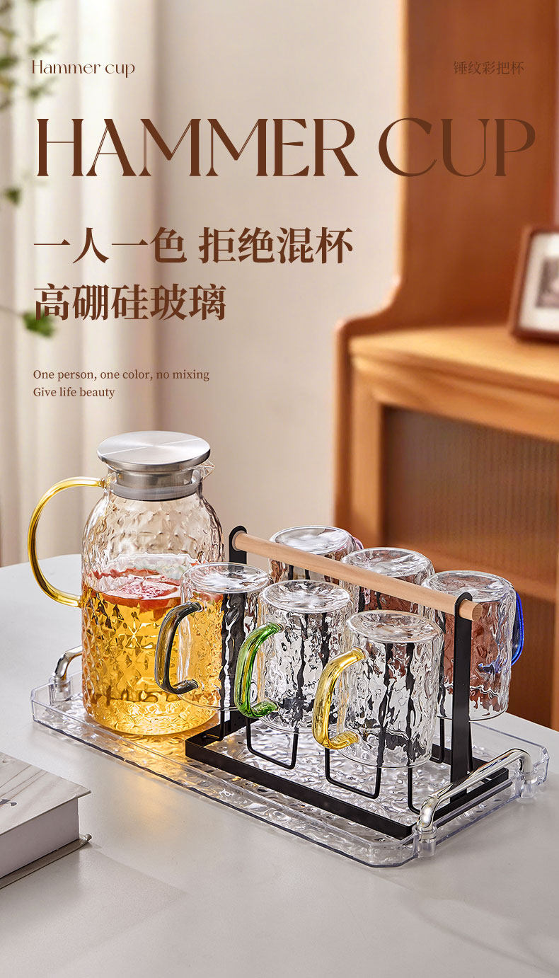 Hammered Glass Water Cup Set with a High-End Feel for Home Use, Suitable for Cold Water, Tea, Juice, Beer, and Coffee