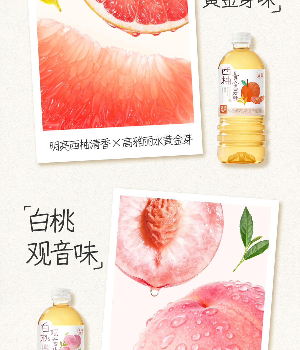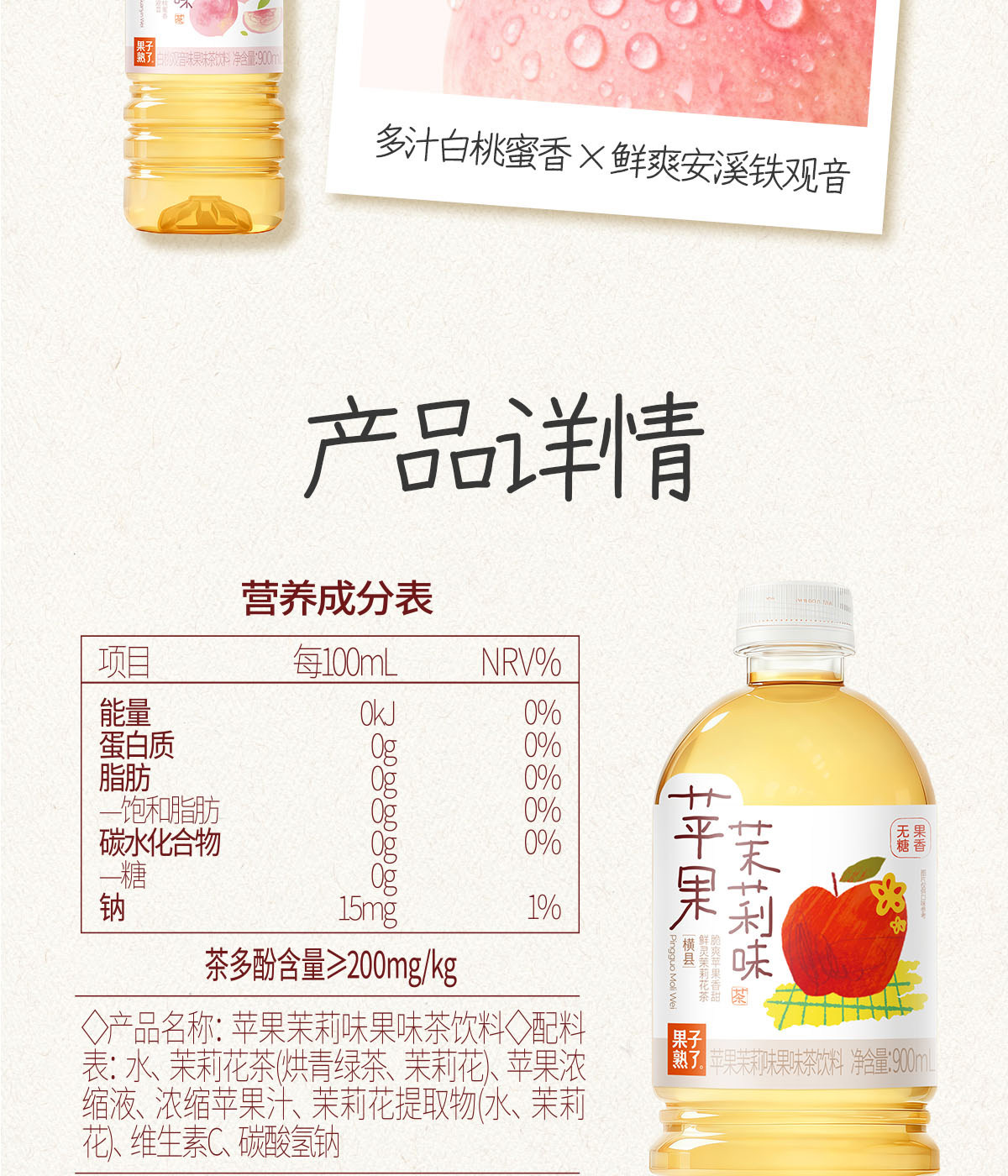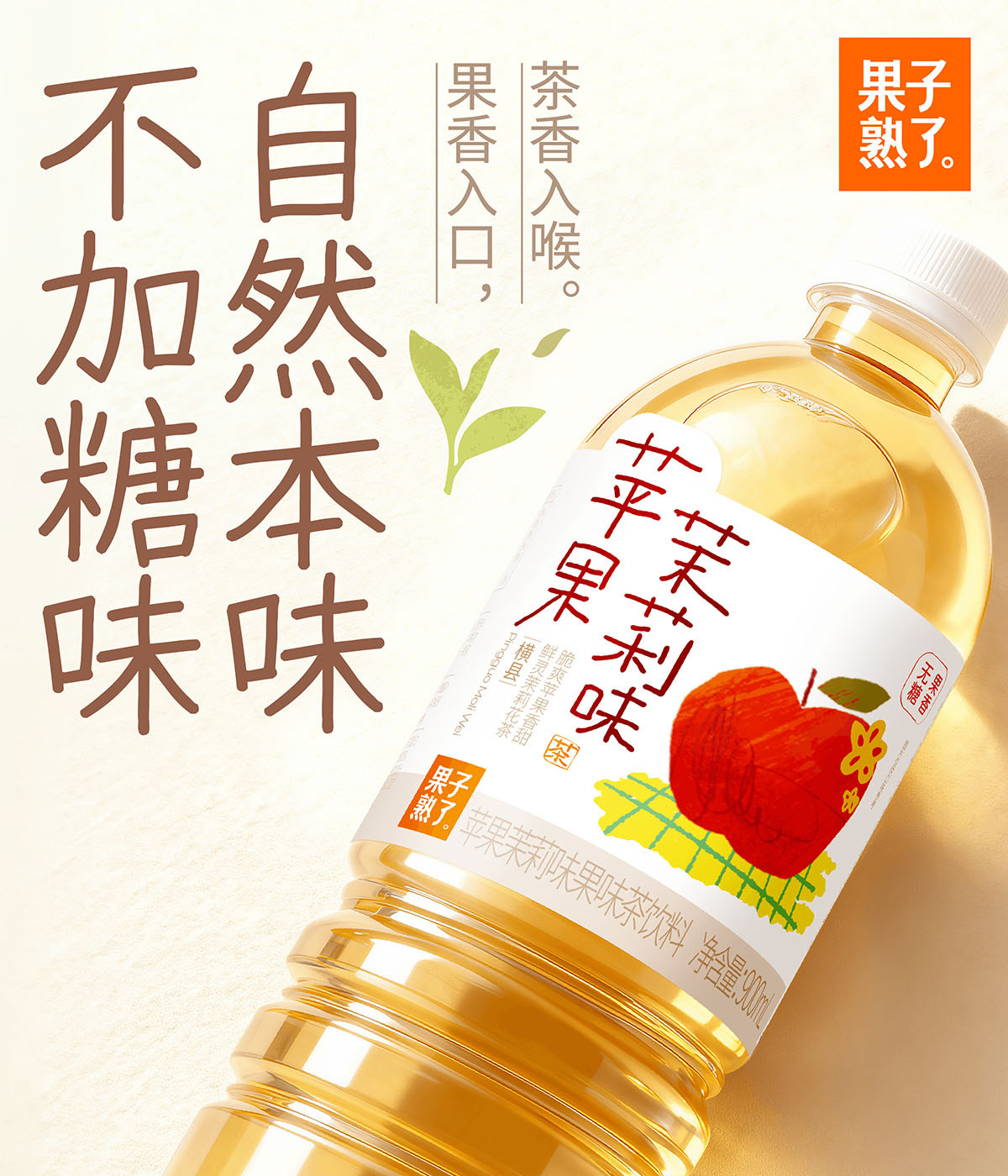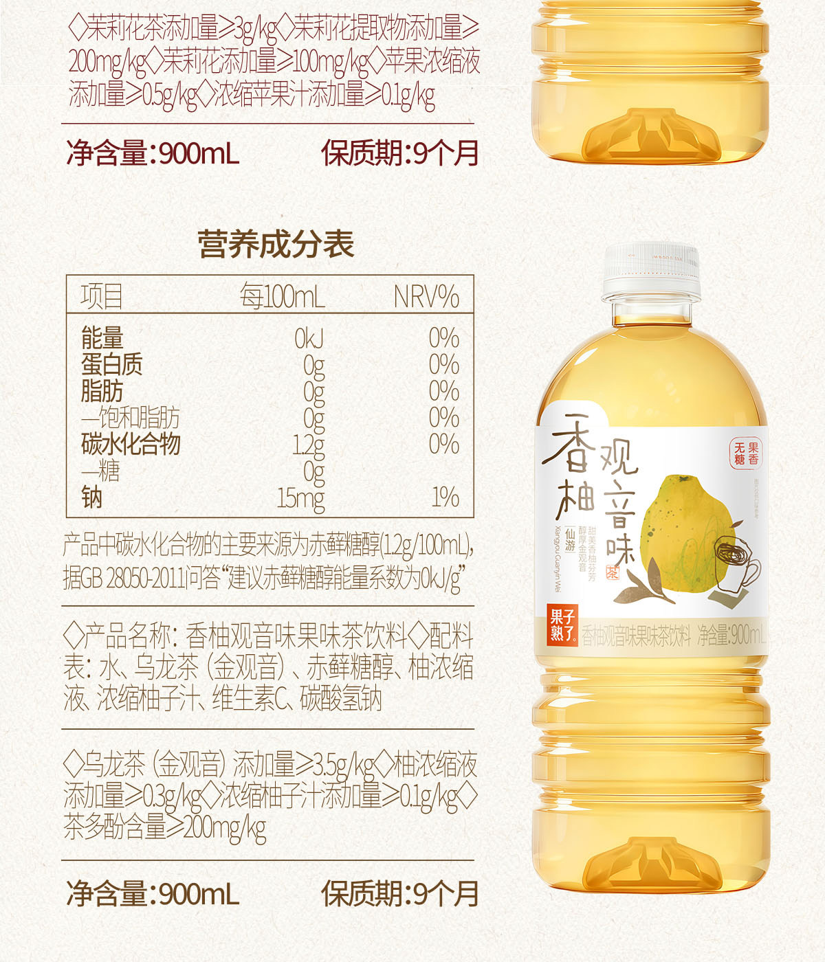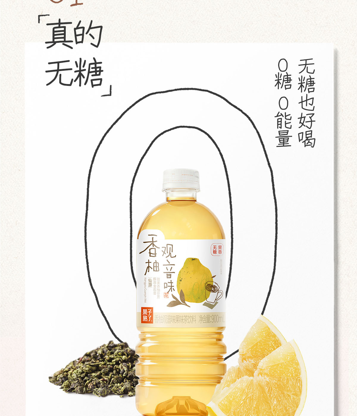 Fruit Is Ripe, New Product, Sugar-Free Flavored Tea, Apple, Jasmine, Pomelo, Guanyin White Peach, Guanyin 900ml Drink