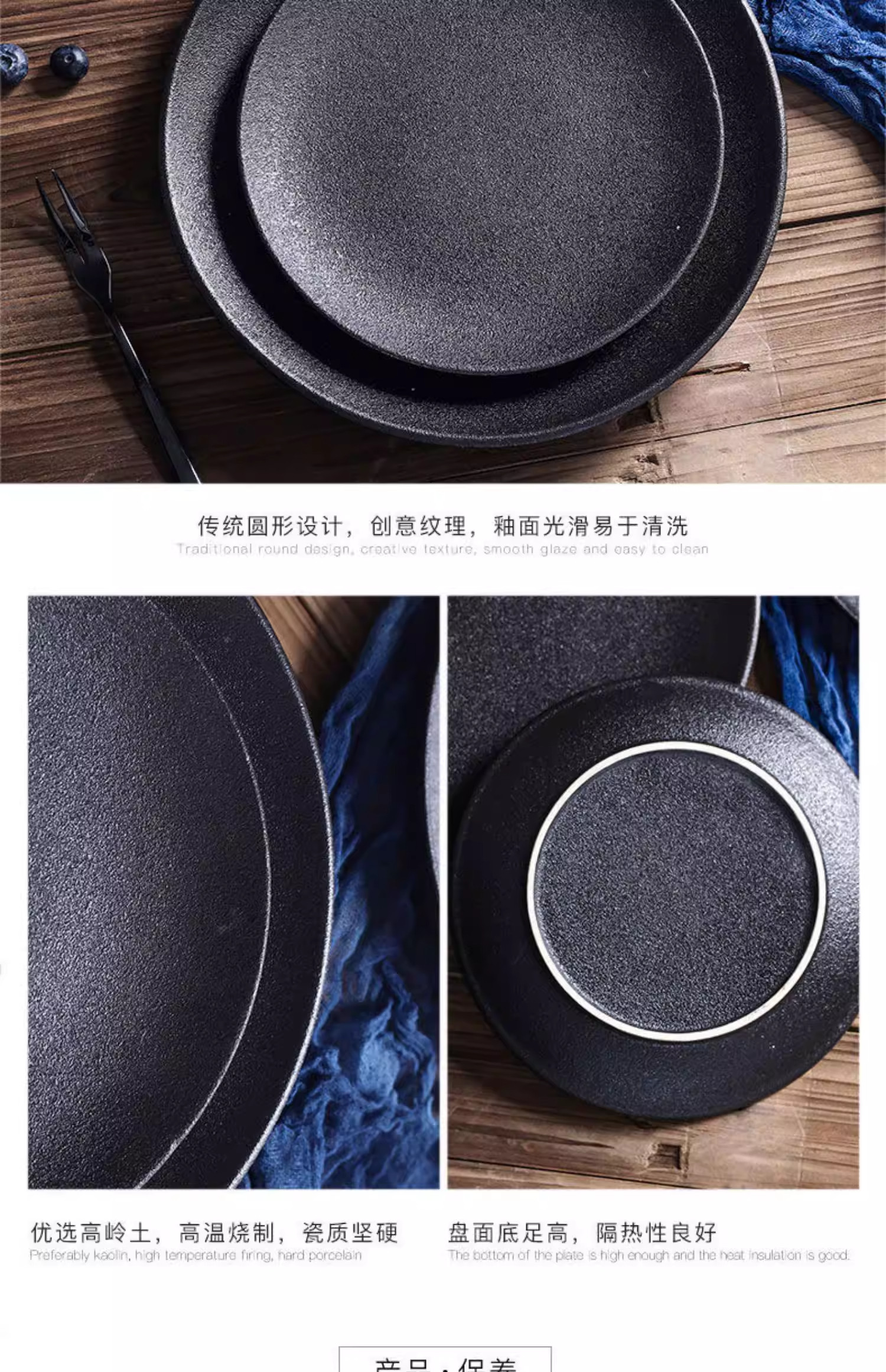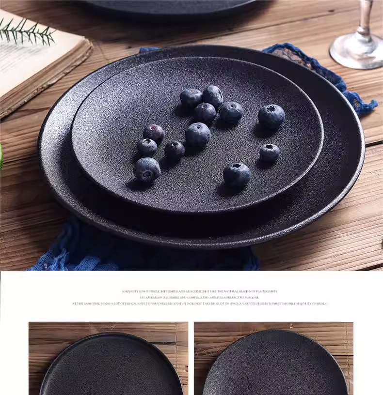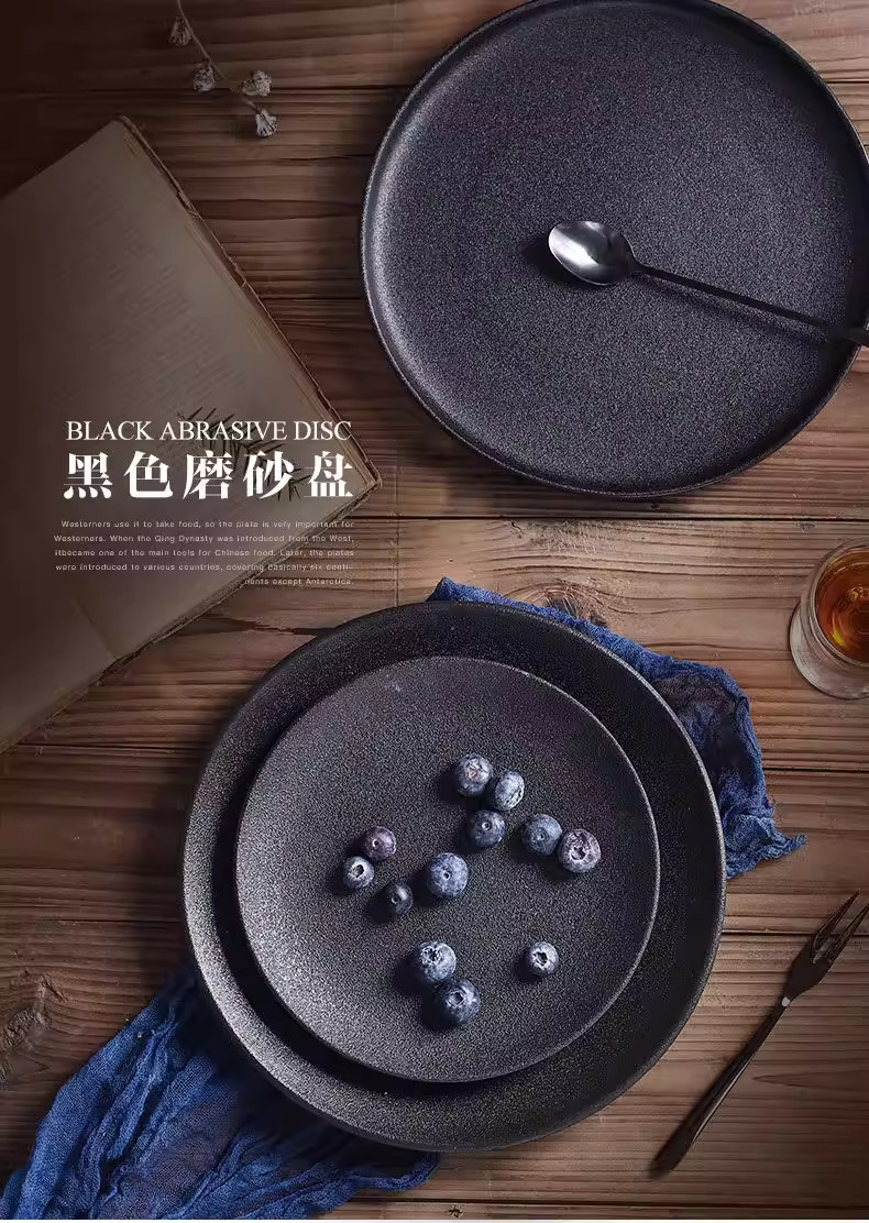 Retro Simple Ceramic Tableware Steak Plate Frosted Salad Plate Fruit Plate High-End Western Food Plate Shallow Plate Round Plate