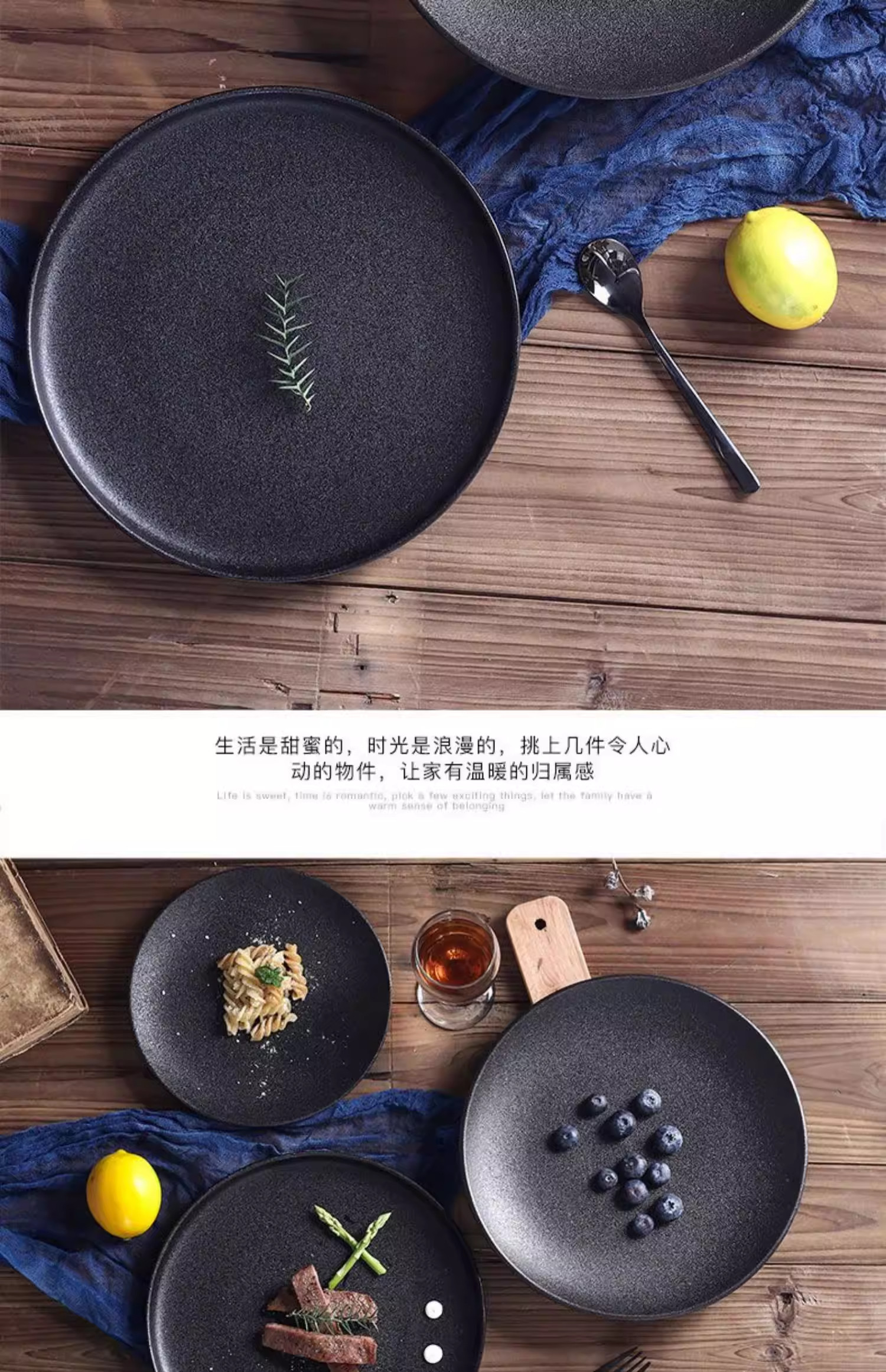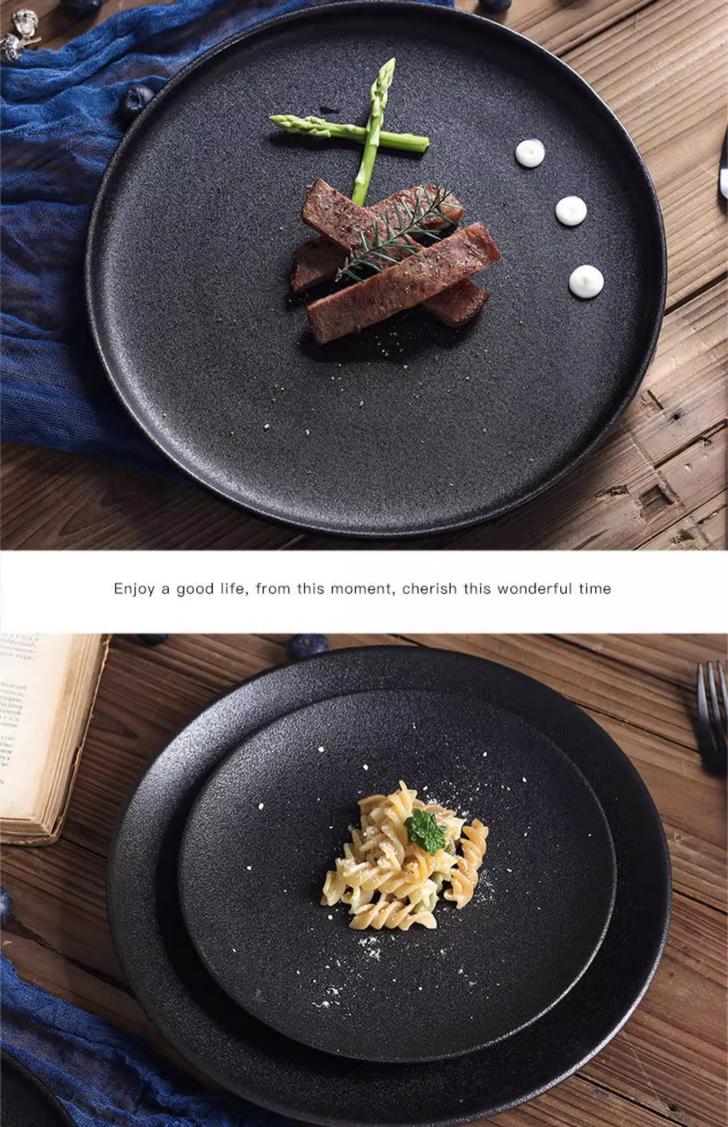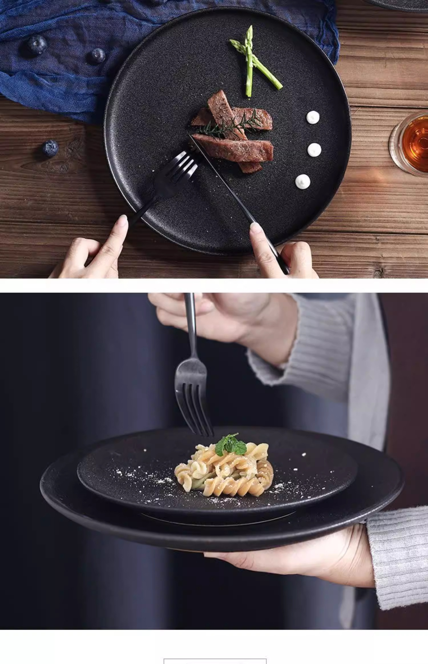 Retro Simple Ceramic Tableware Steak Plate Frosted Salad Plate Fruit Plate High-End Western Food Plate Shallow Plate Round Plate