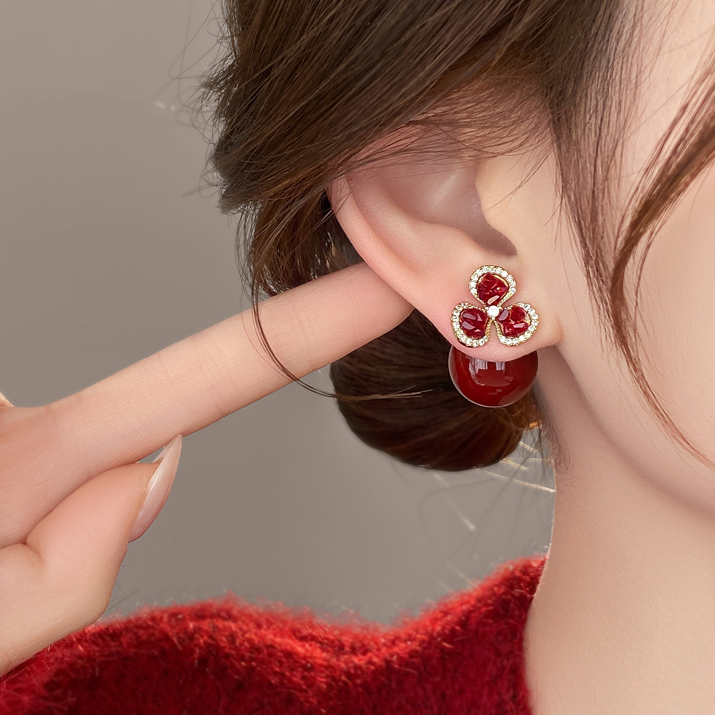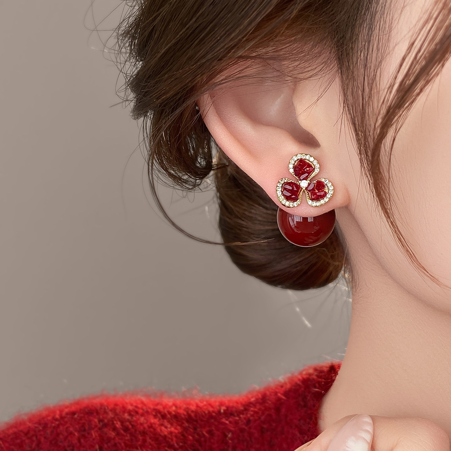 Red Flower Earrings for Women, Unique and Beautiful Earrings, 2026 New Hot Style, High-End, Light Luxury, Elegant and Stylish Earrings
