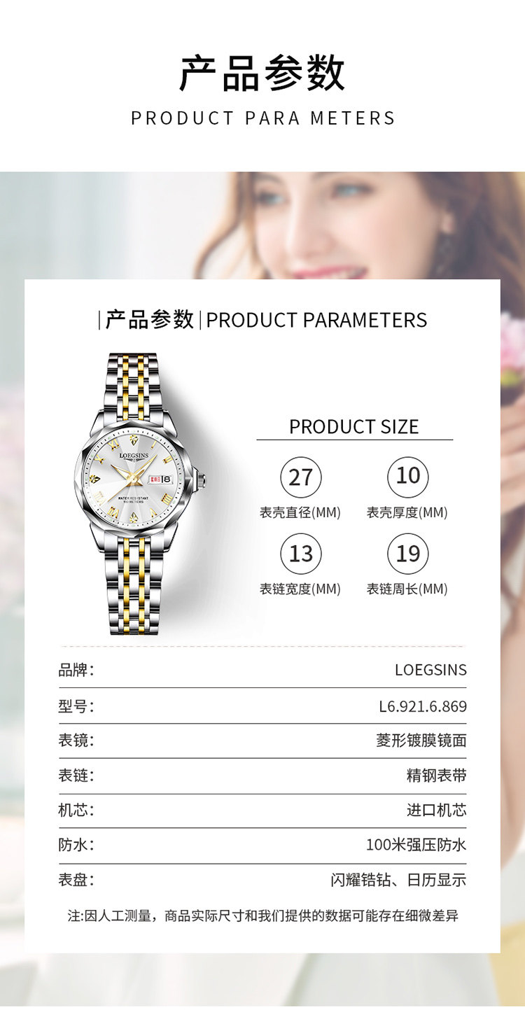 Swiss Genuine Longines Watch for Women, Fashionable and Luxurious Fully Automatic Mechanical Watch, Waterproof, Multi-Functional and Versatile Women's Watch
