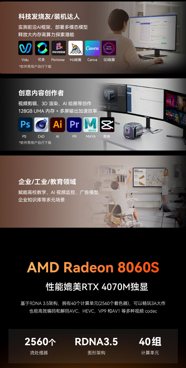 [New Product]Amaiqi M1A Pro+Ai Workstation Amd Ai Max+395 Mini Desktop Computer 8060S Integrated Graphics Mini Pc with Super Performance for Gaming