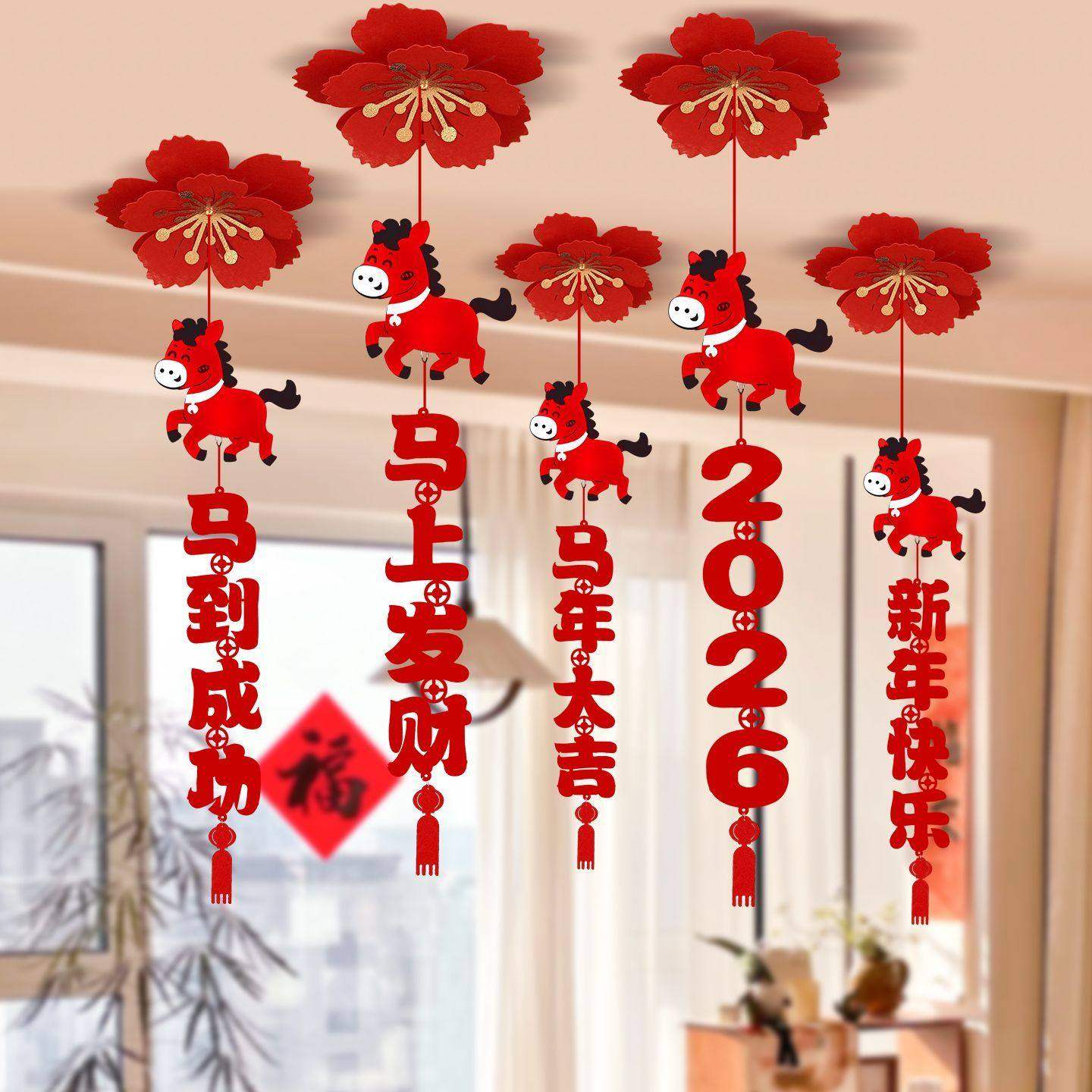 2026 New Year Roof Decoration Hanging Ornaments, New Year of the Horse Decorations, Spring Festival Mall Scene Atmosphere Decoration, New Year Arrangements