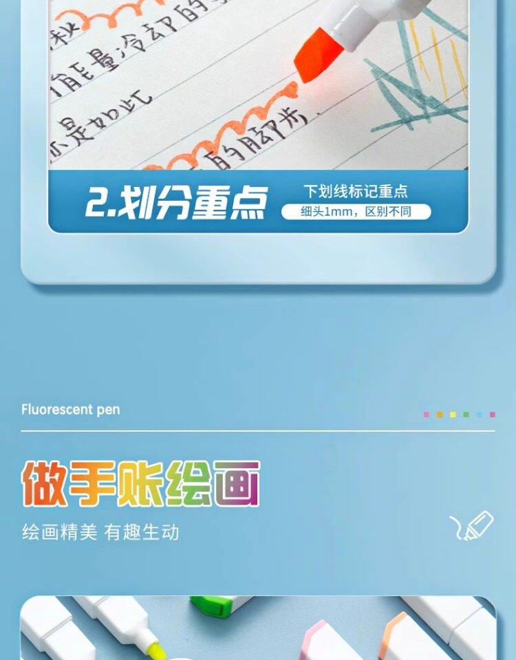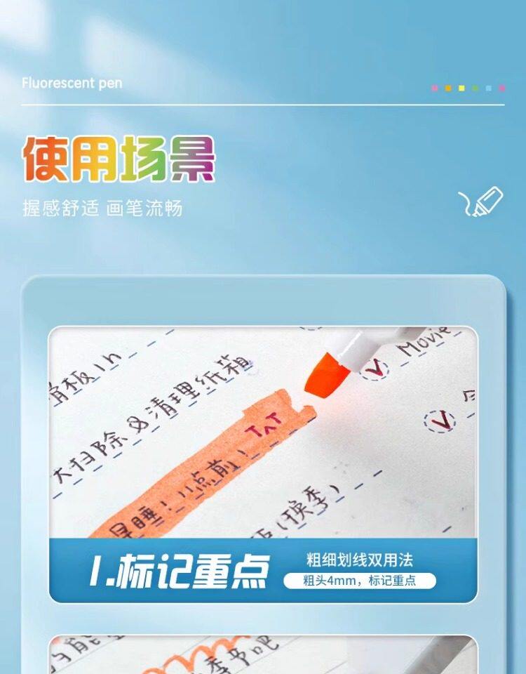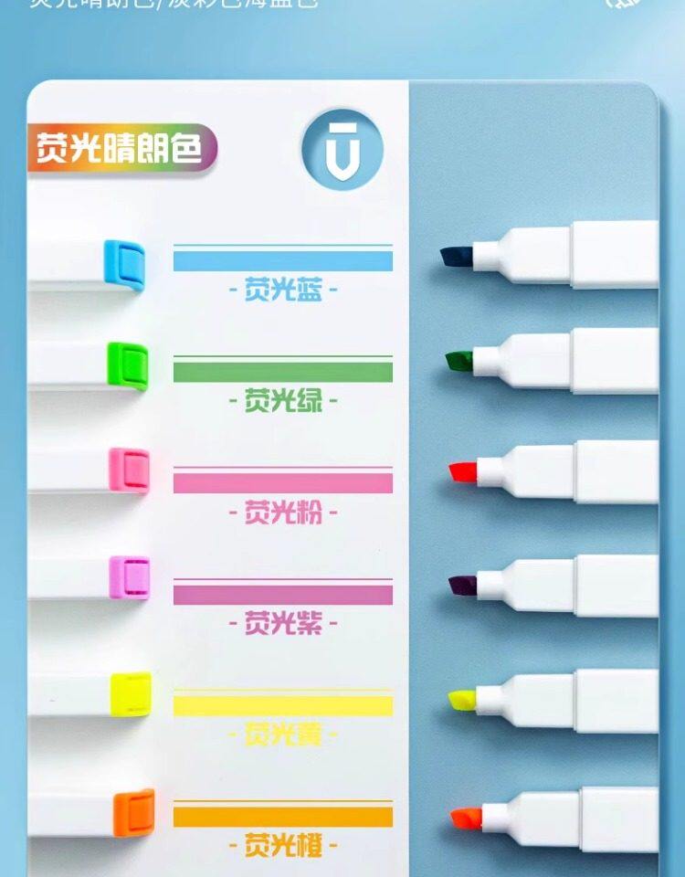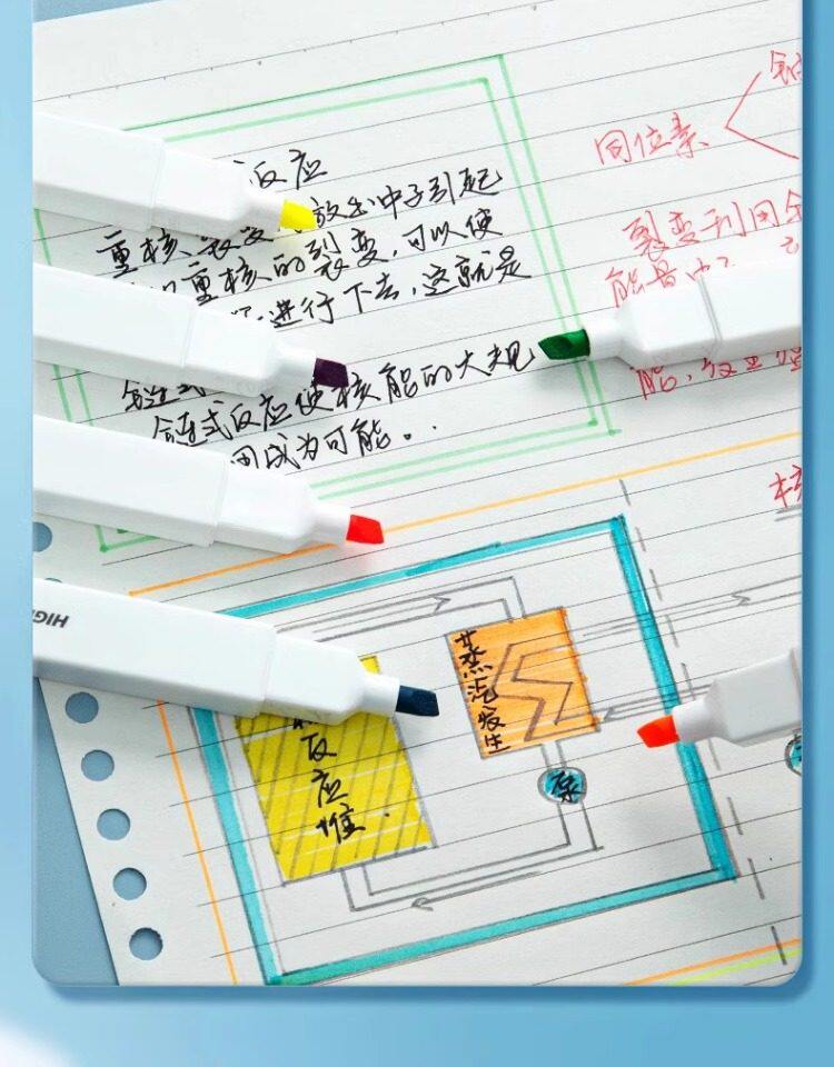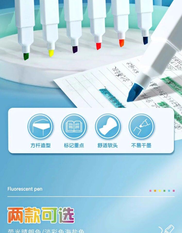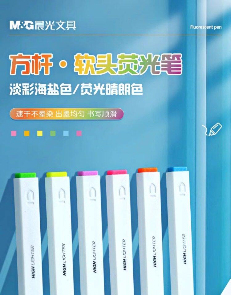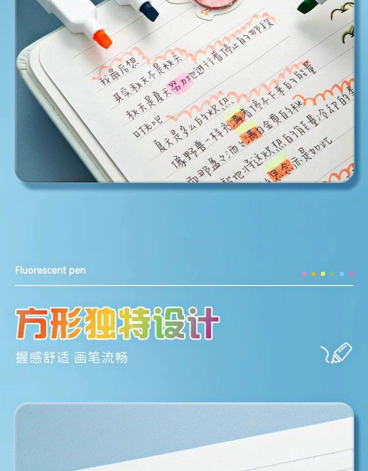 Morning Light Fluorescent Pen with Square Barrel and Soft Tip, Marker Pen for Students, Colorful Highlighter for Marking Key Points, Aesthetically Pleasing Bright Colors, Dedicated Fluorescent Marker for Note-Taking, Large Capacity Journaling Marker
