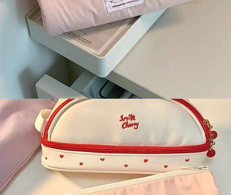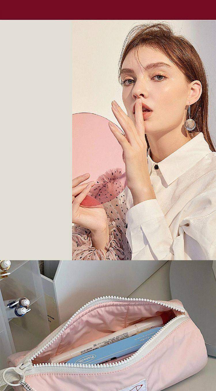 Korean-Style Minimalist Stationery Bag, Ins-Style Japanese High School Girls' Solid Color High-Value Personalized Pencil Case with Zipper
