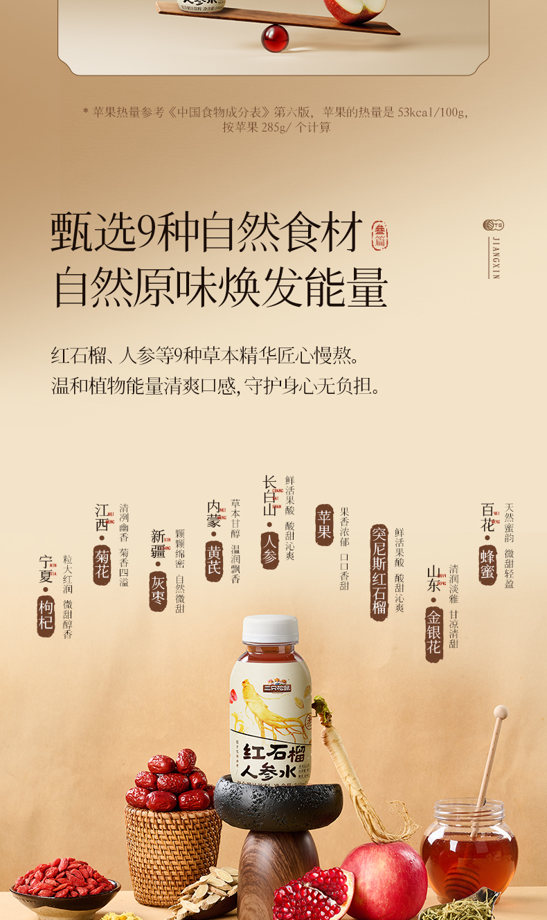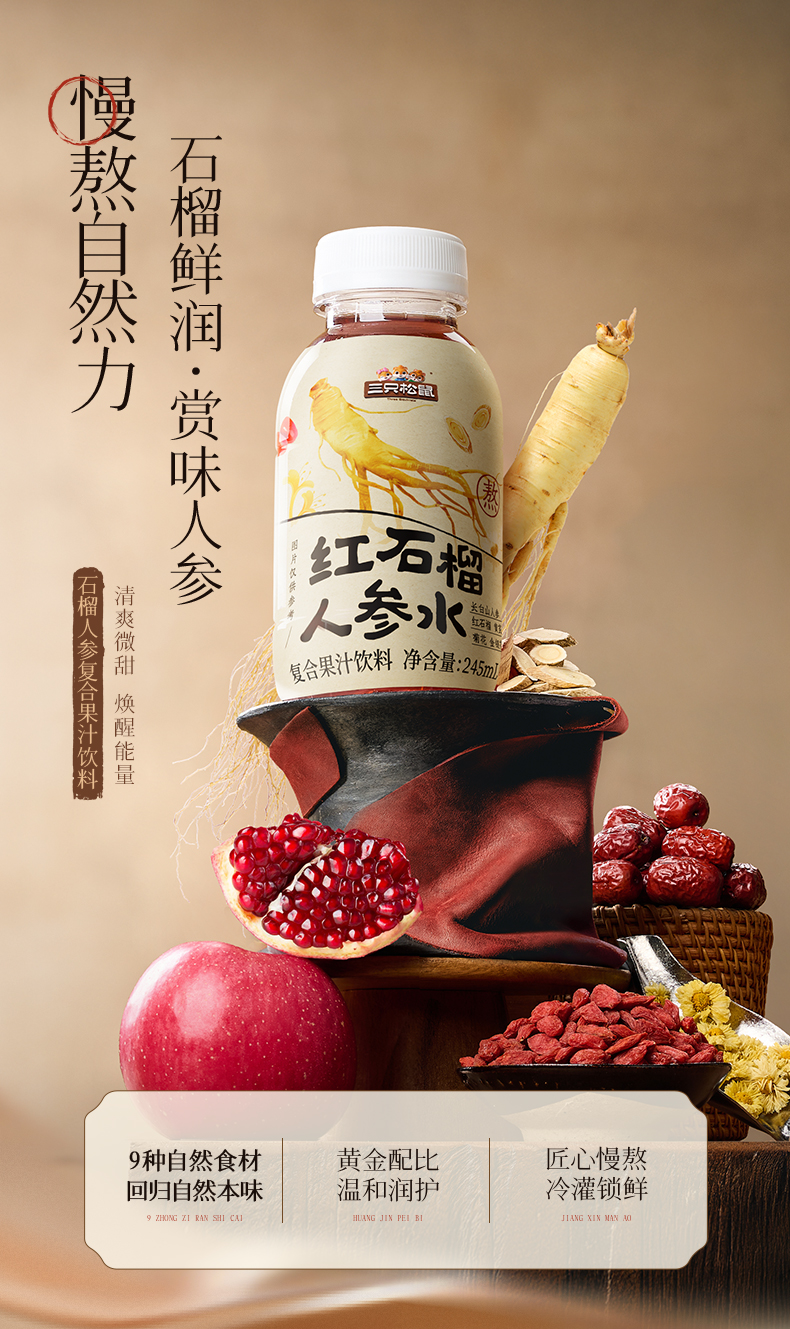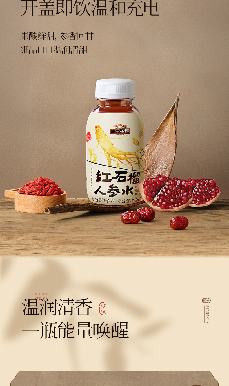 Three Squirrels_ Red Pomegranate Ginseng Water Nourishing Health Drink for Women, Whole Box, New Year Gift for Elders